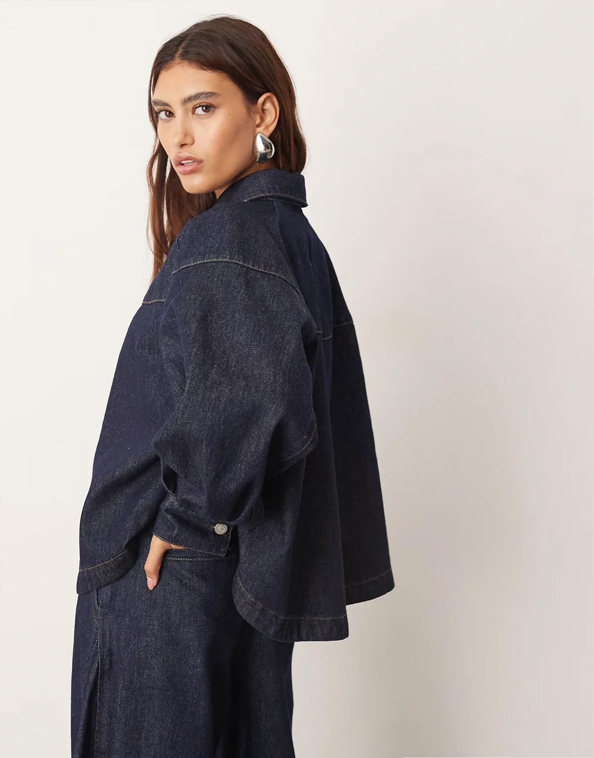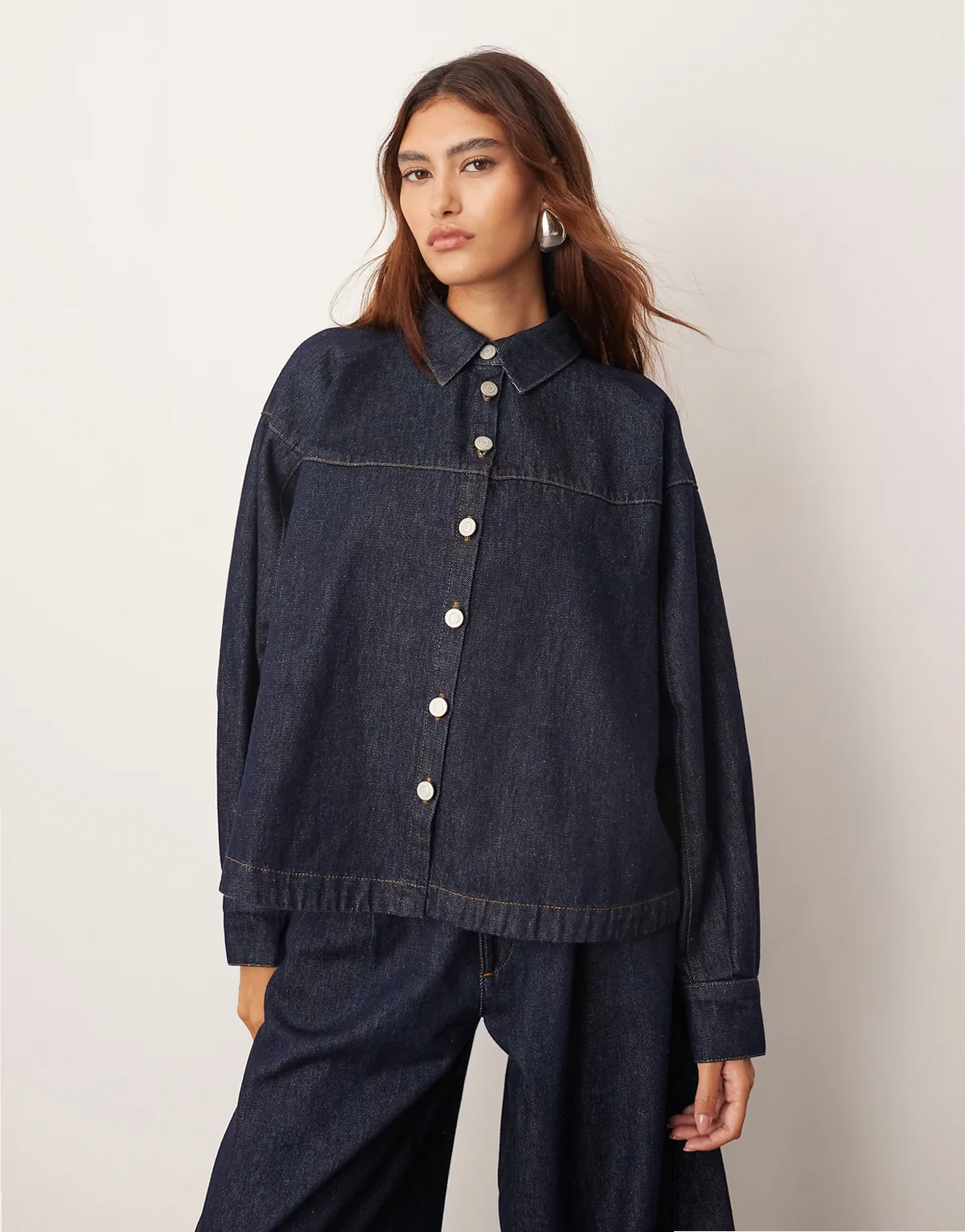 structured boxy denim shirt in indigo - part of a set