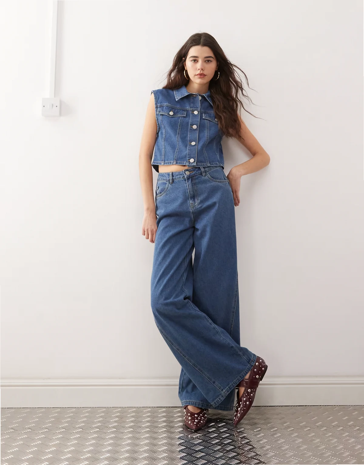 denim vest in mid blue - part of a set