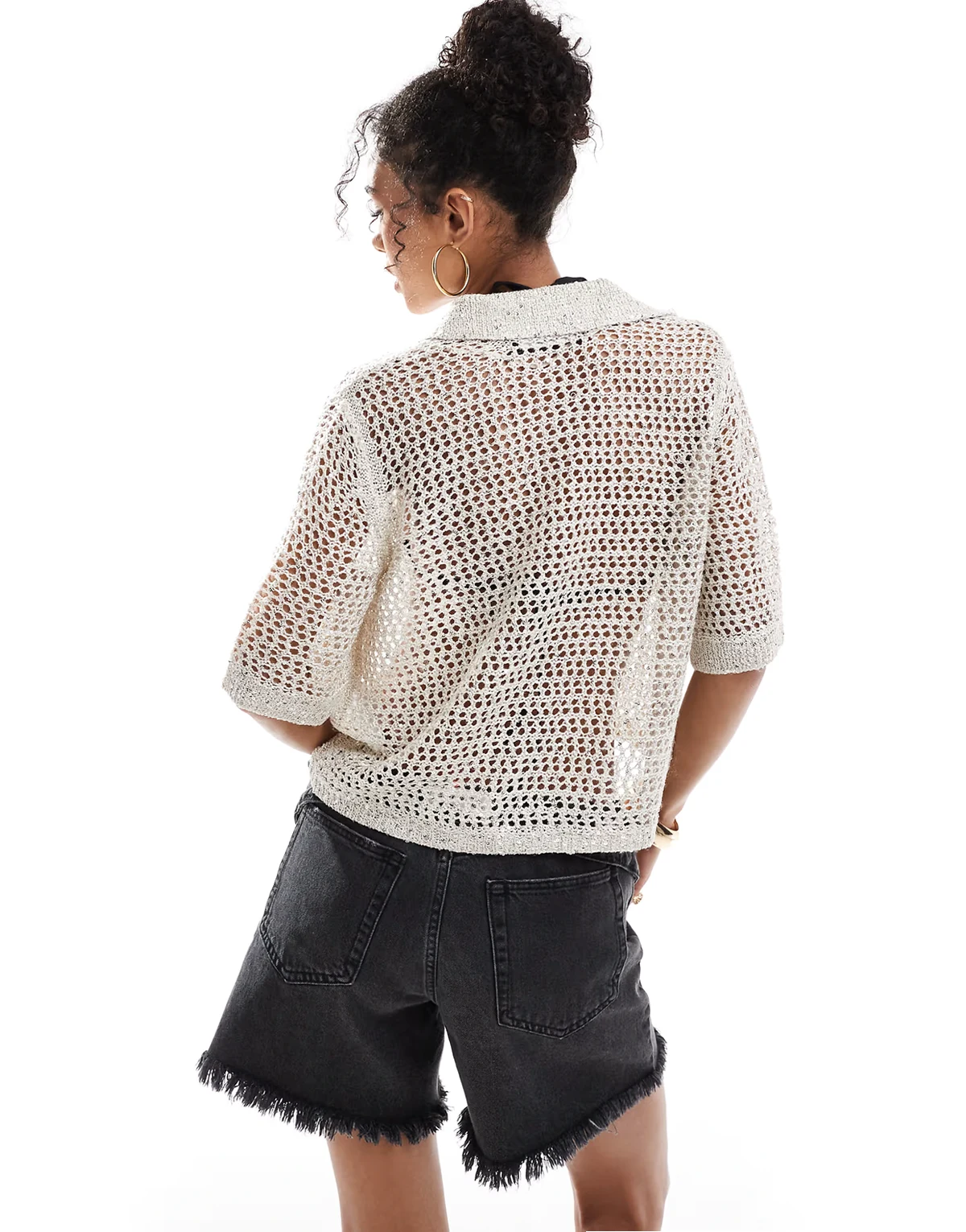 sequin open knit beach shirt in birch