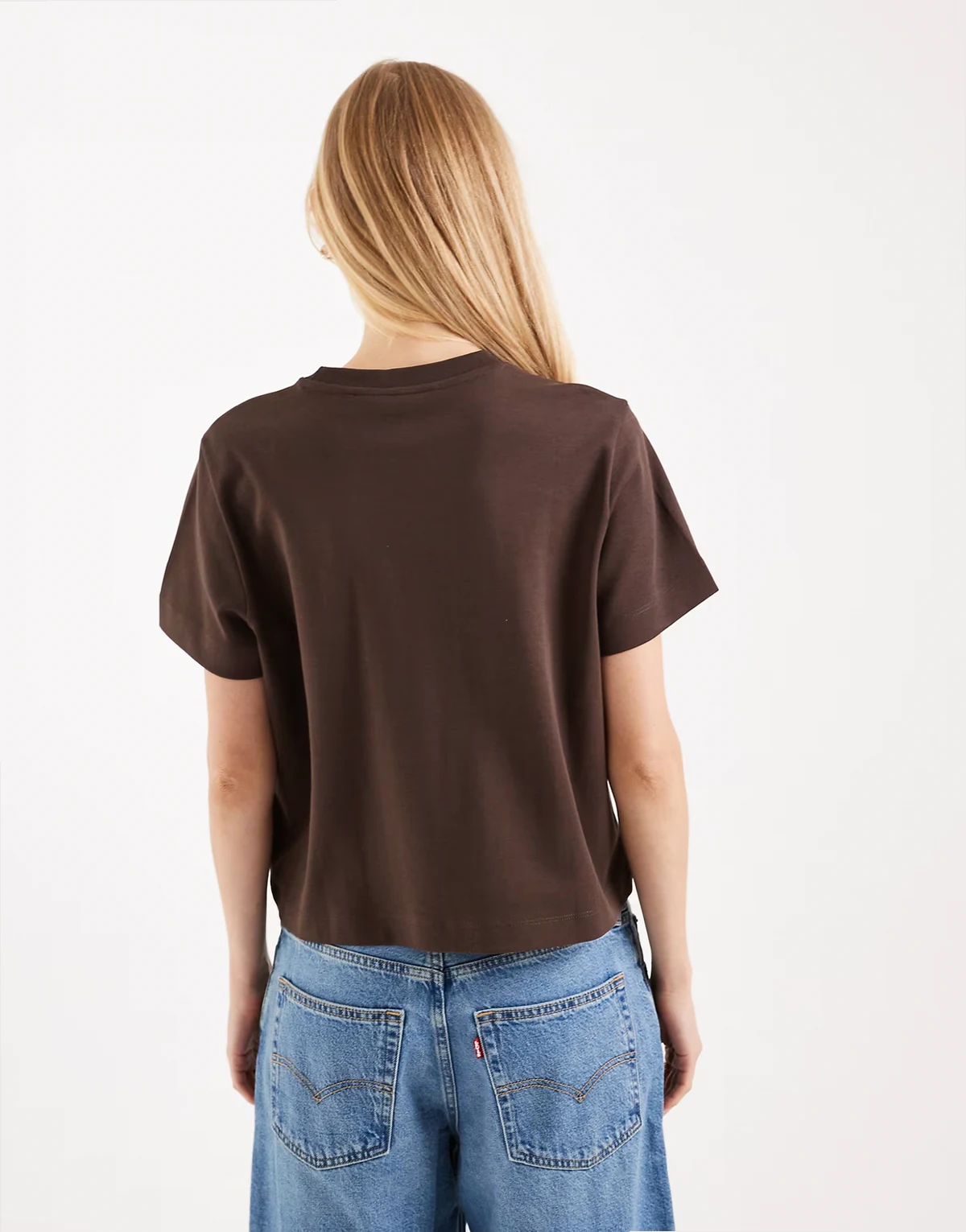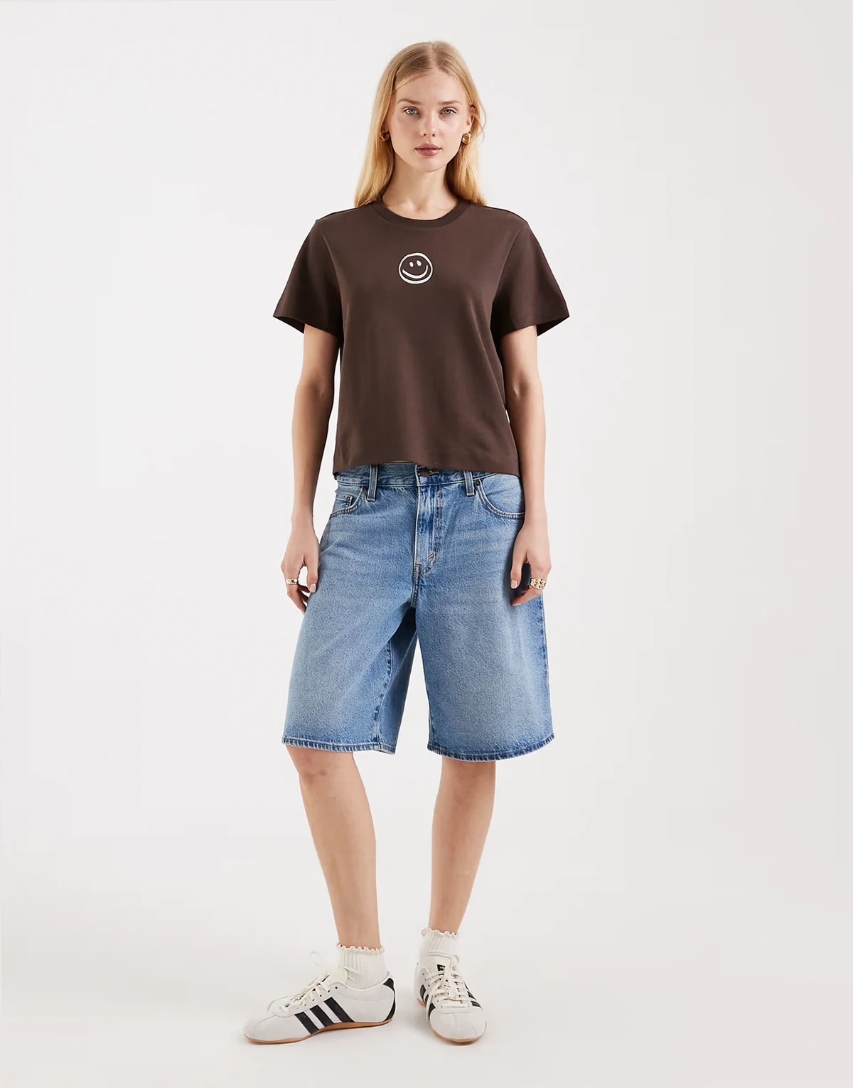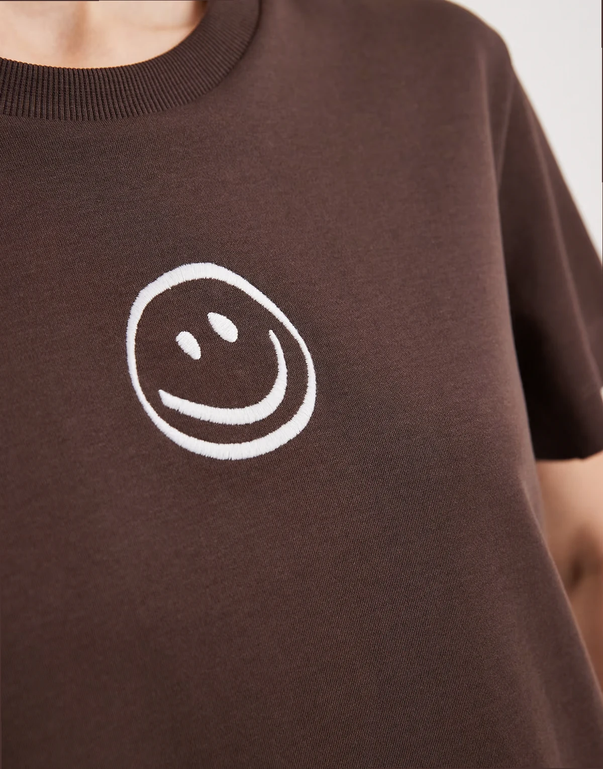 boxy tee with smiley face graphic in brown