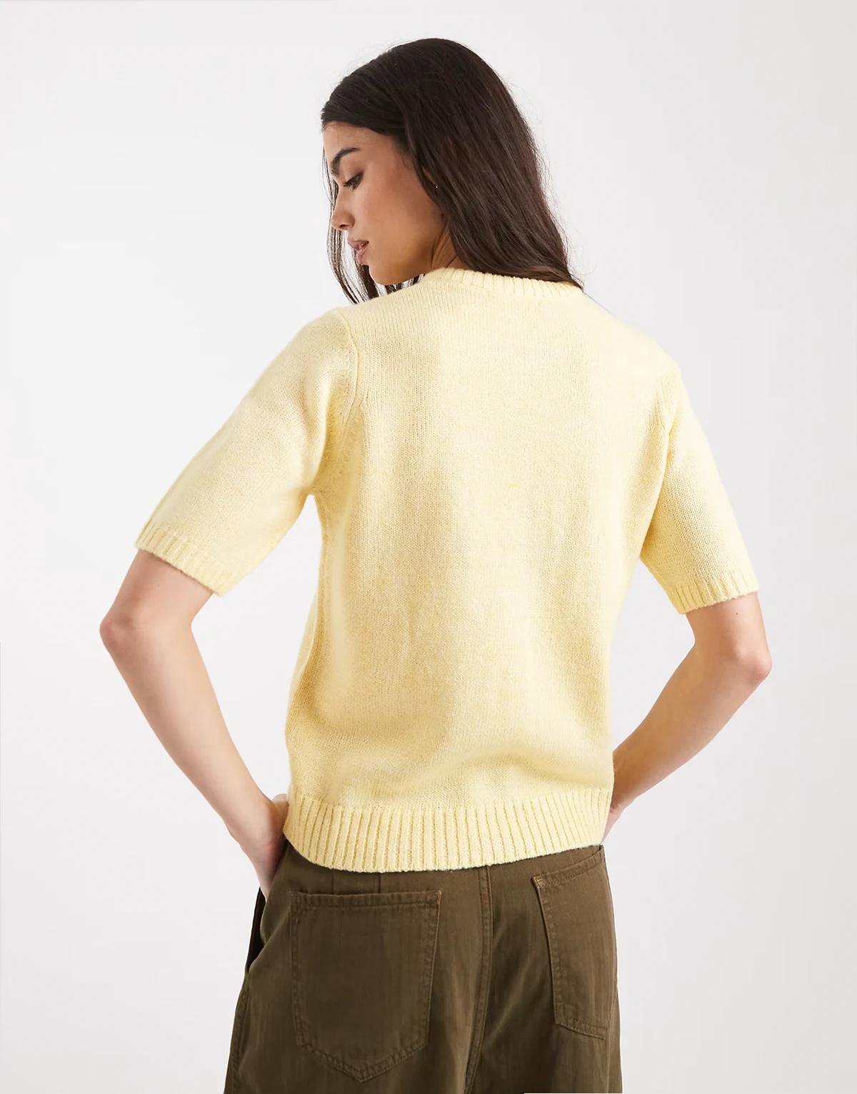 short sleeve crew neck cardigan in lemon yellow