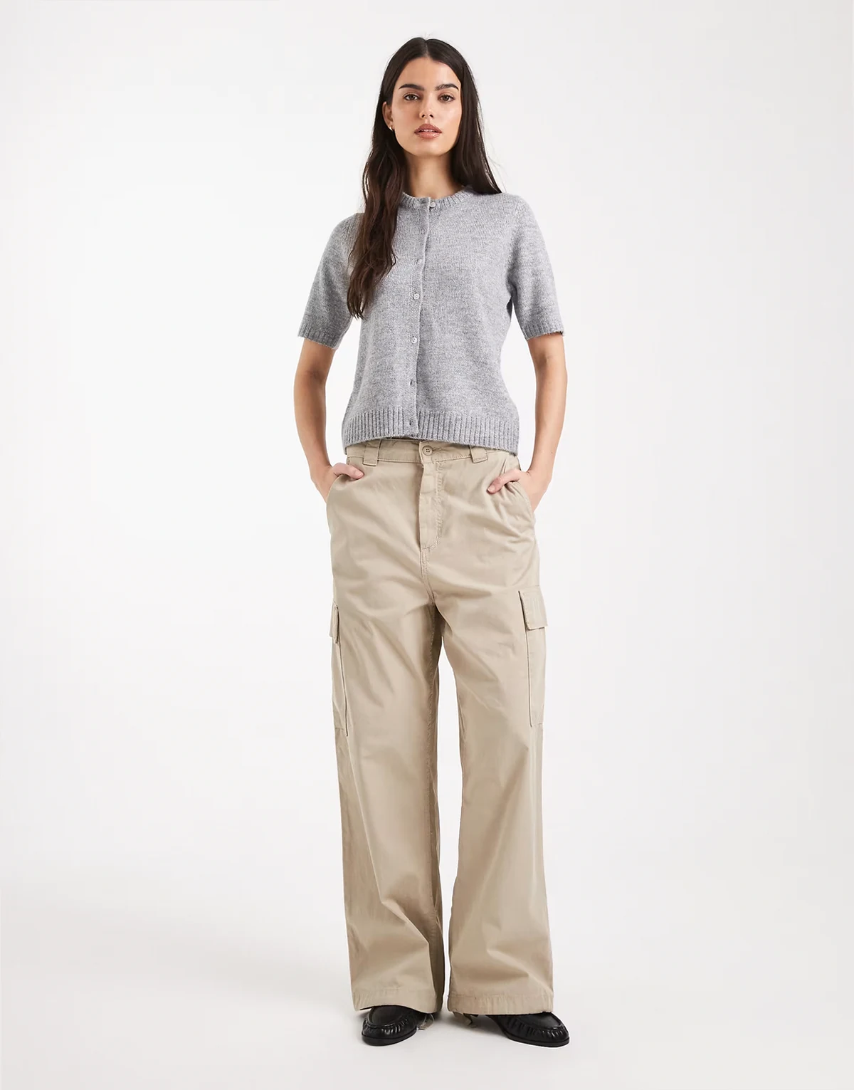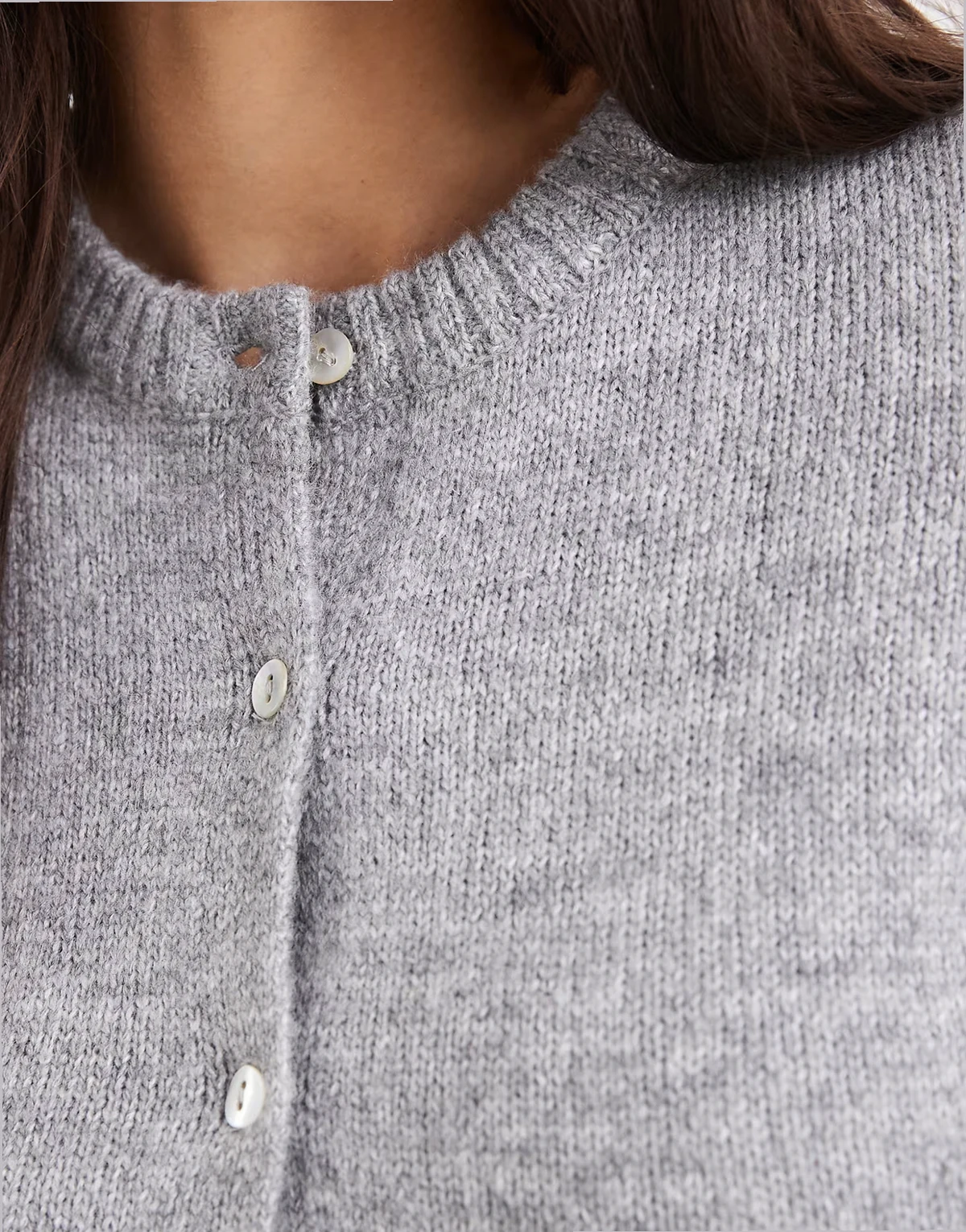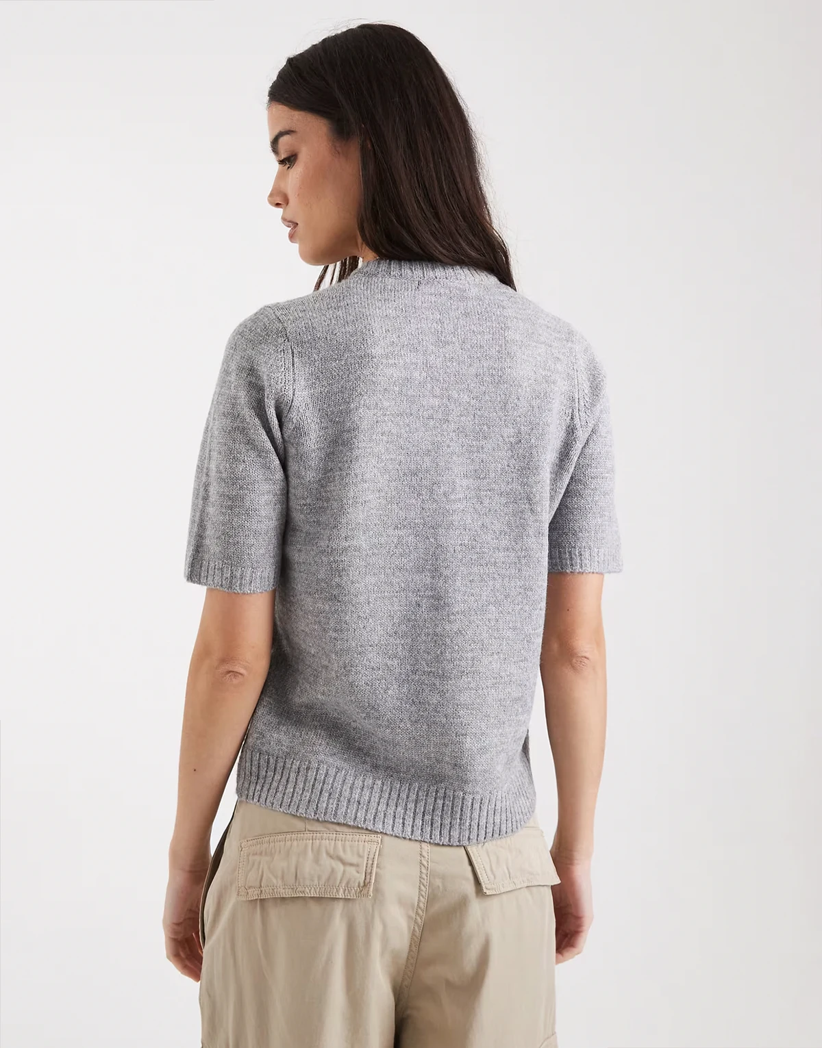short sleeve crew neck cardigan in gray