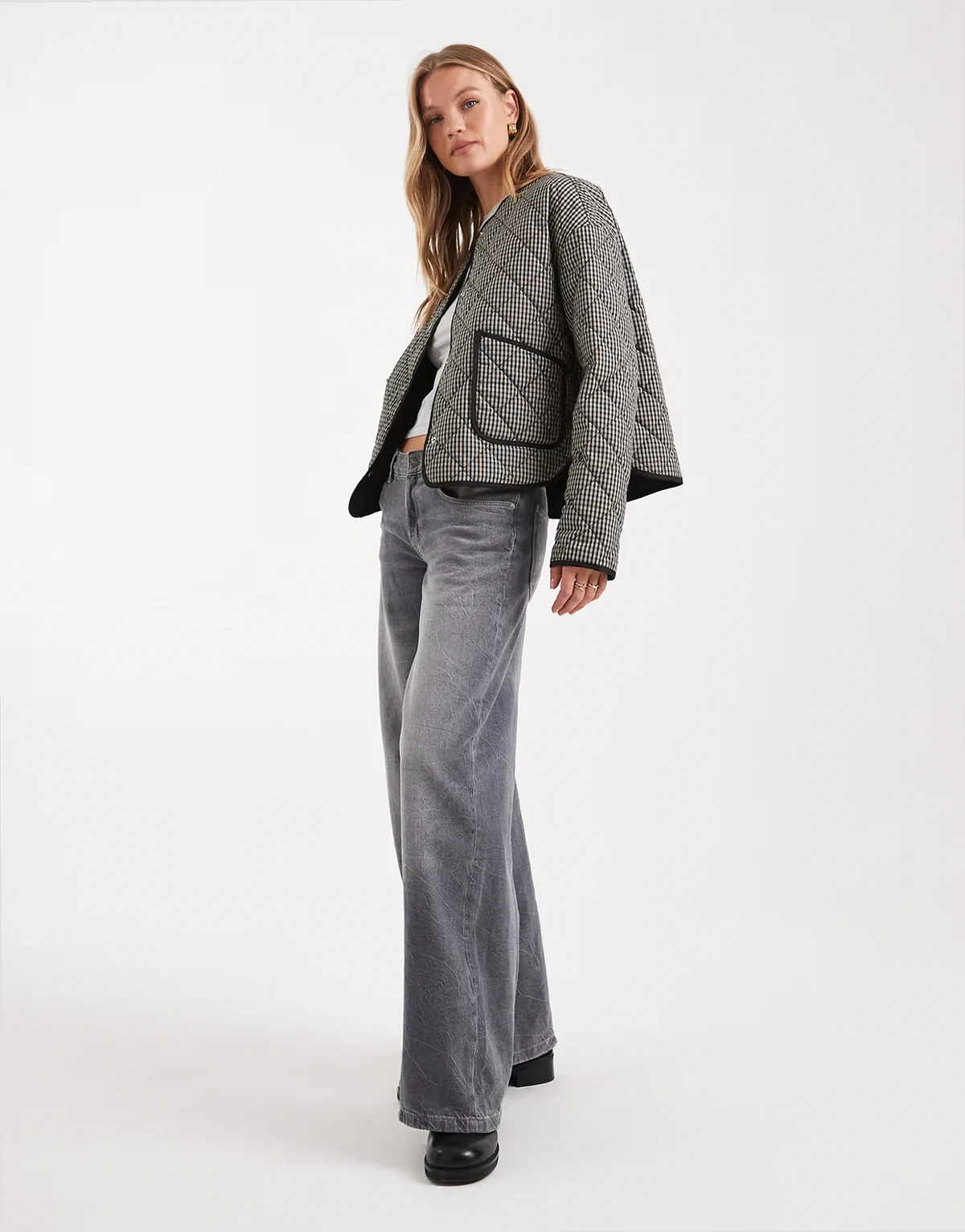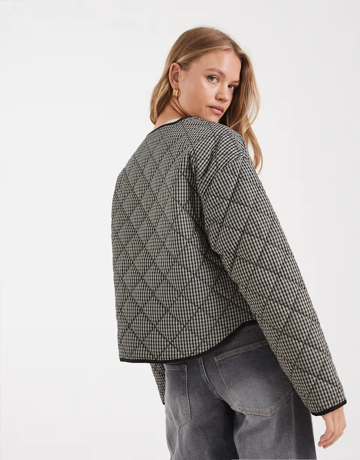 padded jacket with contrast trim in gray and black