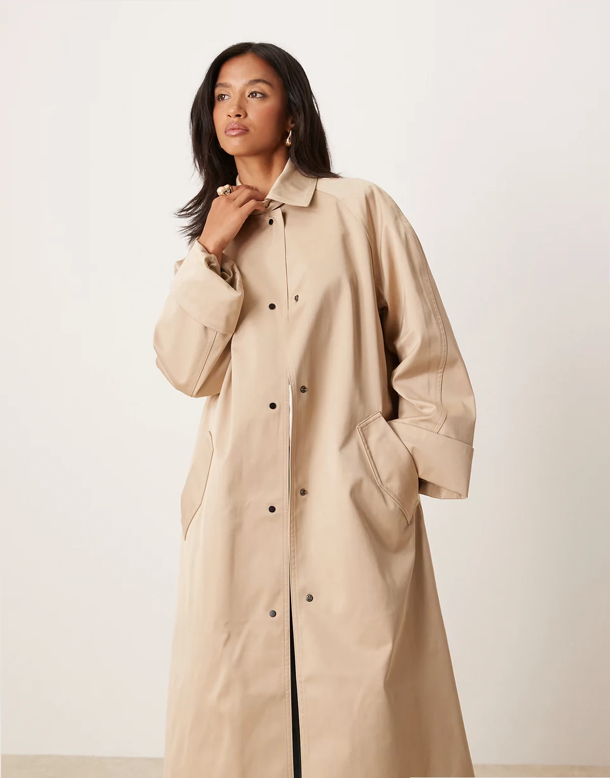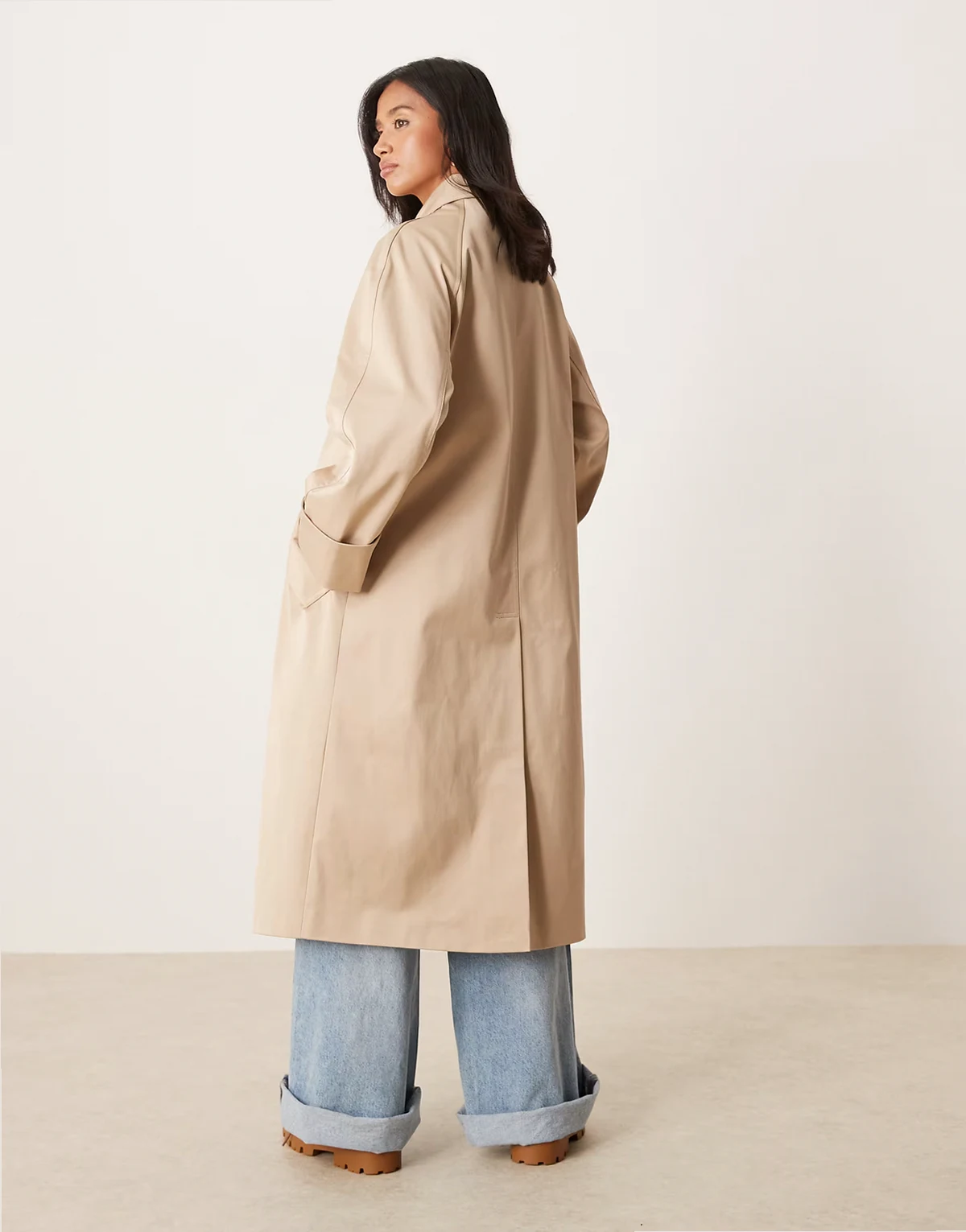 ASOS DESIGN Petite longline trench in stone