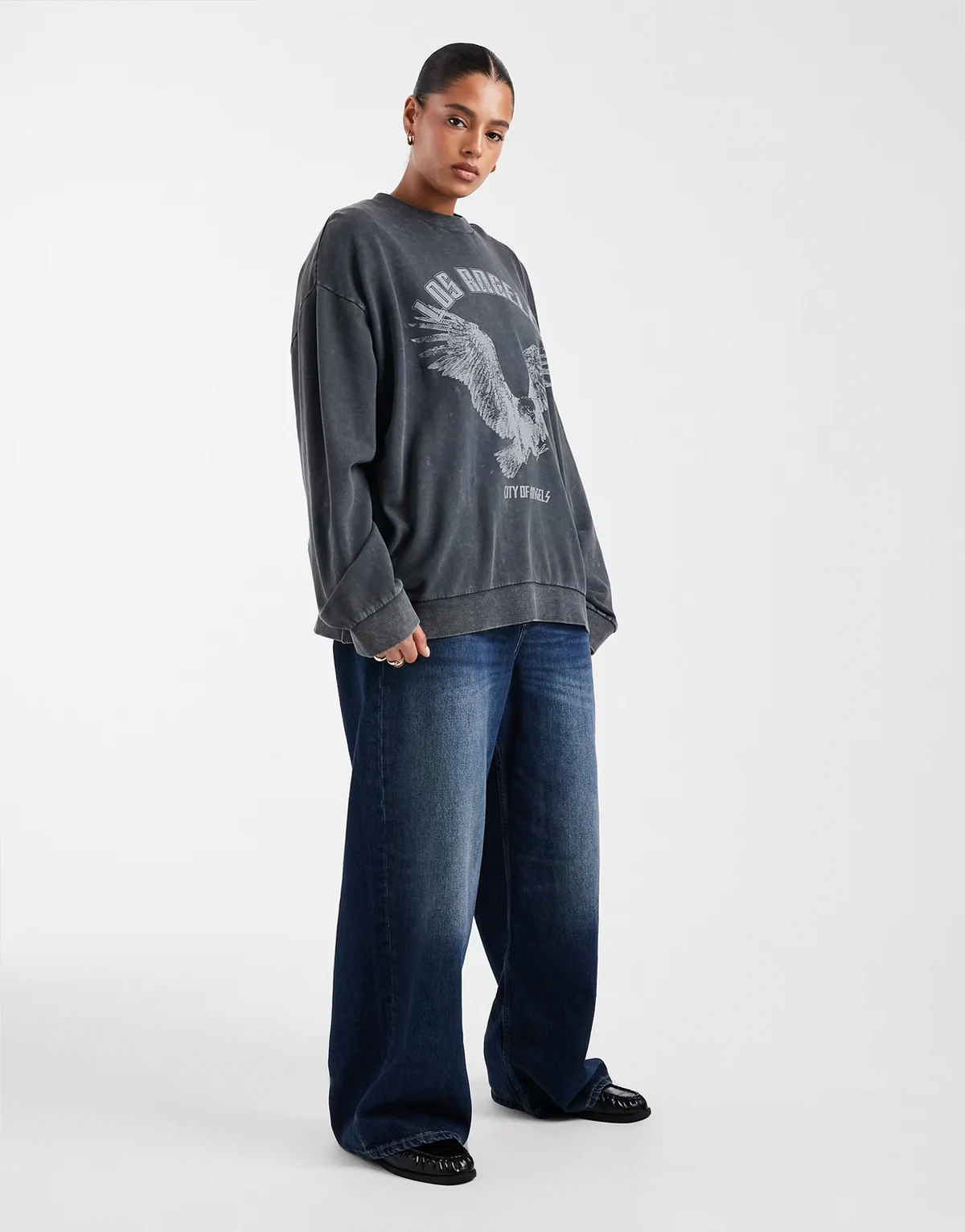 ASOS DESIGN Curve oversized sweatshirt with eagle graphic in charcoal