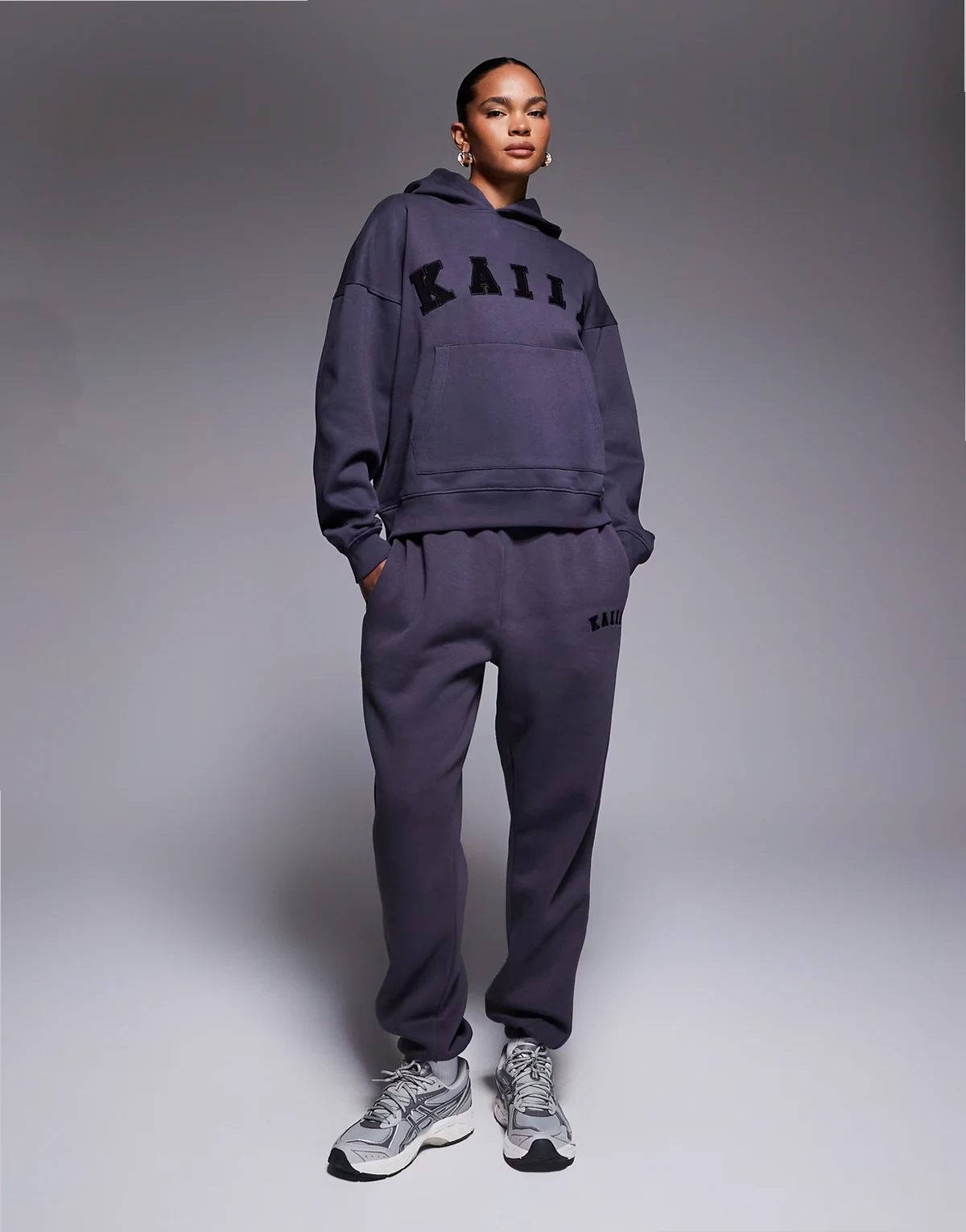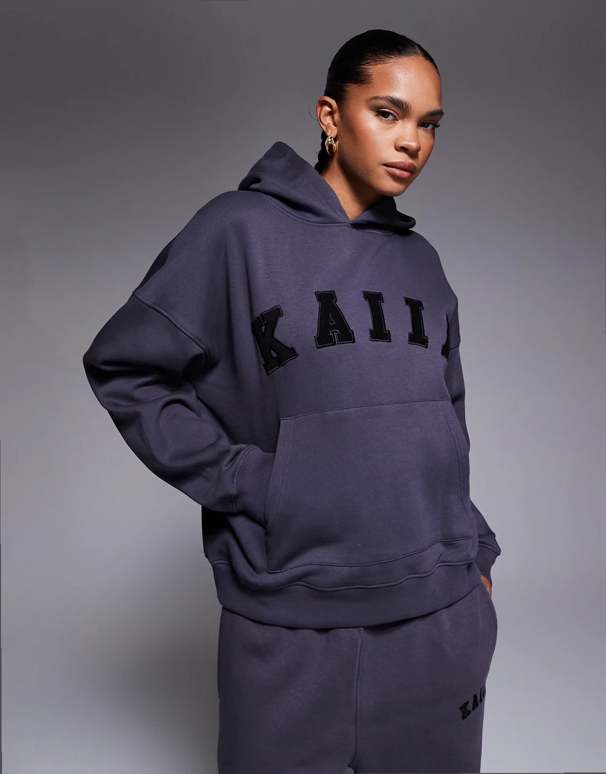 cotton blend logo oversized hoodie in dark gray - part of a set