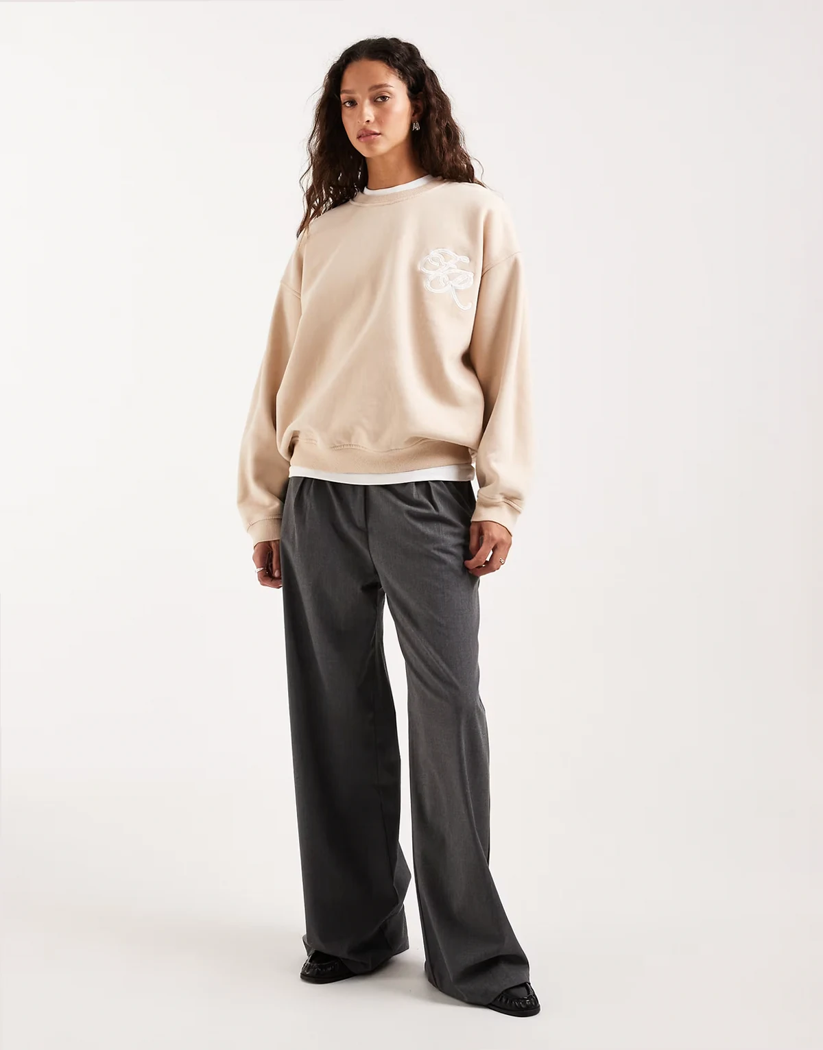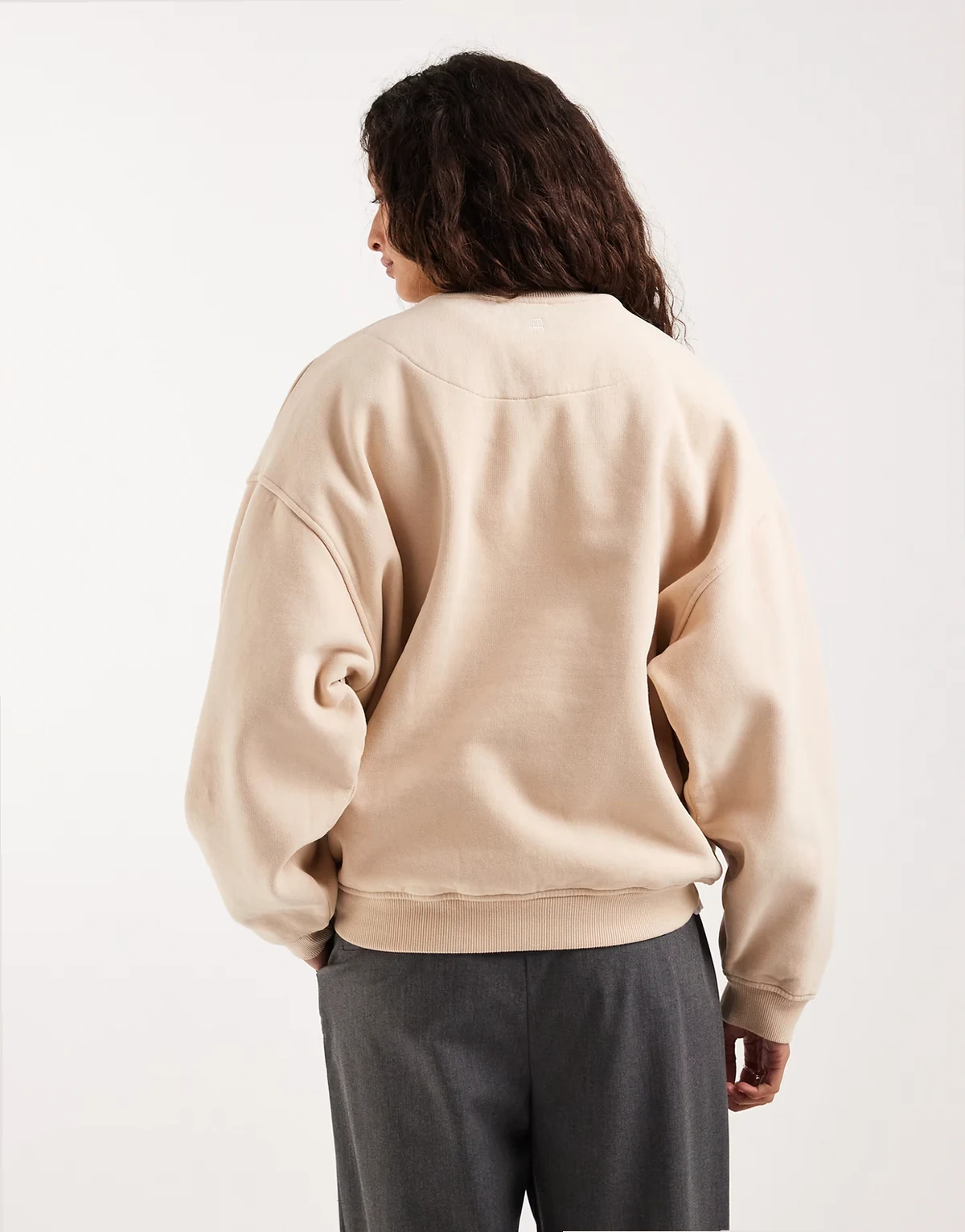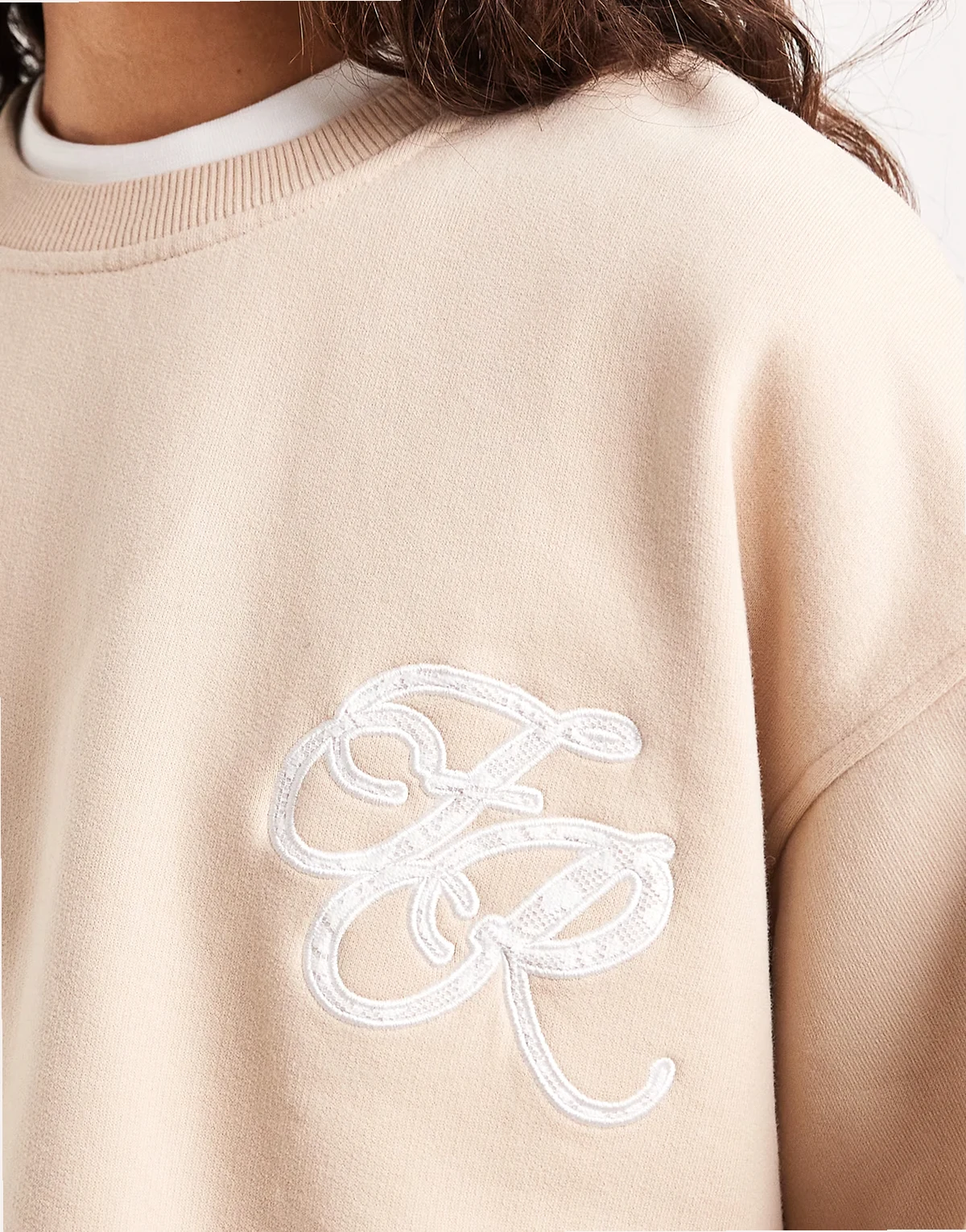 cotton embroidered logo crew neck sweatshirt in beige