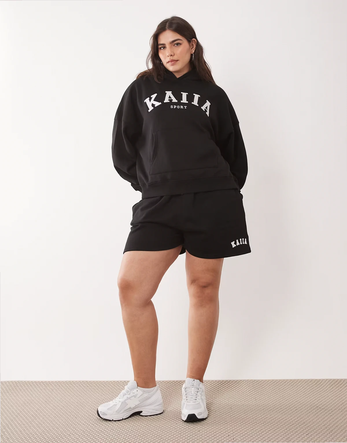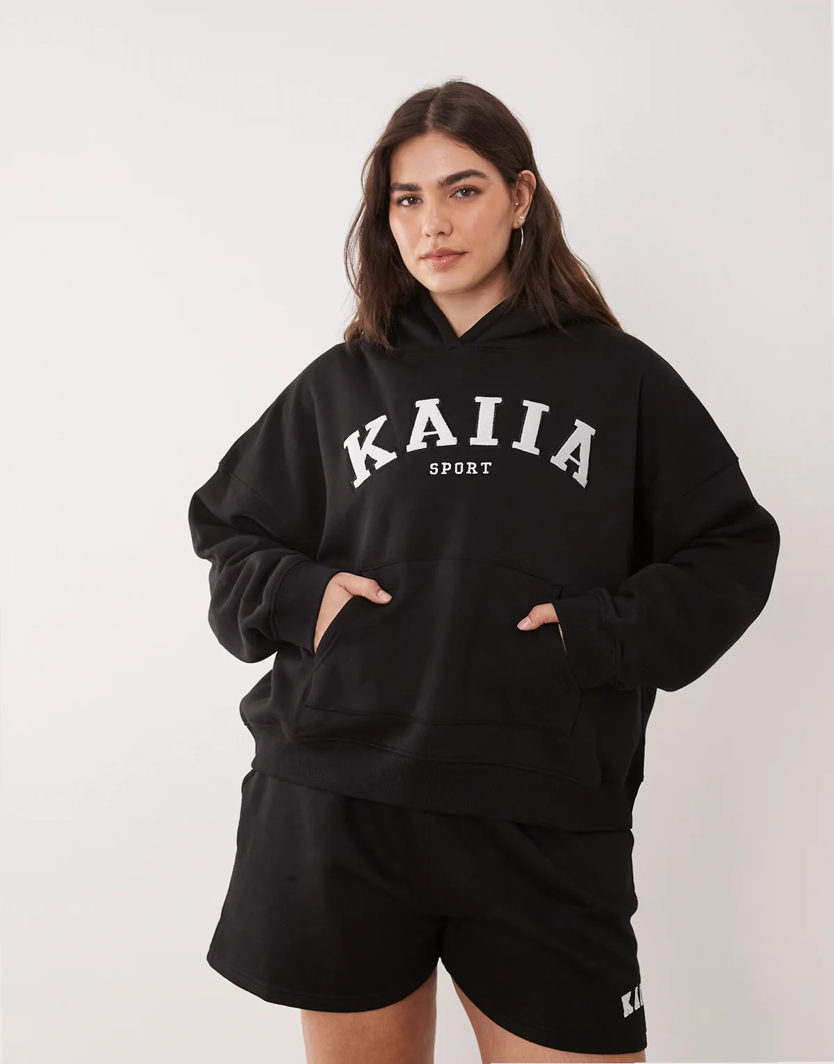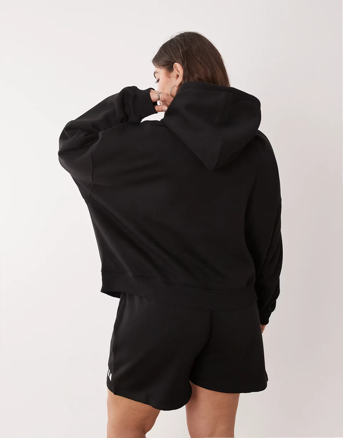 Plus cotton blend sport embroidered logo oversized hoodie in black - part of a set