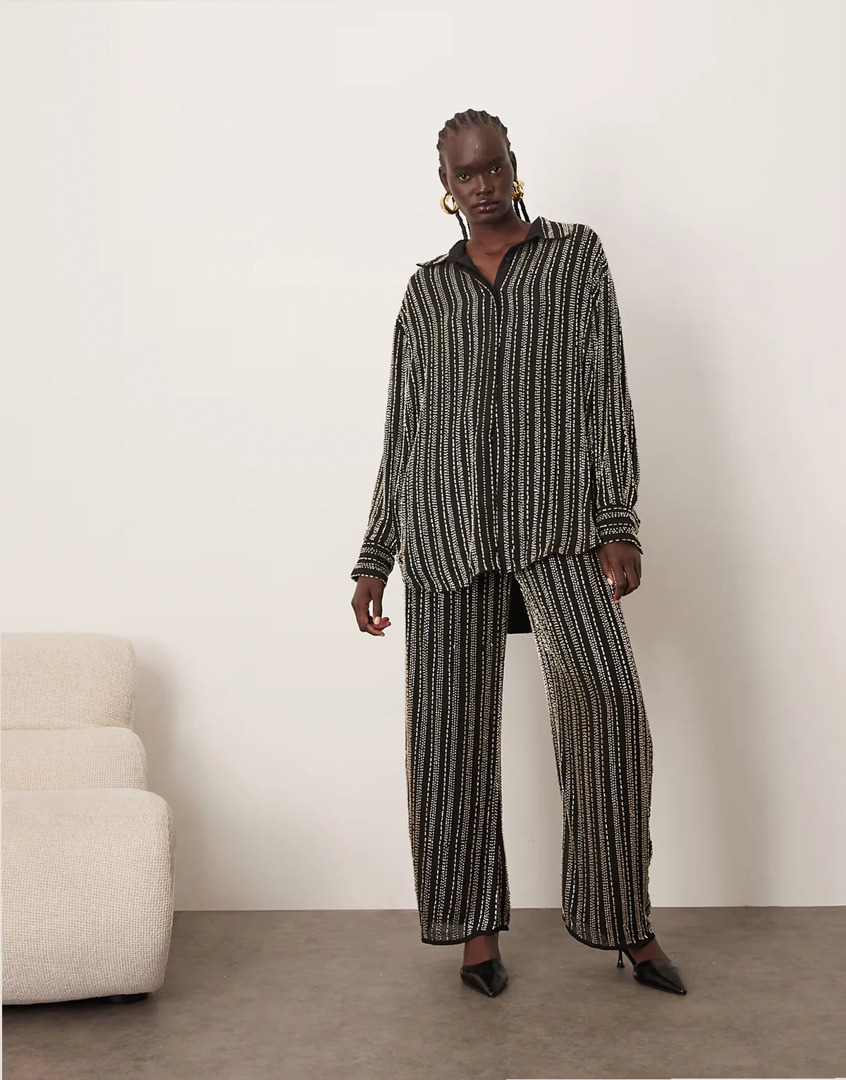linear beaded oversized shirt - part of a set