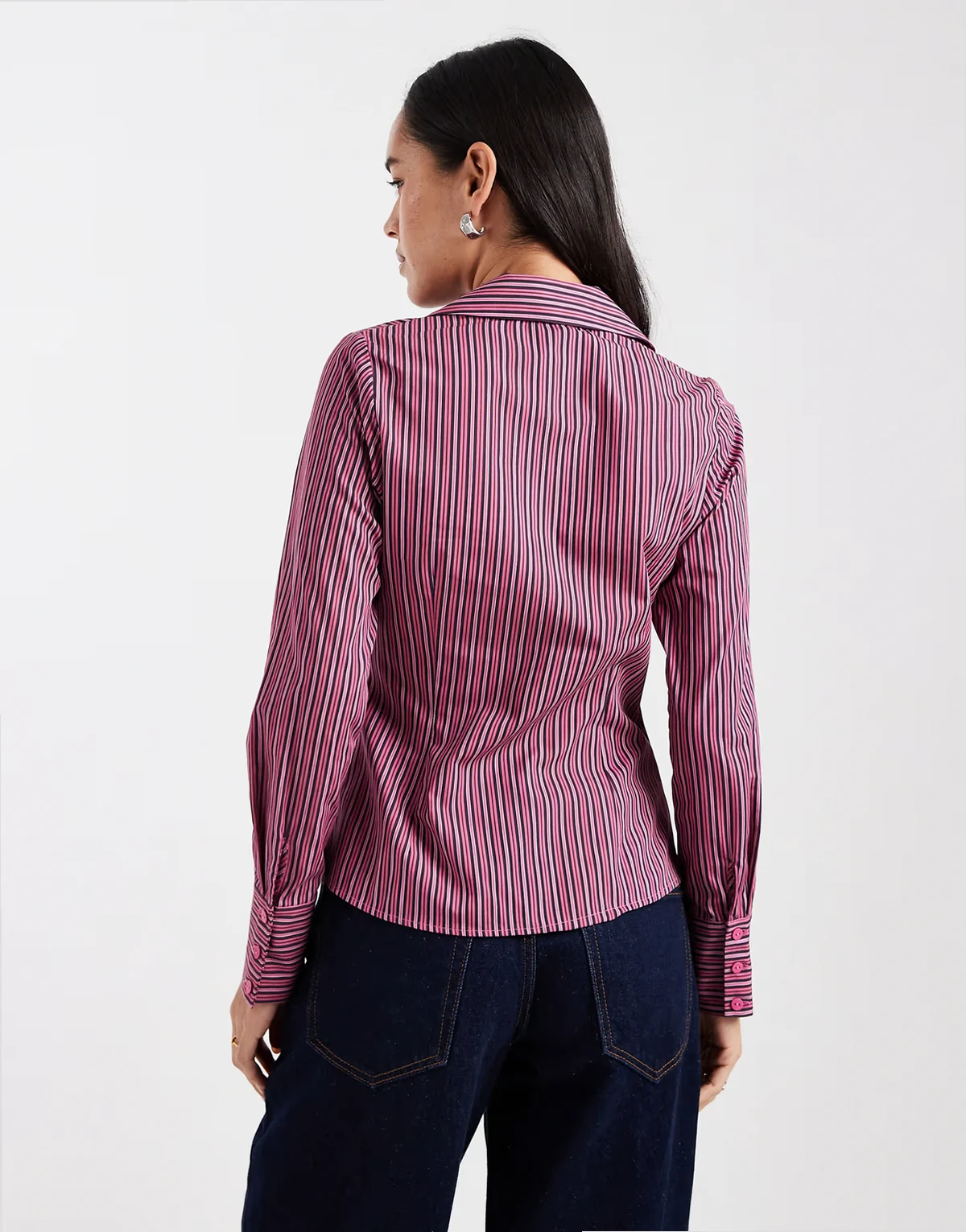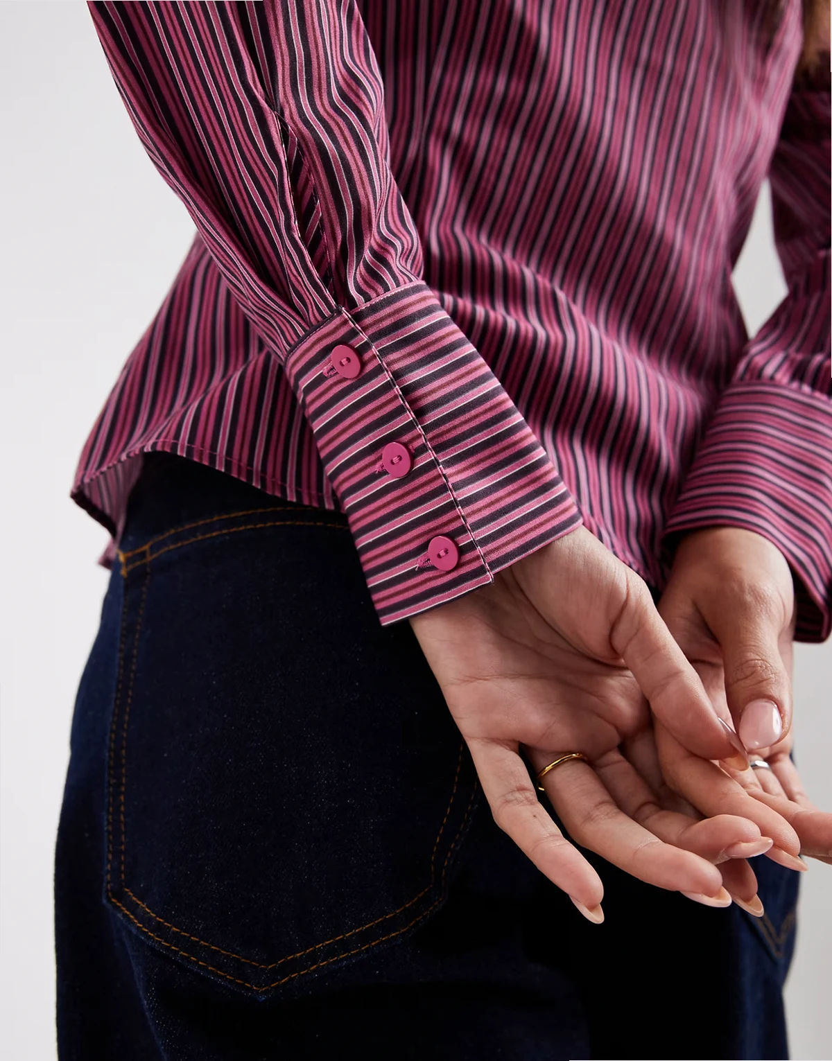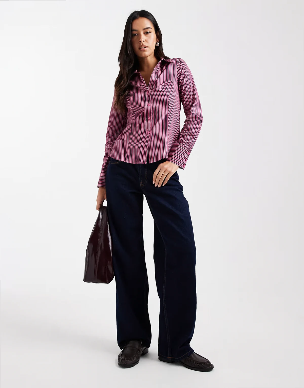 poplin fitted shirt in fig and pink stripes