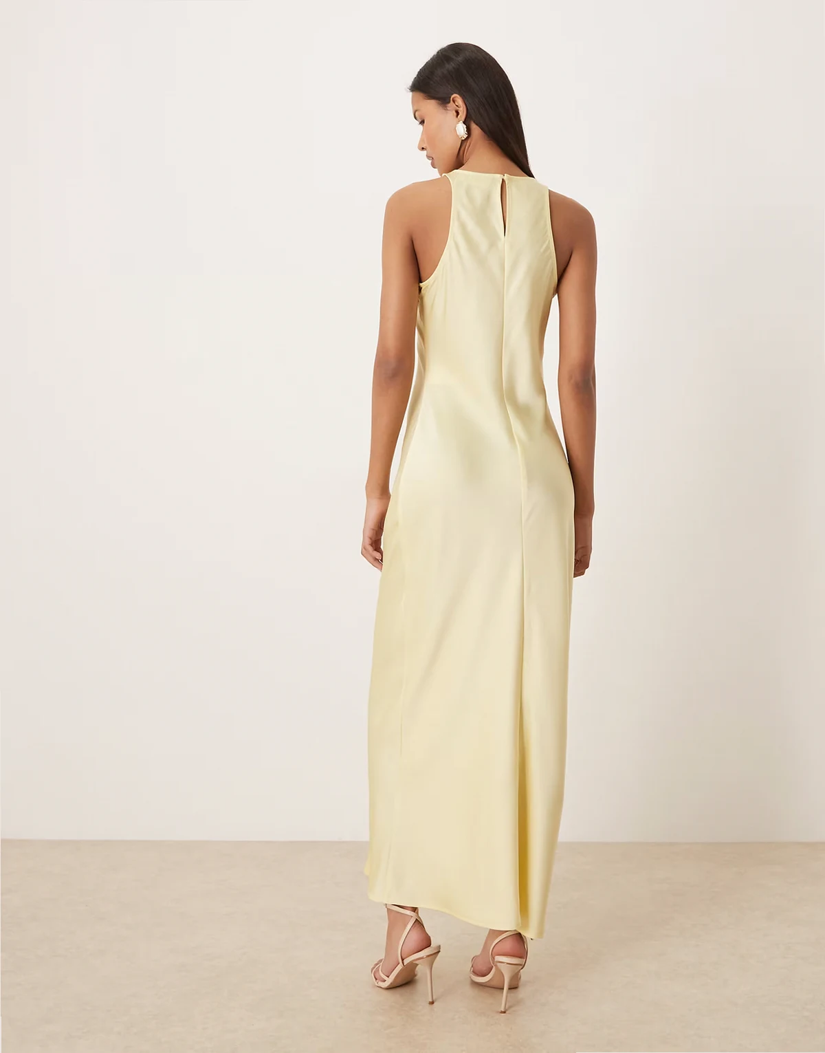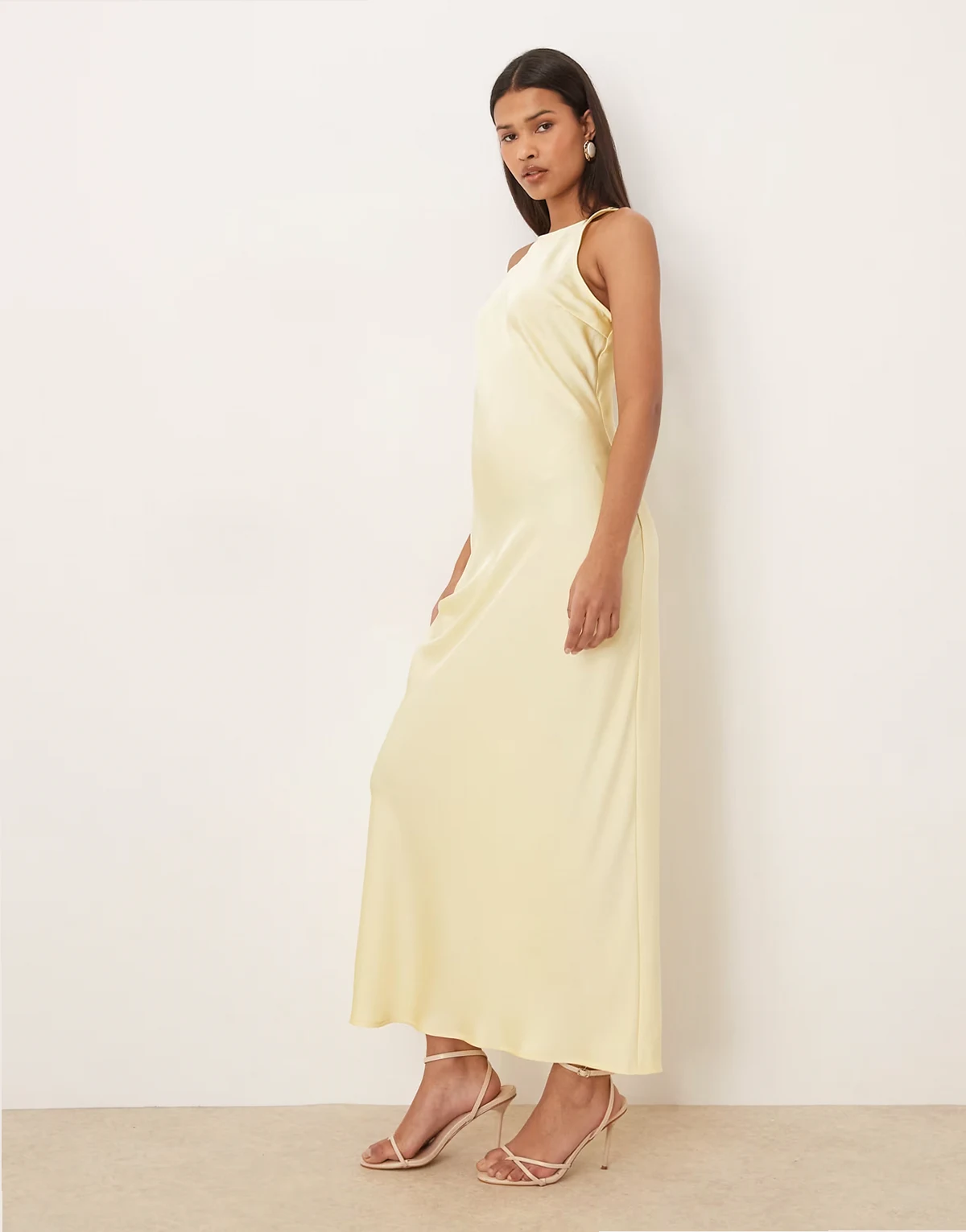 racer neck satin midaxi dress in pastel yellow
