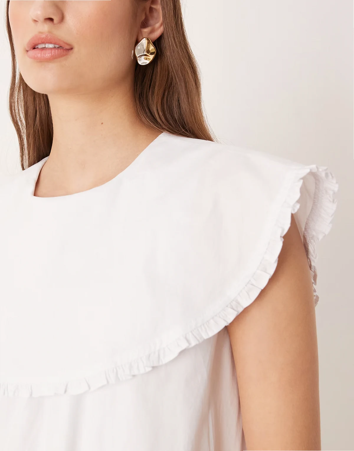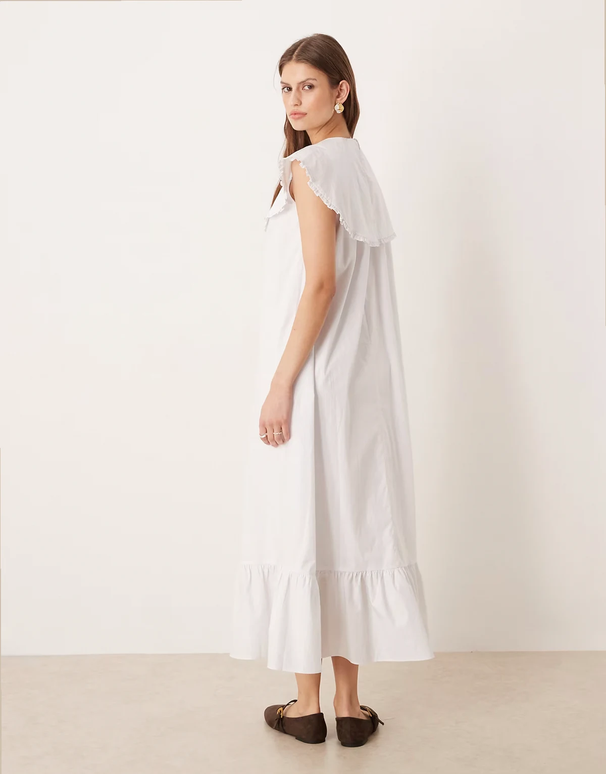 boho throw on ruffle detailing midaxi dress in white poplin