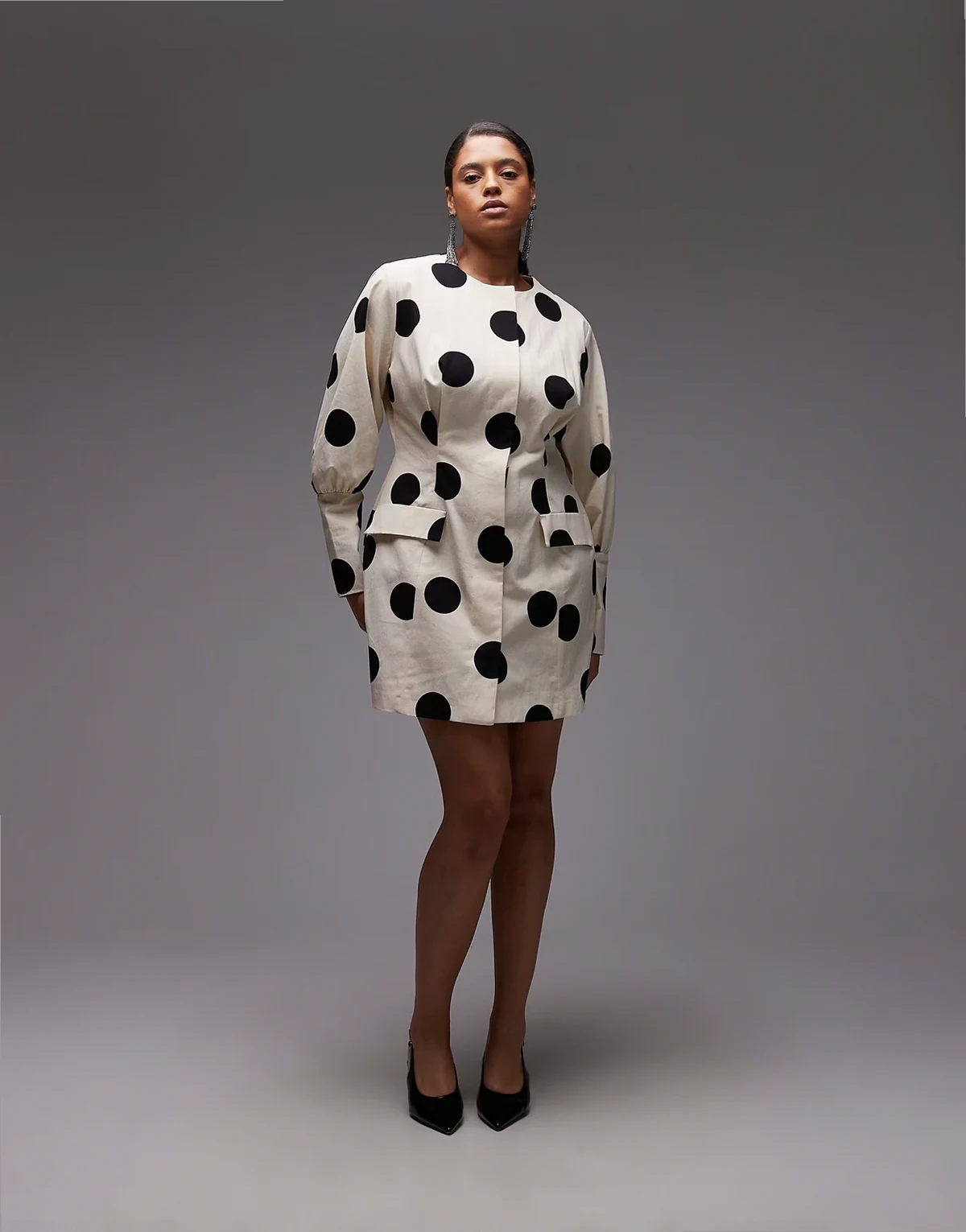 ASOS DESIGN Curve button down blazer structured mini dress in polka dot