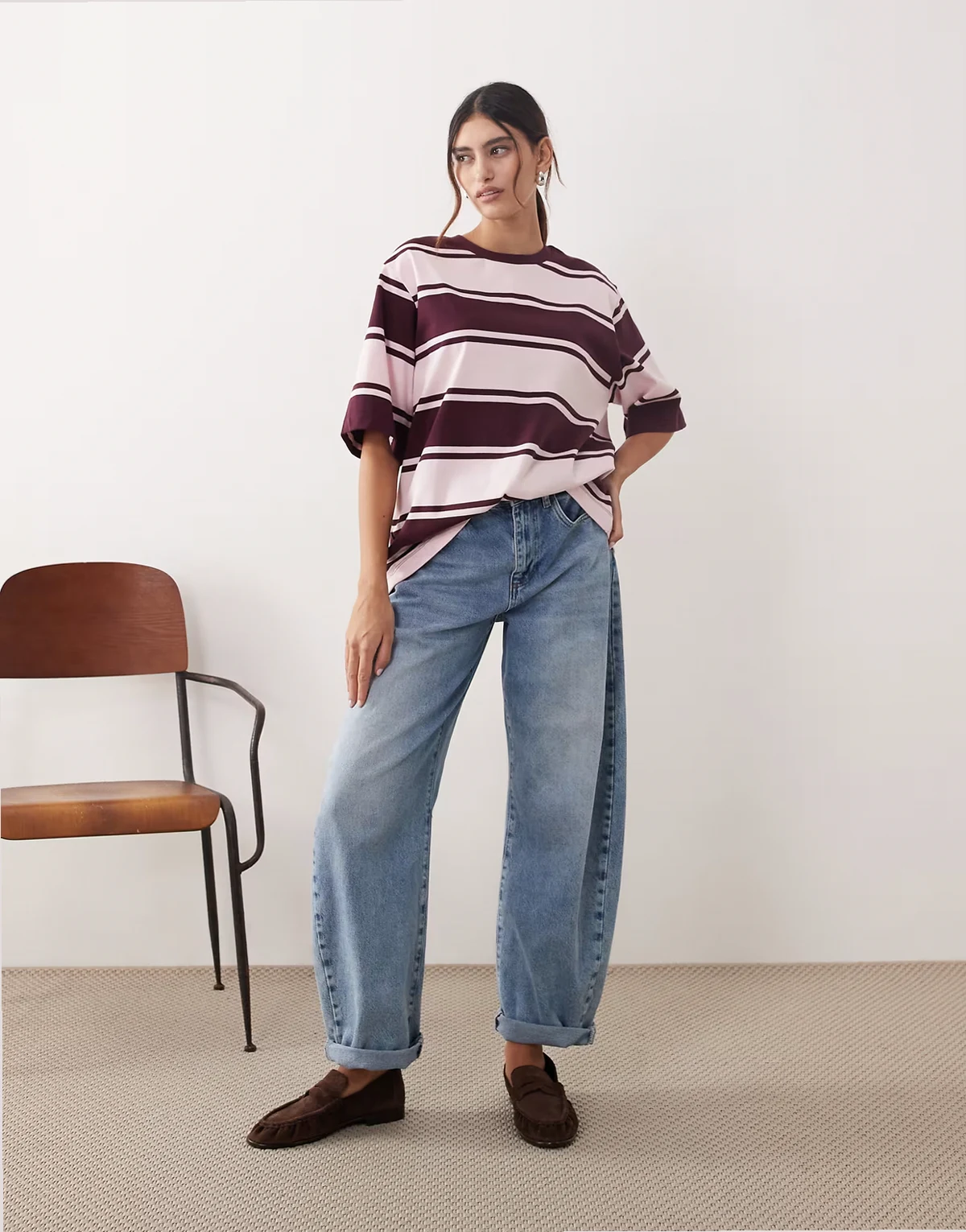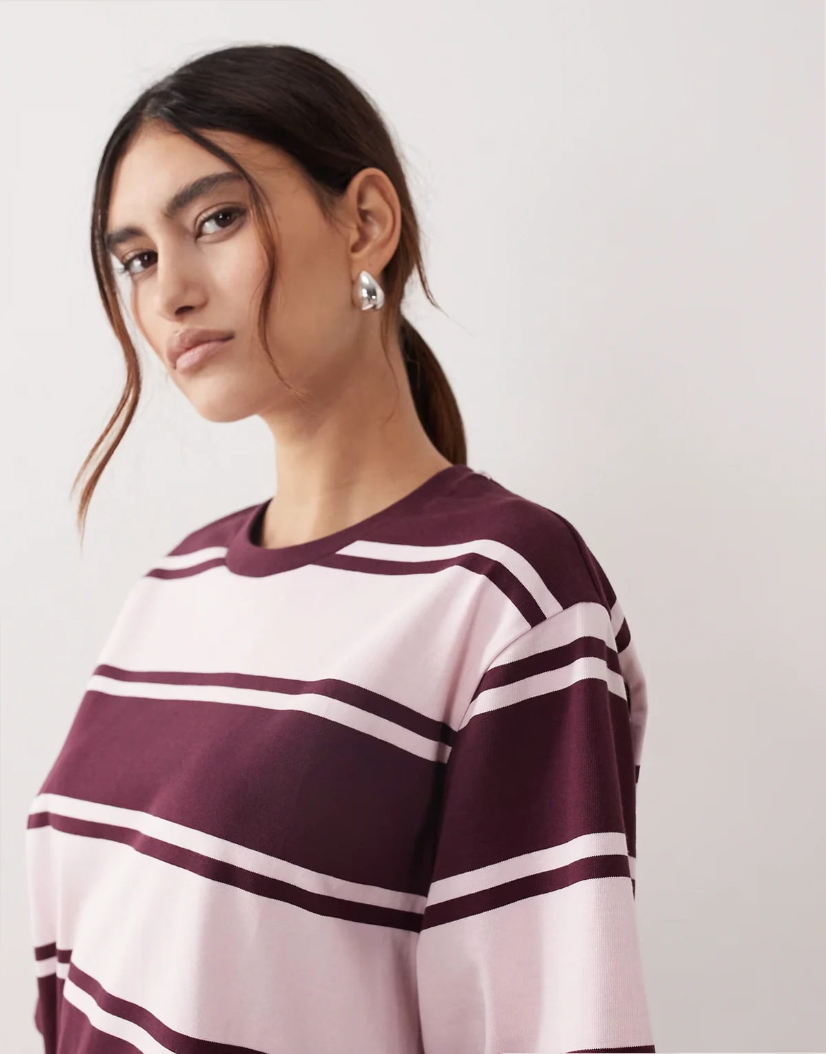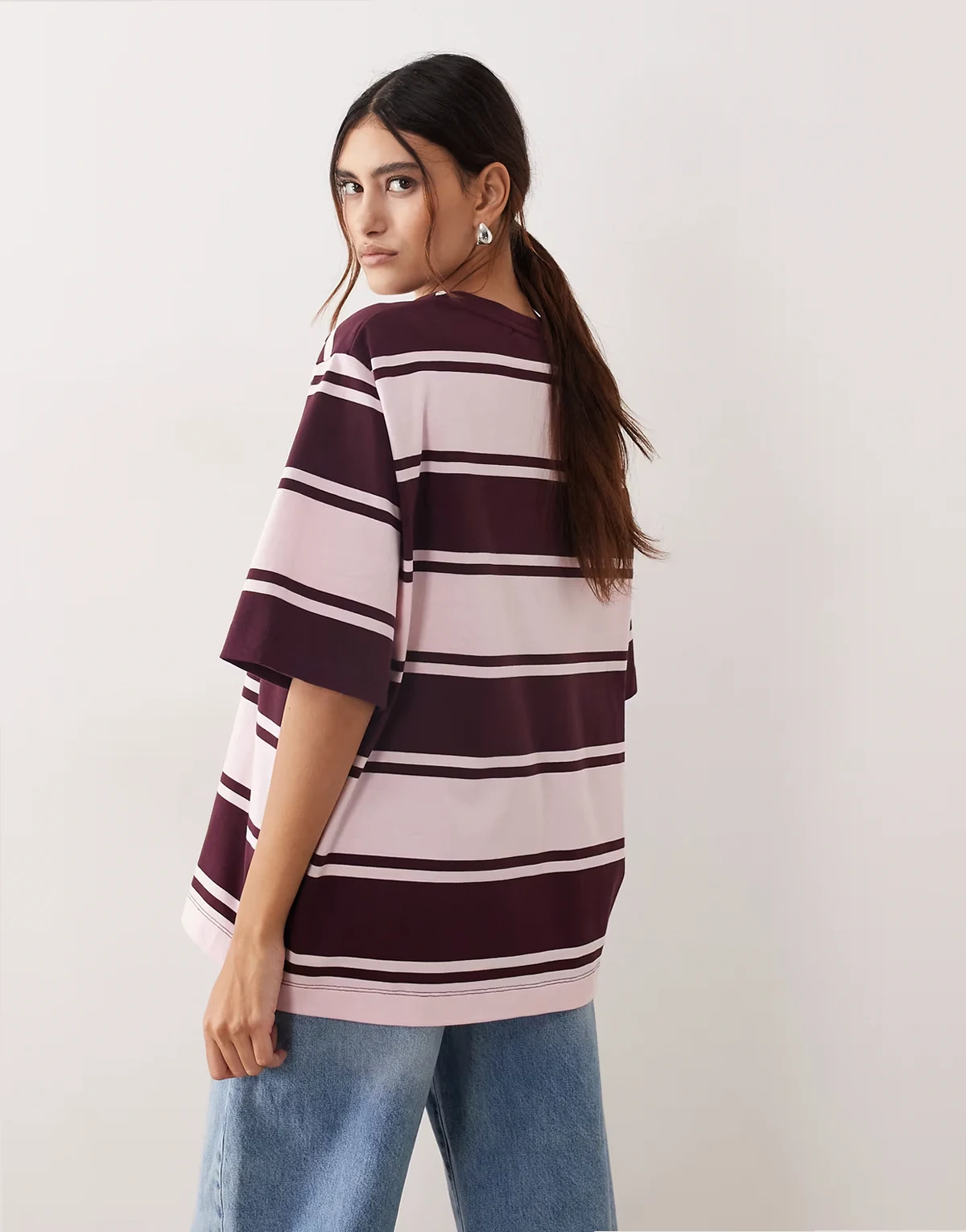 oversized premium heavyweight t-shirt in pink and burgundy stripes