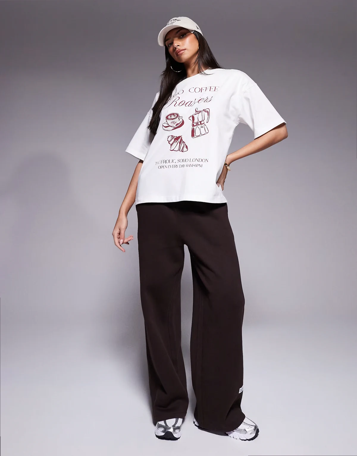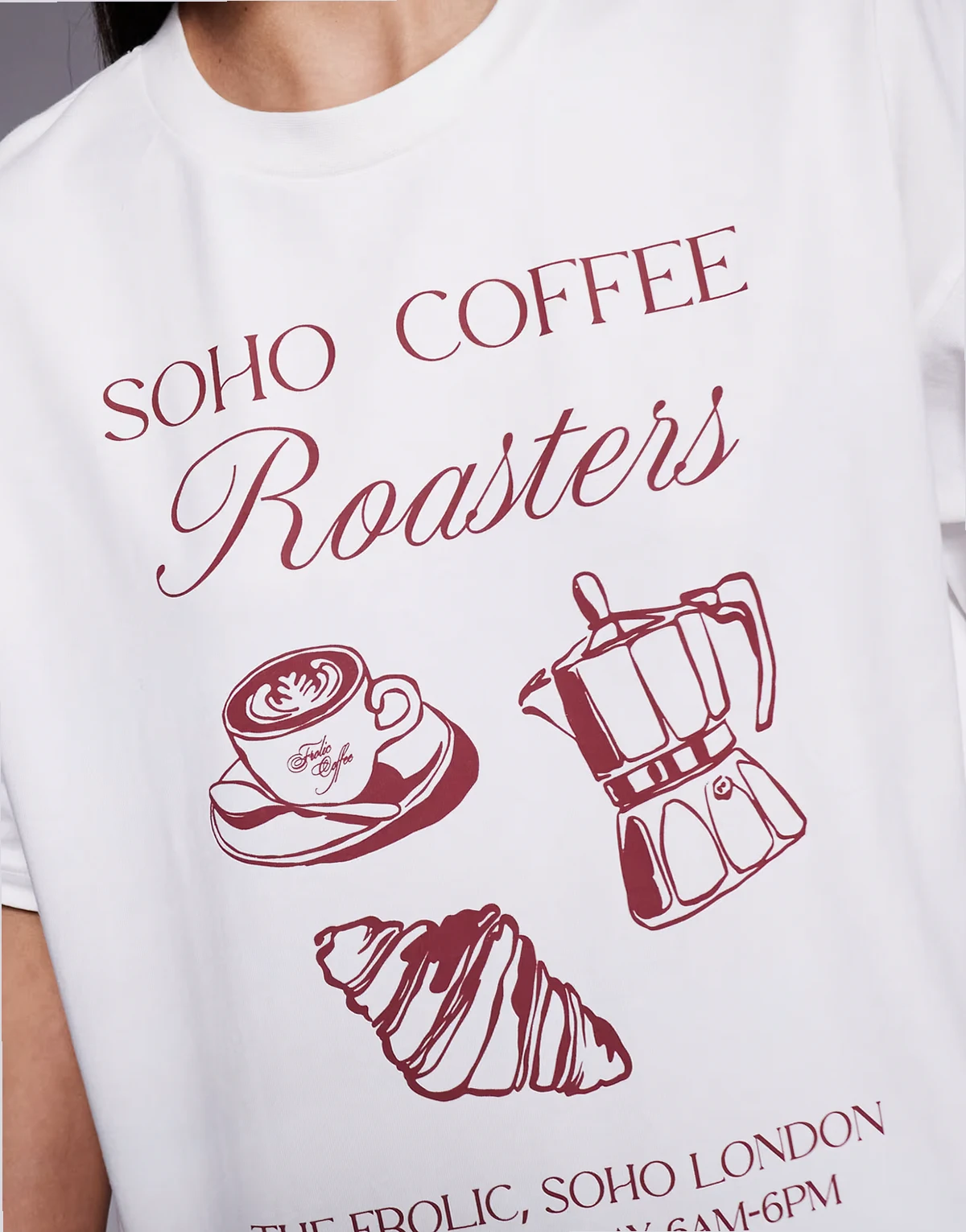 exclusive cotton dropped shoulder 'coffee' graphic front oversized T-shirt in cream
