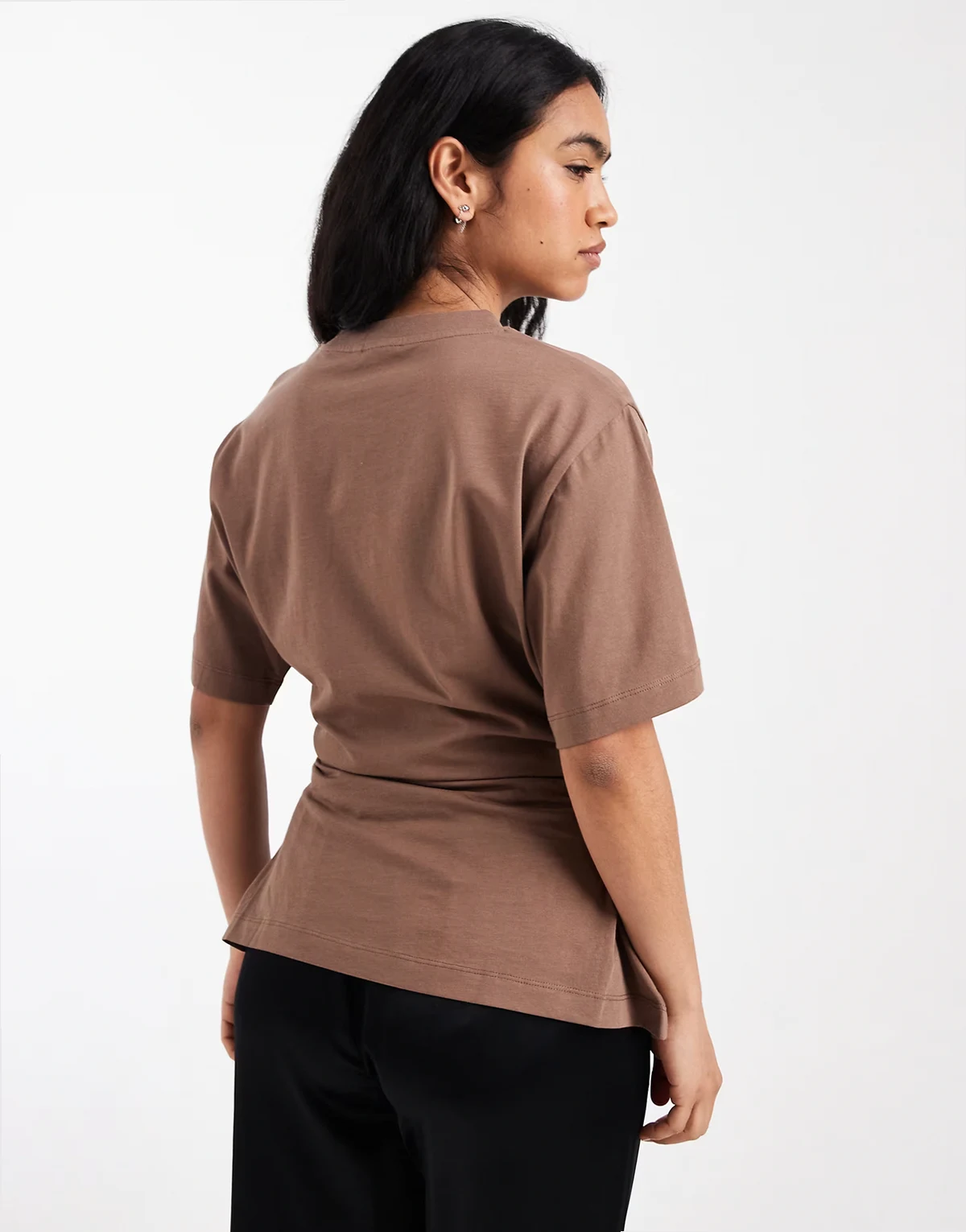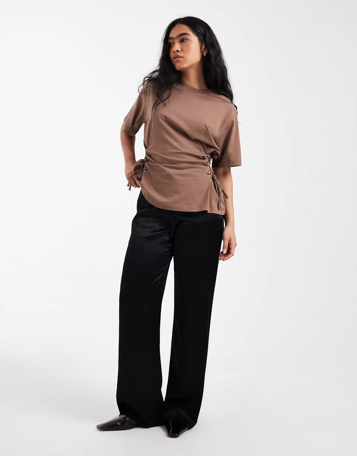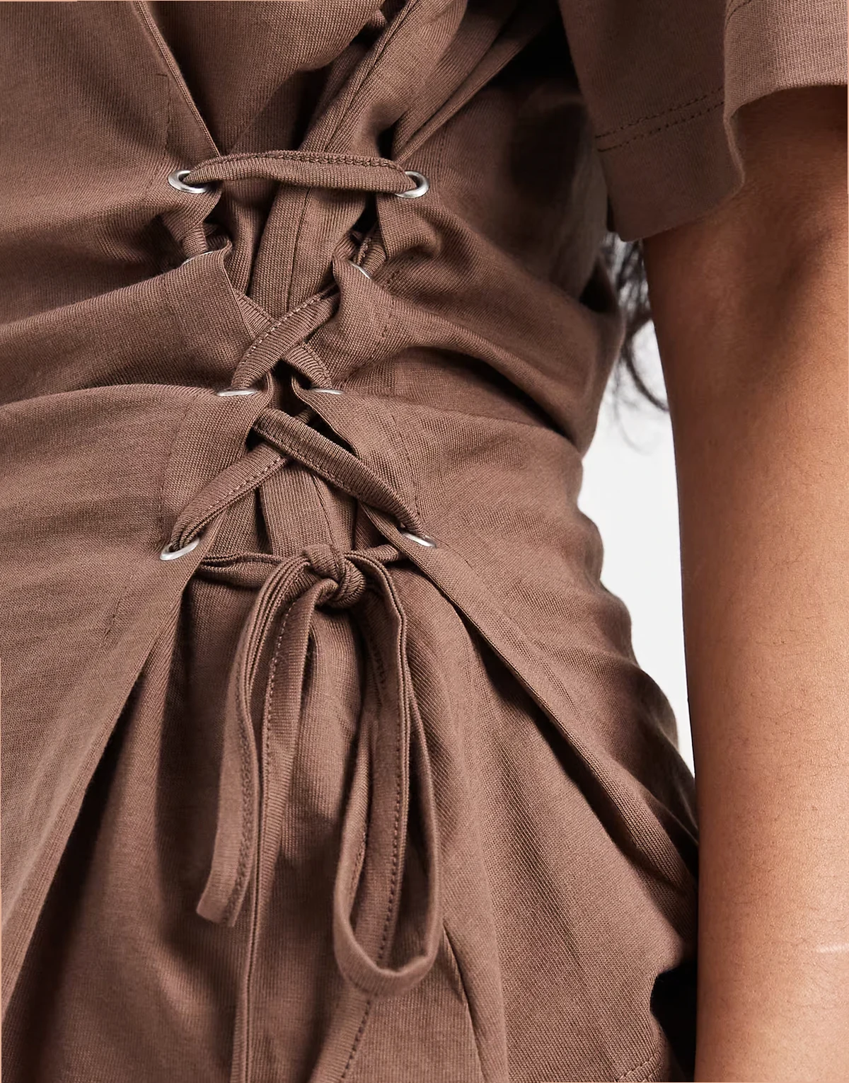 ASOS DESIGN lace up tie sides t-shirt in chocolate