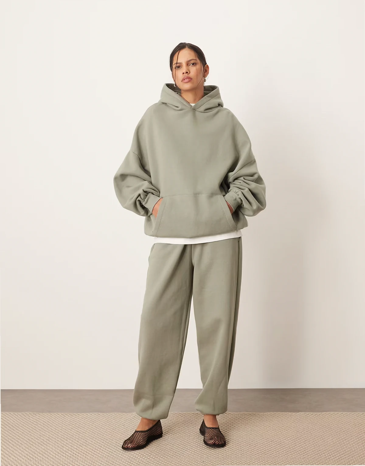 oversized premium heavy weight hoodie in olive green