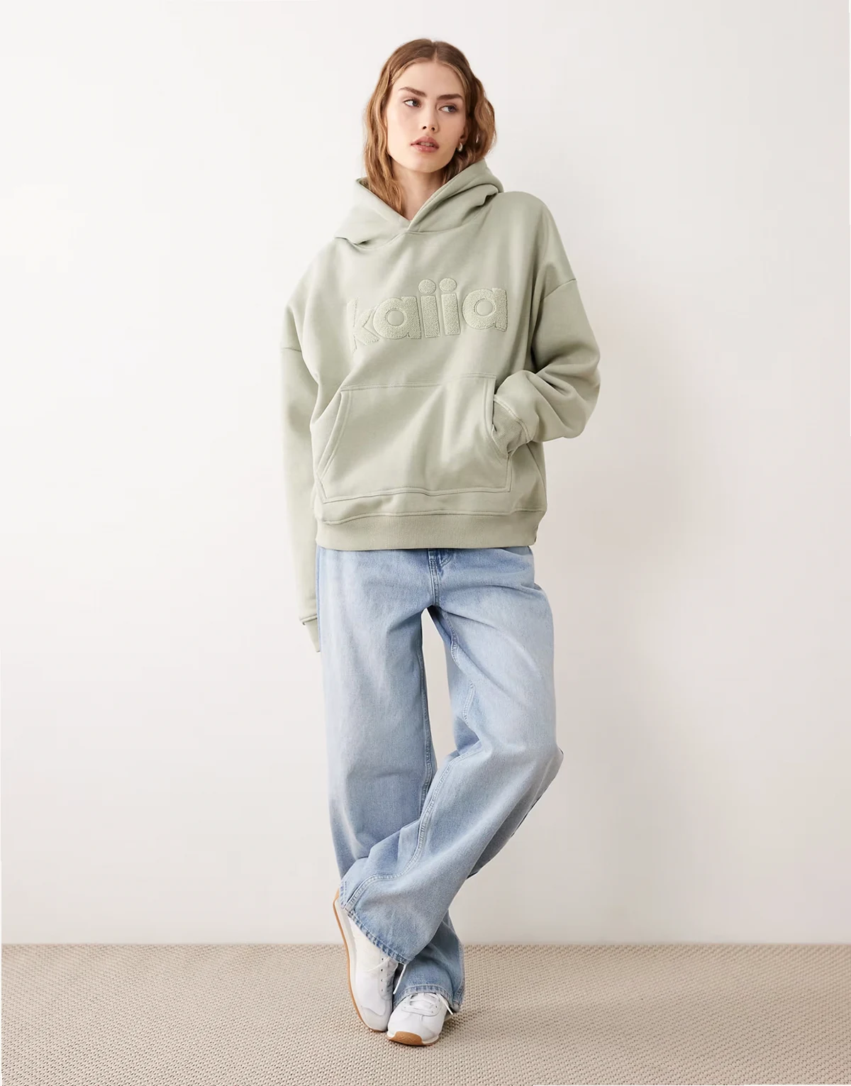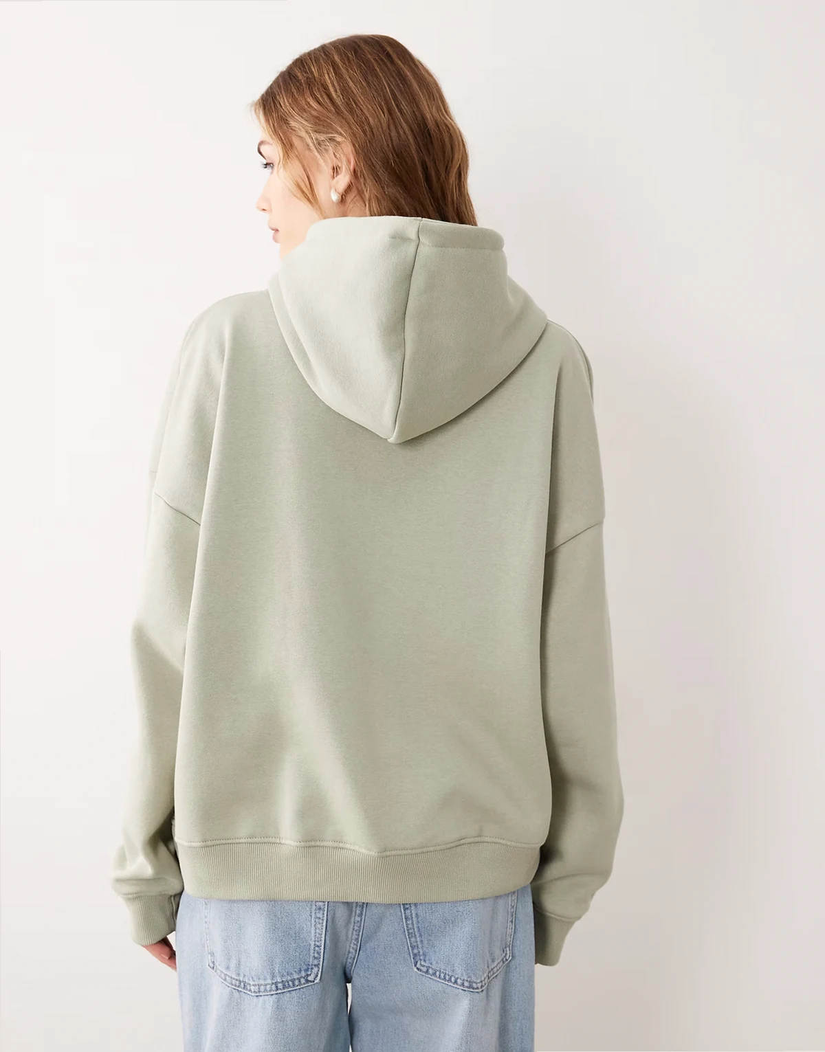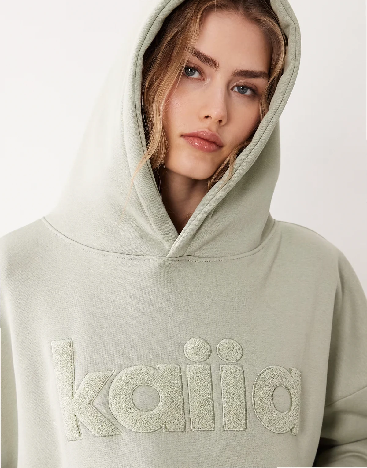 cotton rich oversized borg logo hoodie in sage green - part of a set