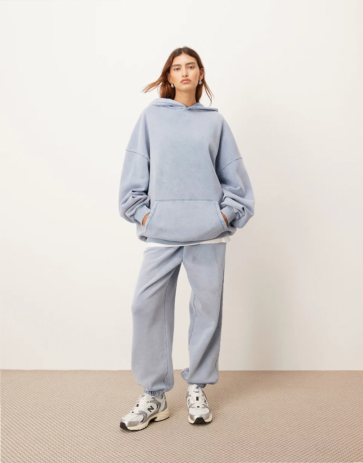 premium acid wash hoodie in soft blue