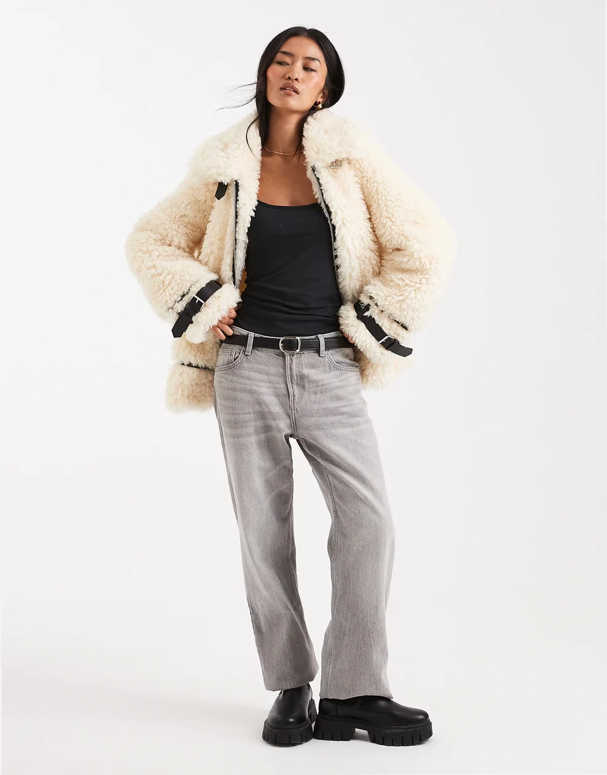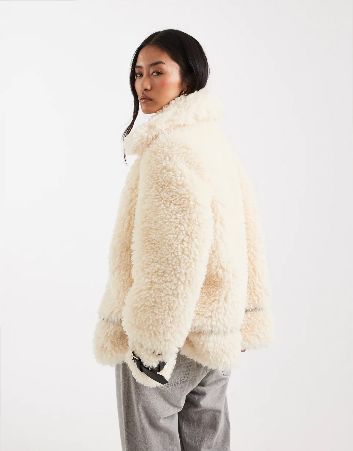 teddy oversized aviator jacket in cream
