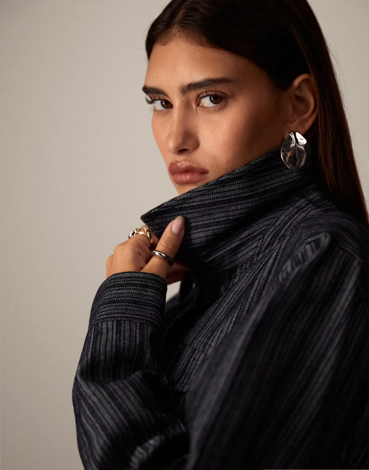 high-neck zip-front jacket
