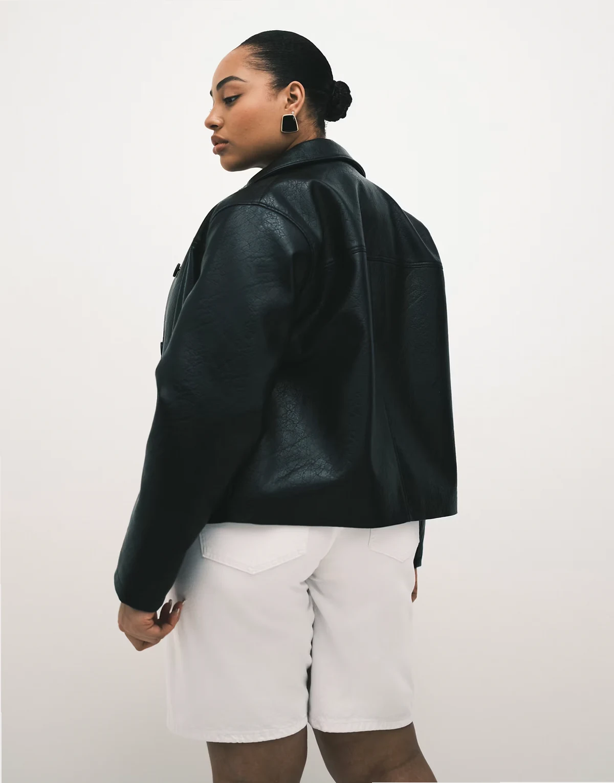 ASOS DESIGN Curve leather look Harrington jacket in black