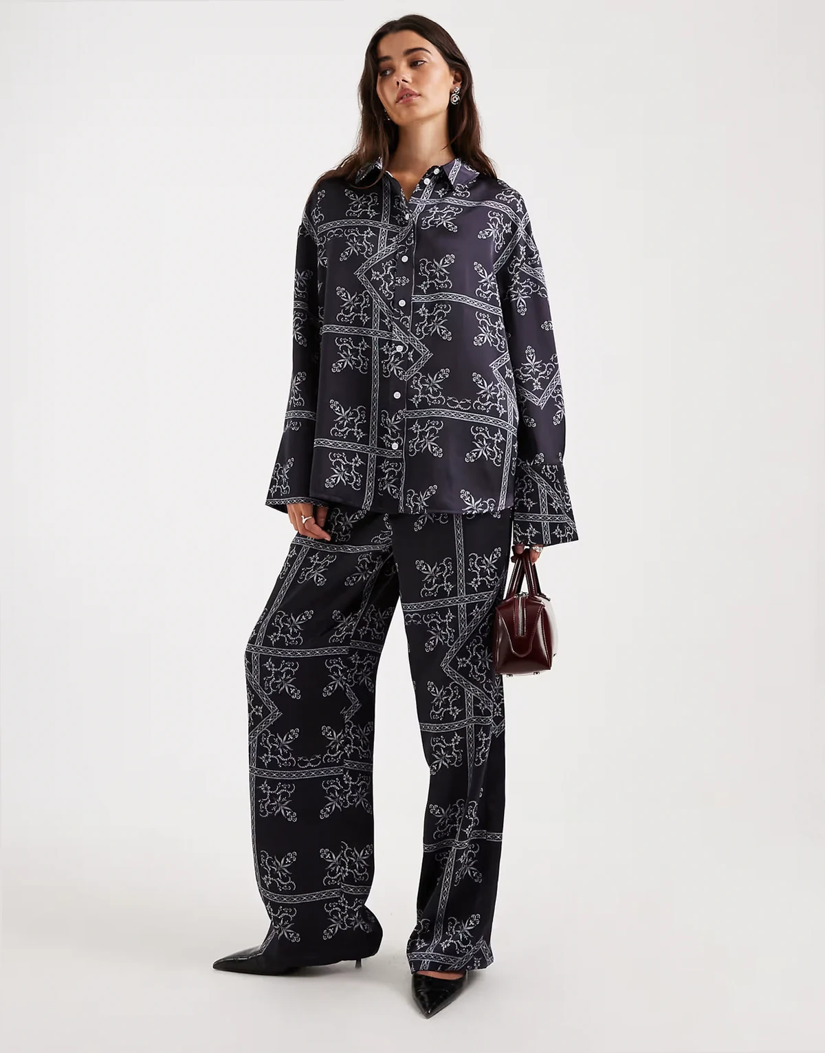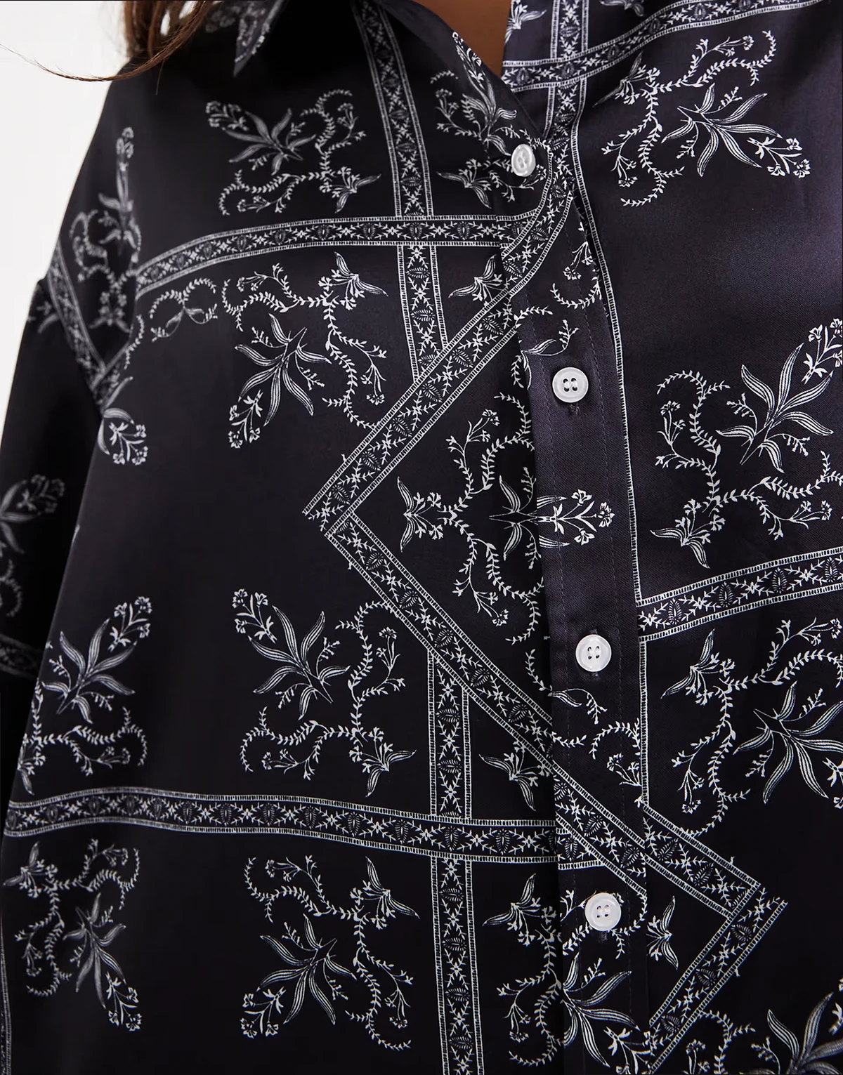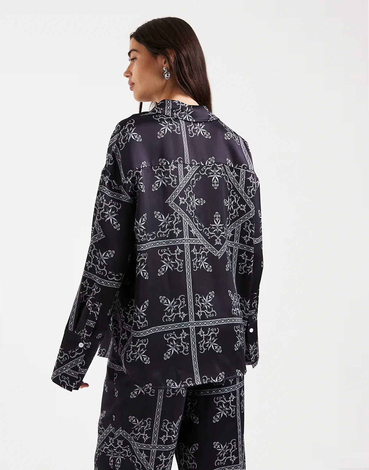 satin deep cuffed shirt in navy paisley print - part of a set