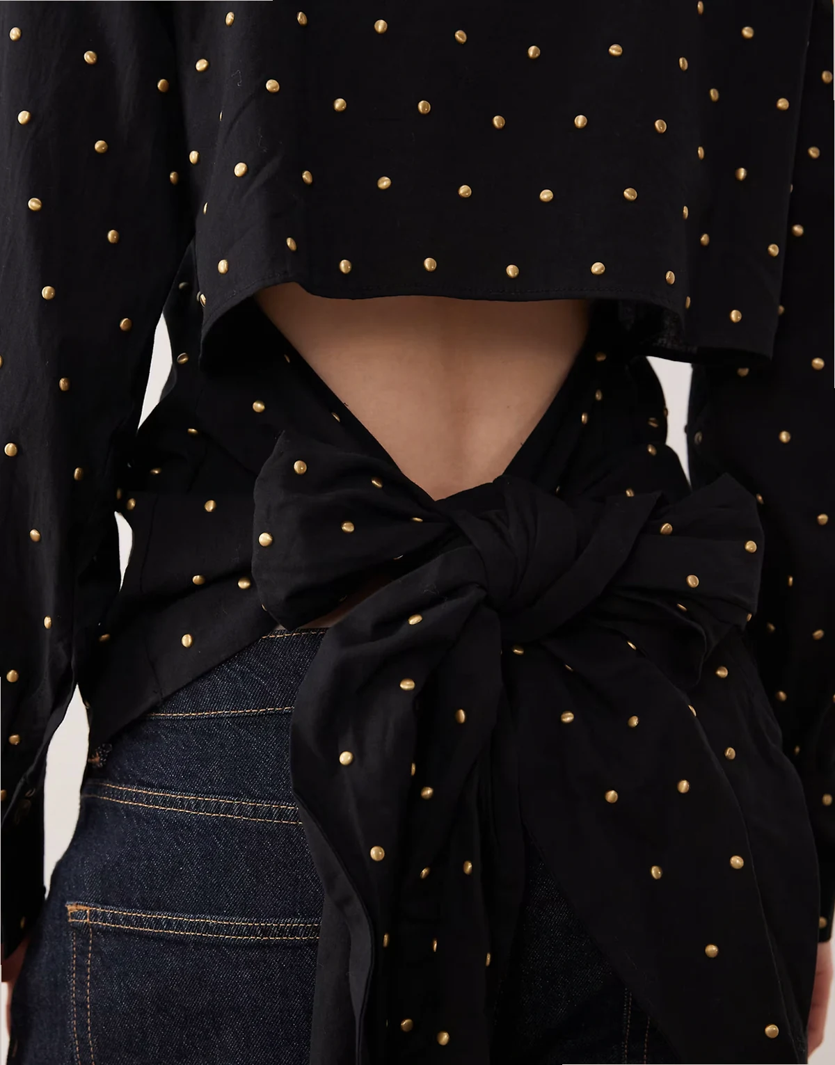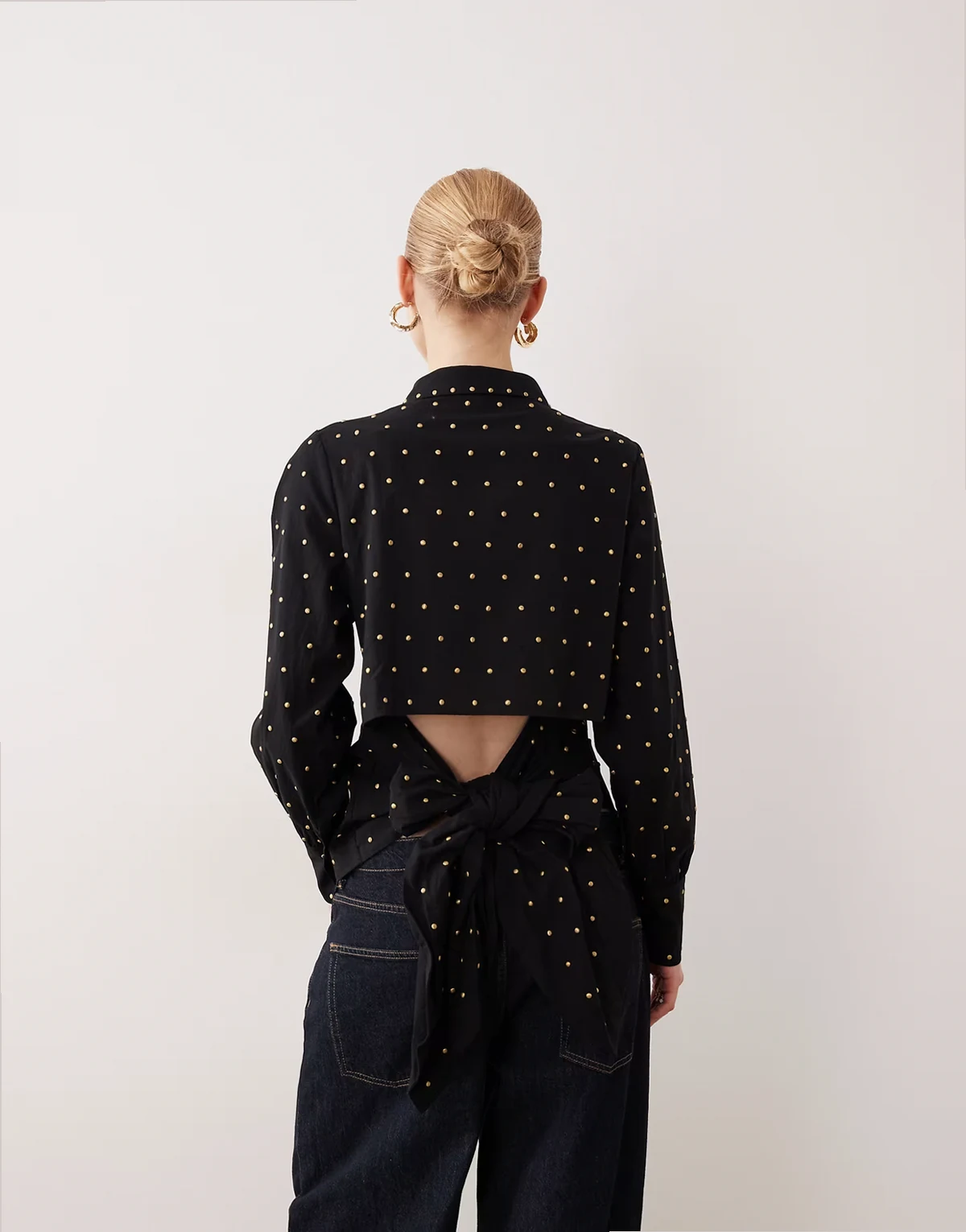 hotfix studded bow back shirt in black