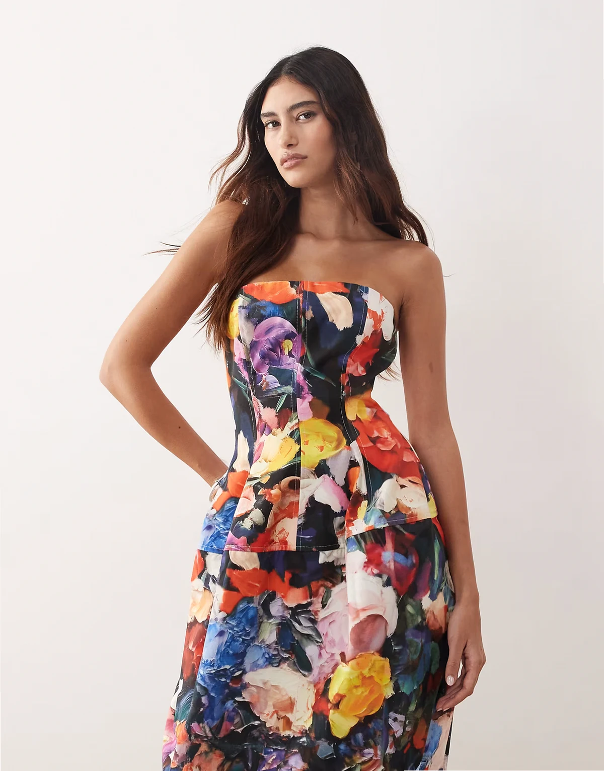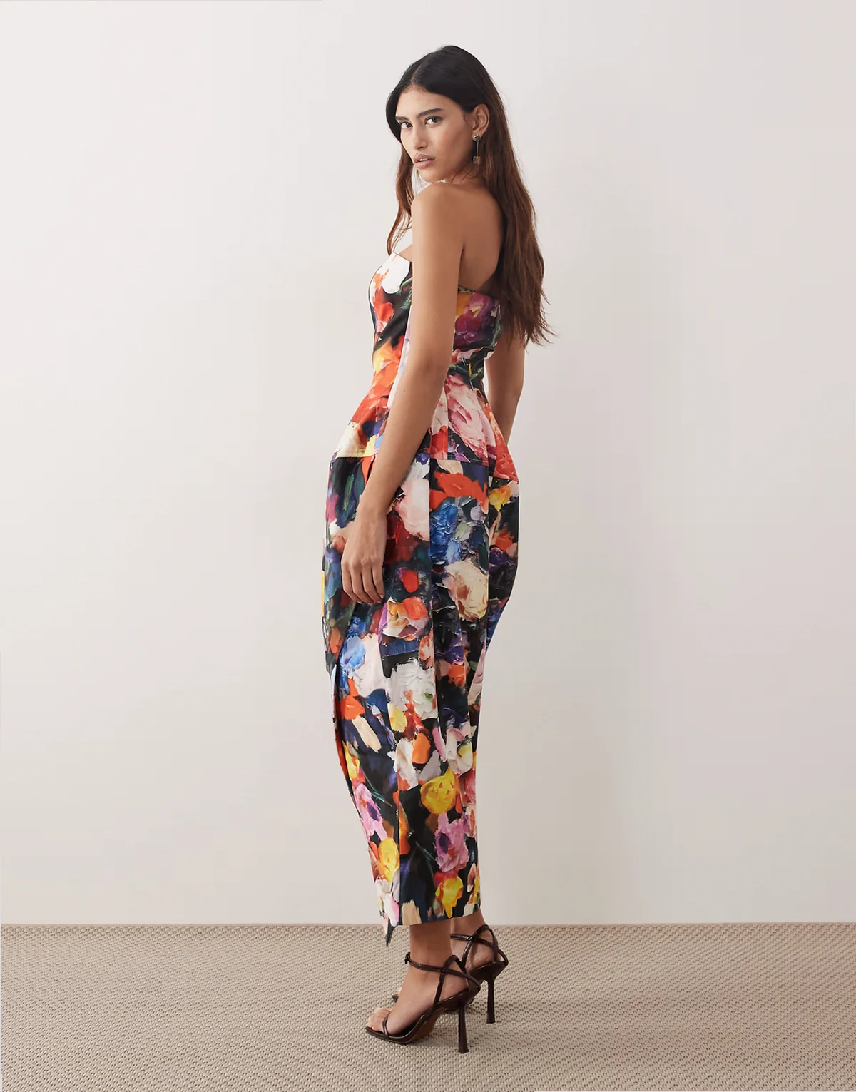 structured volume bandeau midi dress in bloom floral print