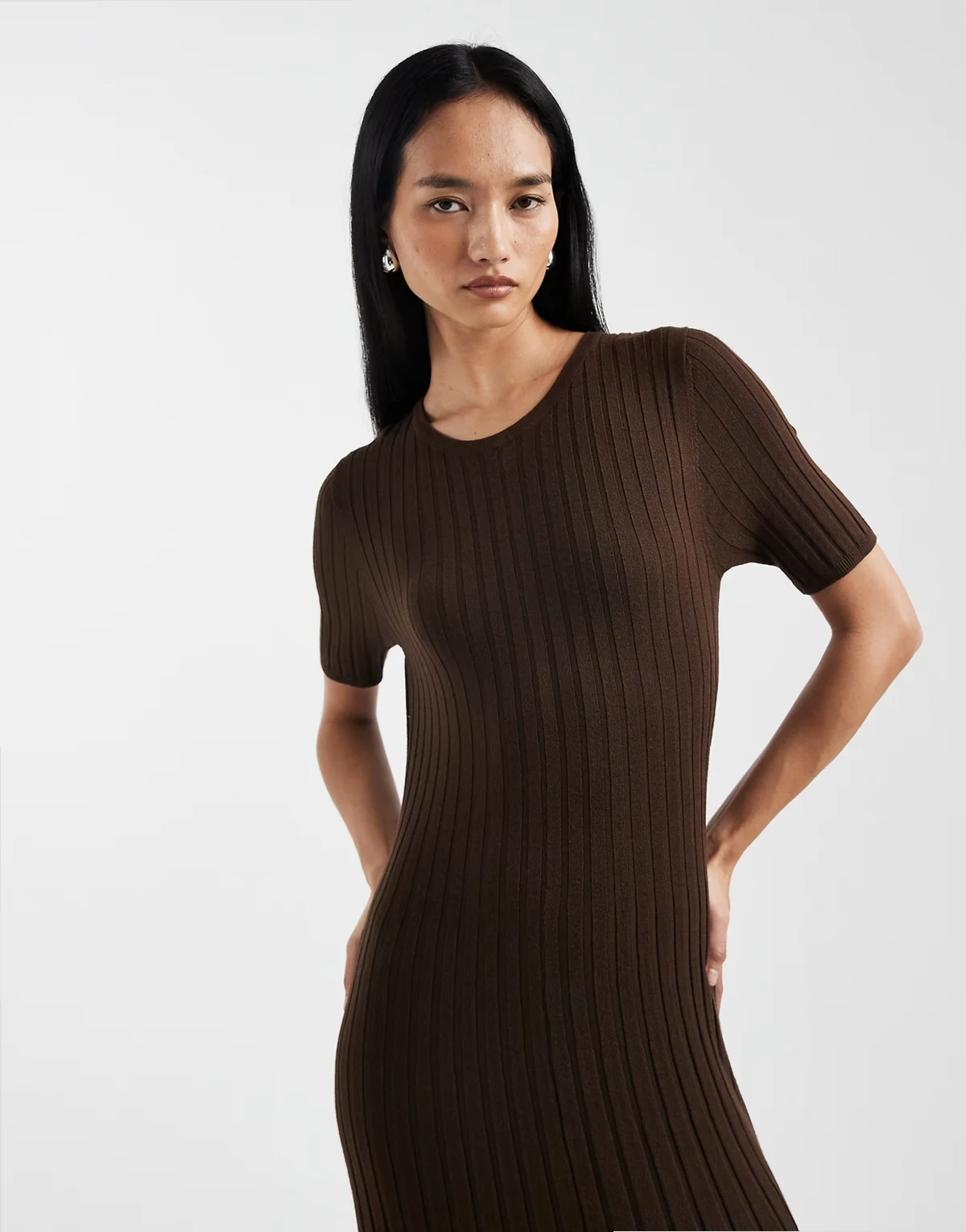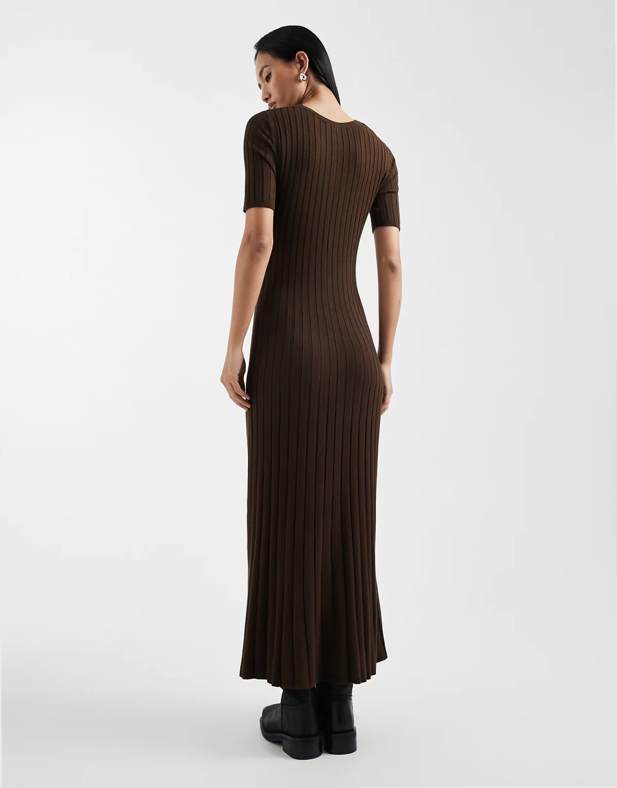 short sleeve knit maxi dress in chocolate brown