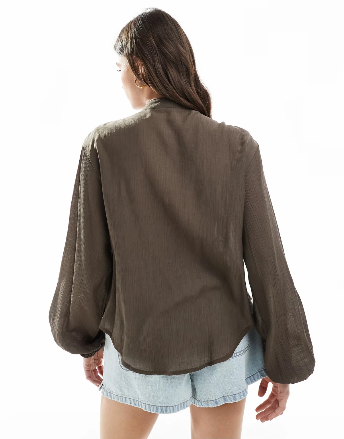Off-White Puff-Sleeve Ruffle Crêpe De Chine Blouse