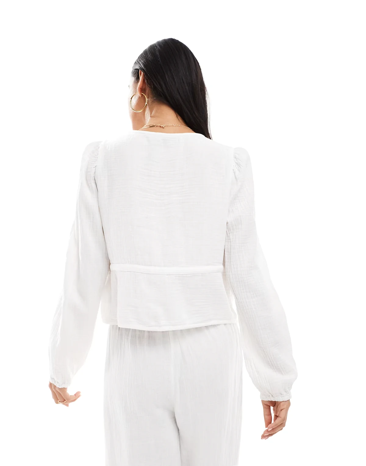 crinkle cotton tie front cropped blouse in cloud white - part of a set