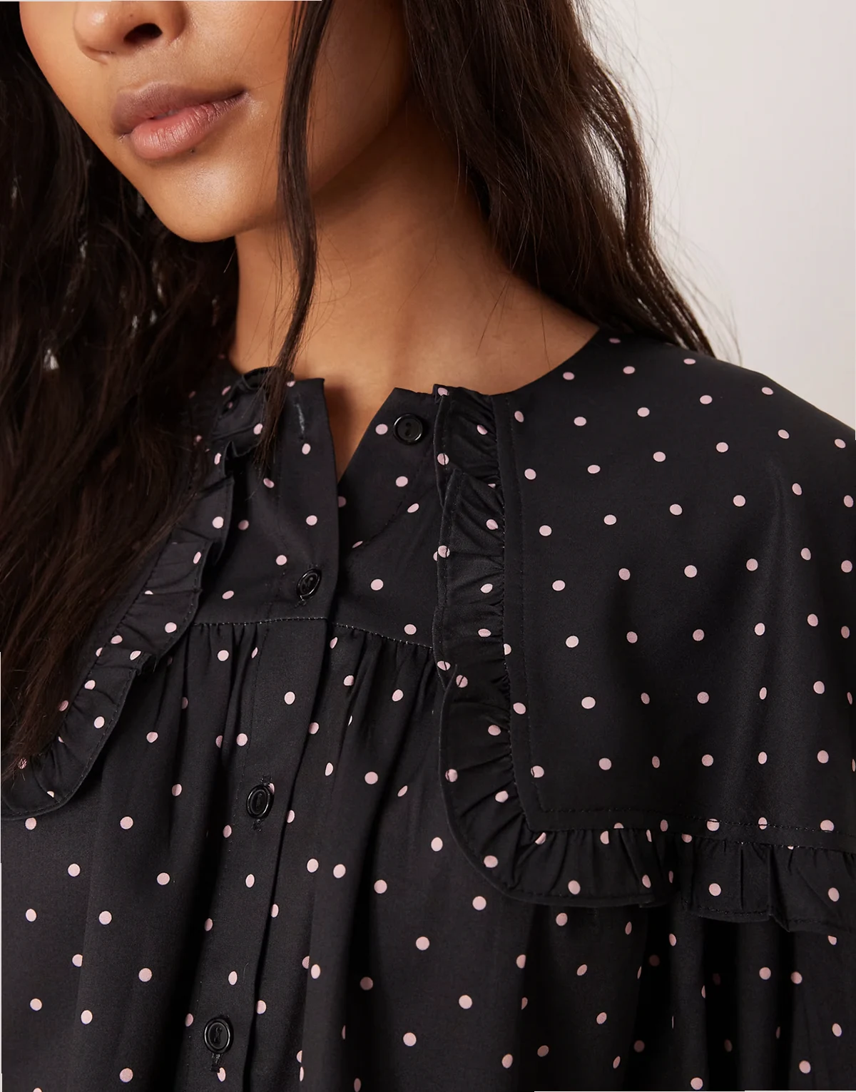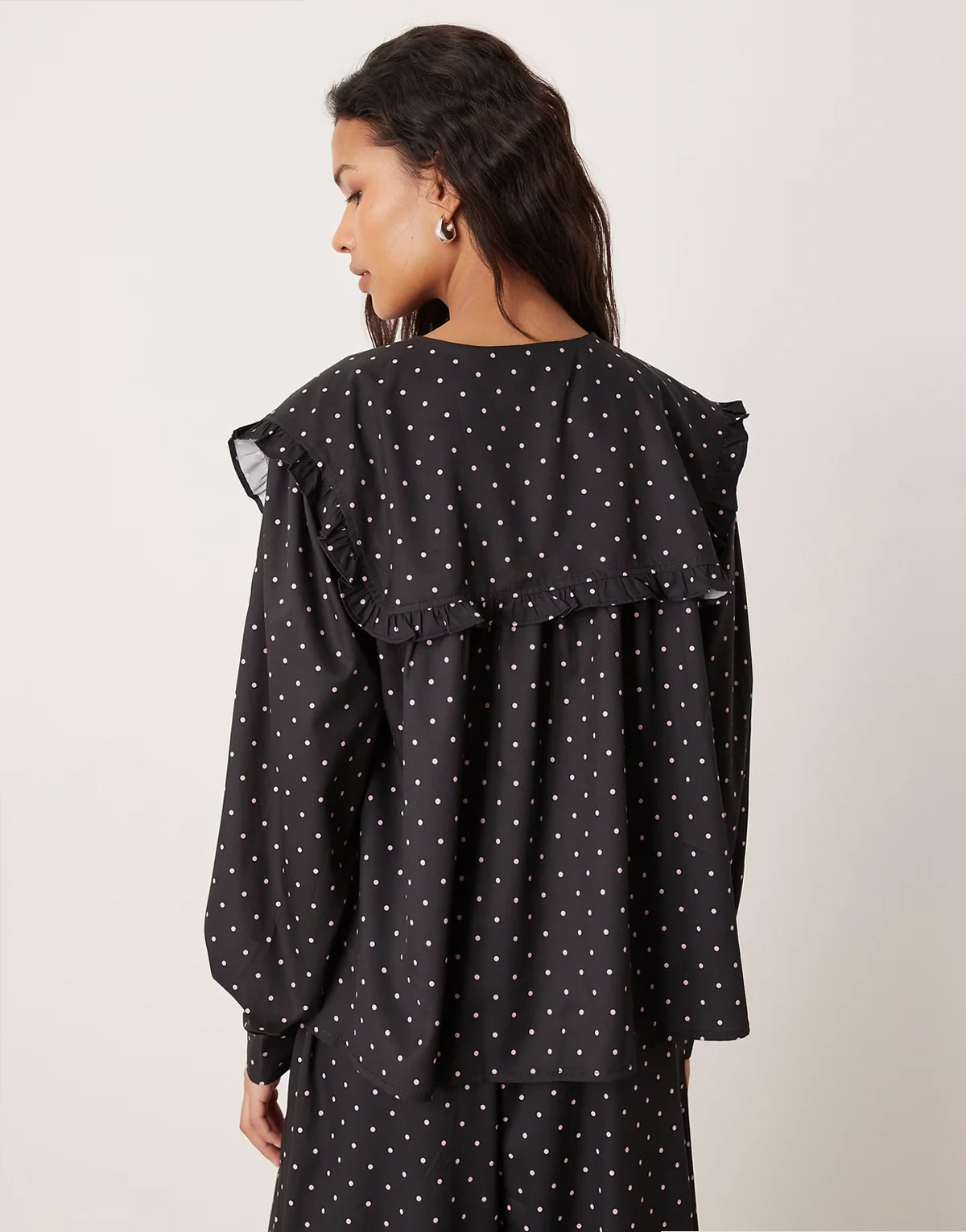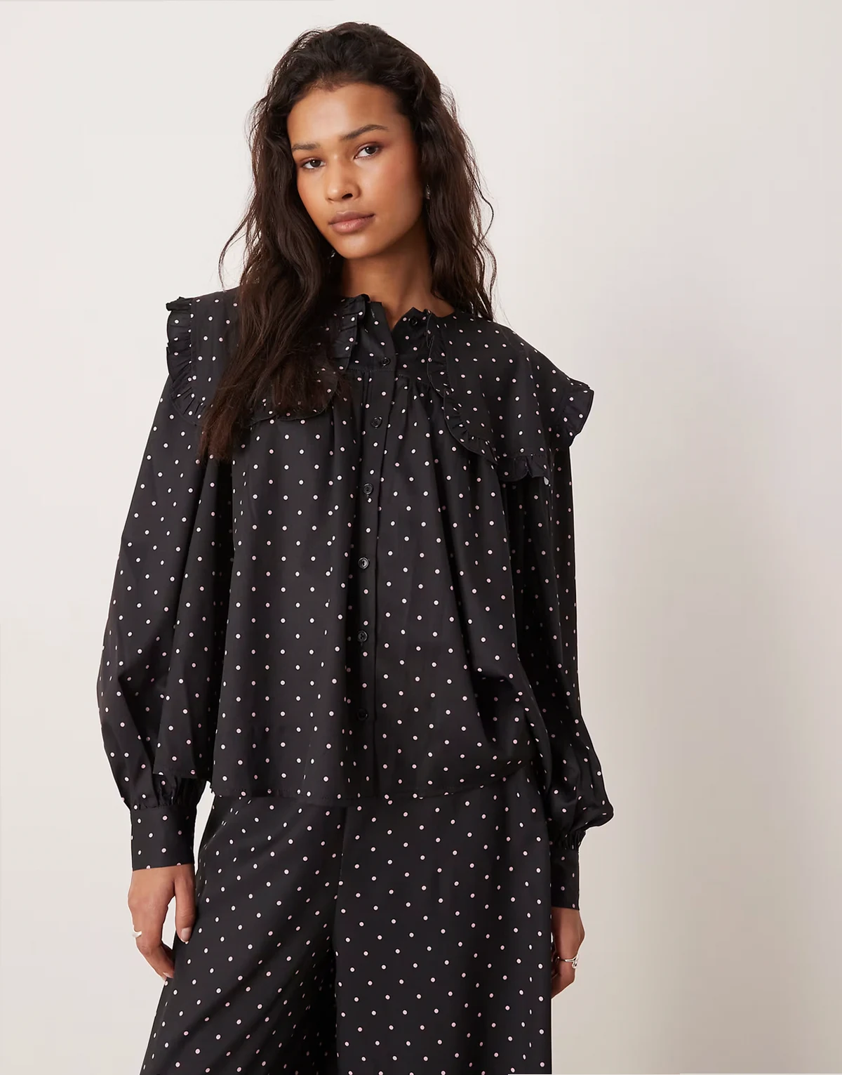 oversized ruffle blouse in black/pink polka dot - part of a set