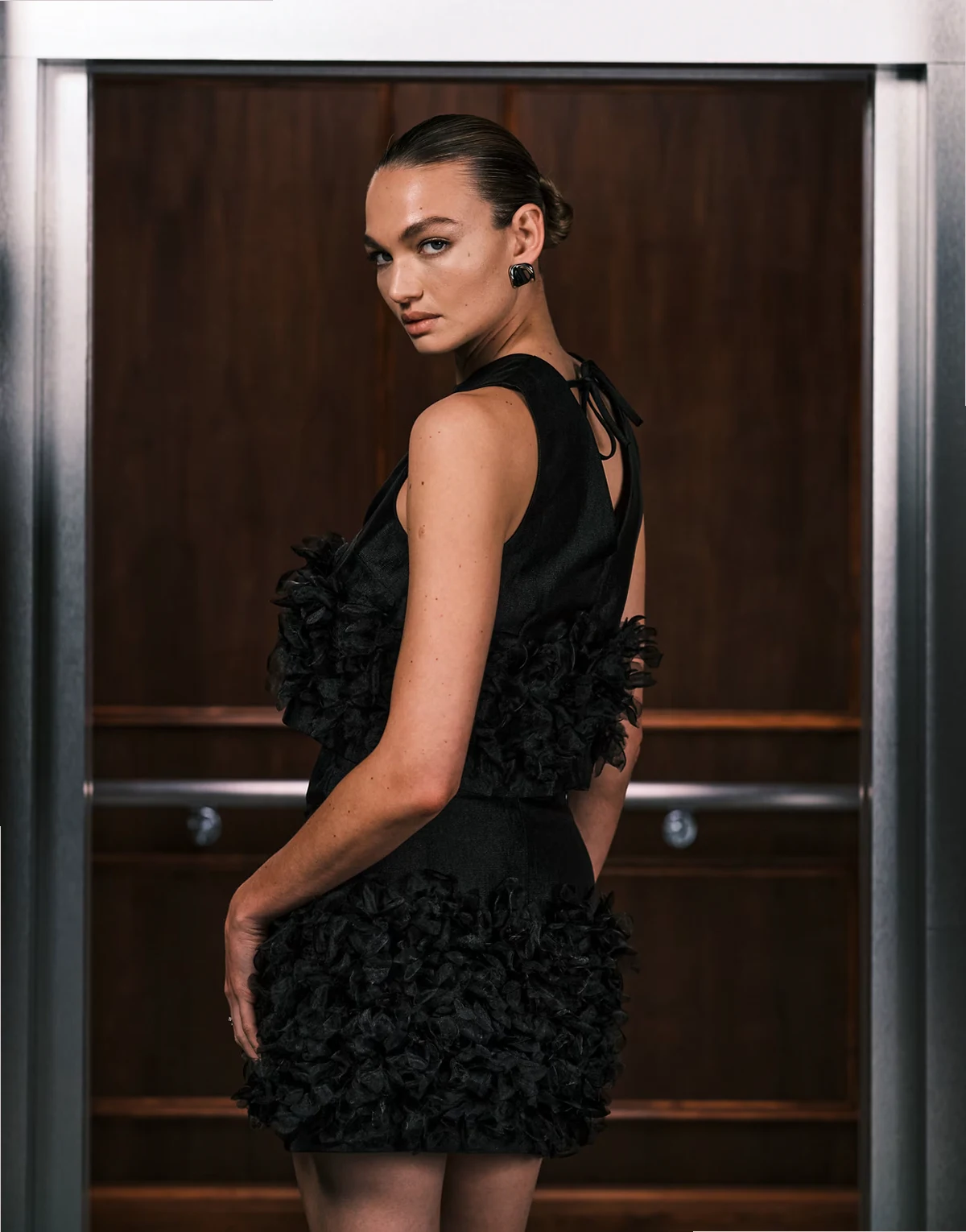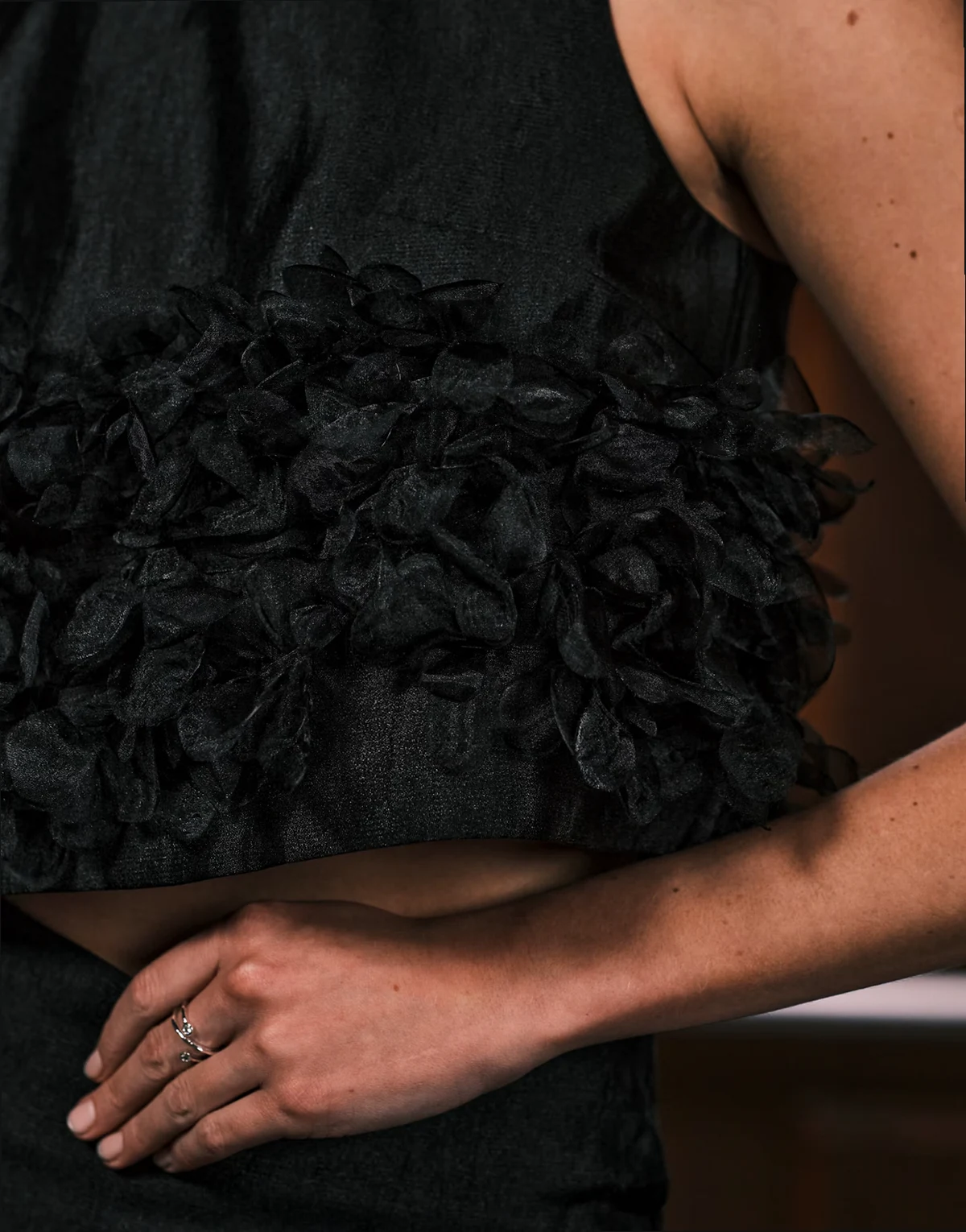 Plume organza 3D floral crop top in black - part of a set