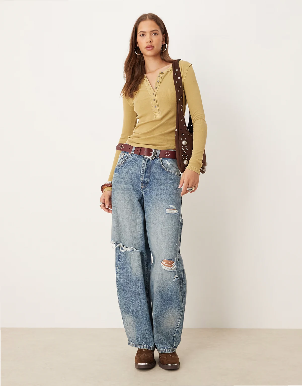 Jamie Henley button-up long sleeve top in dried tobacco