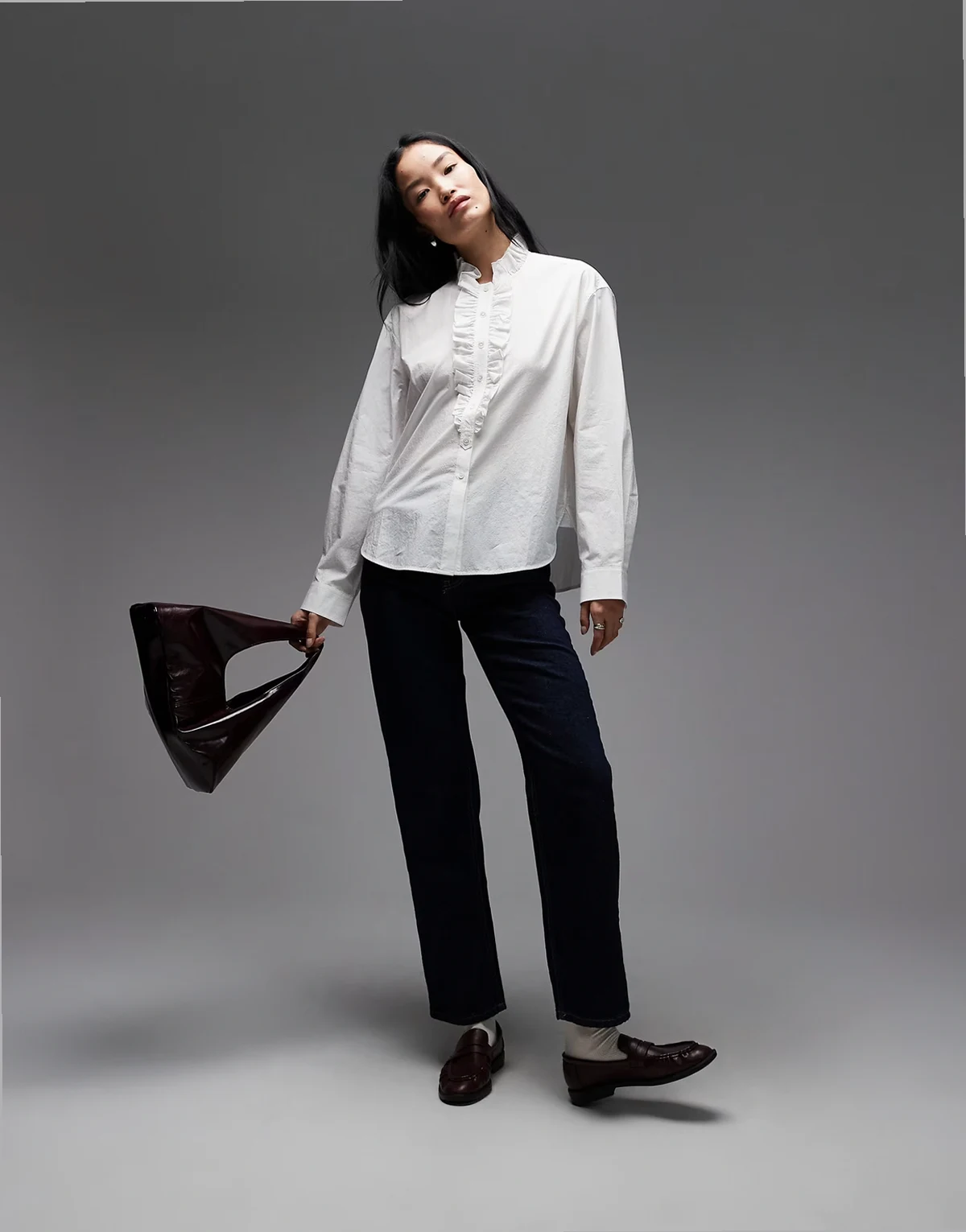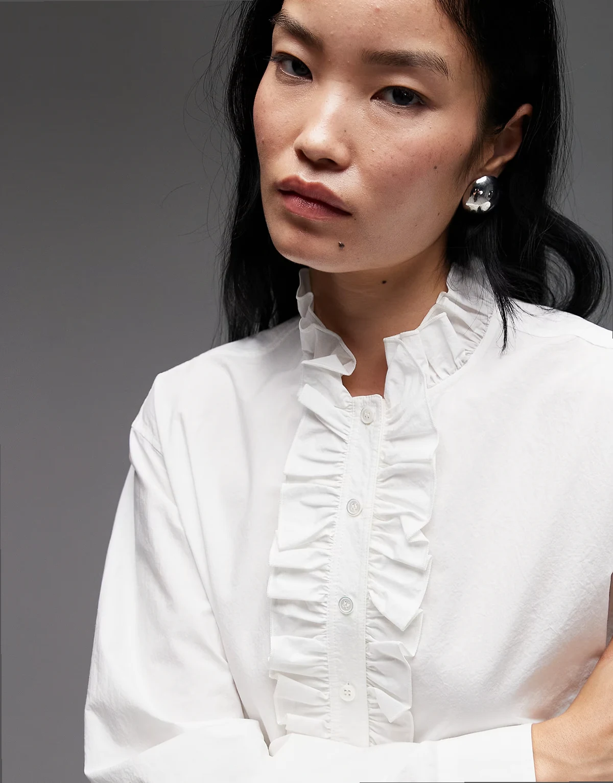 pure cotton frill detailing long sleeve blouse in off white