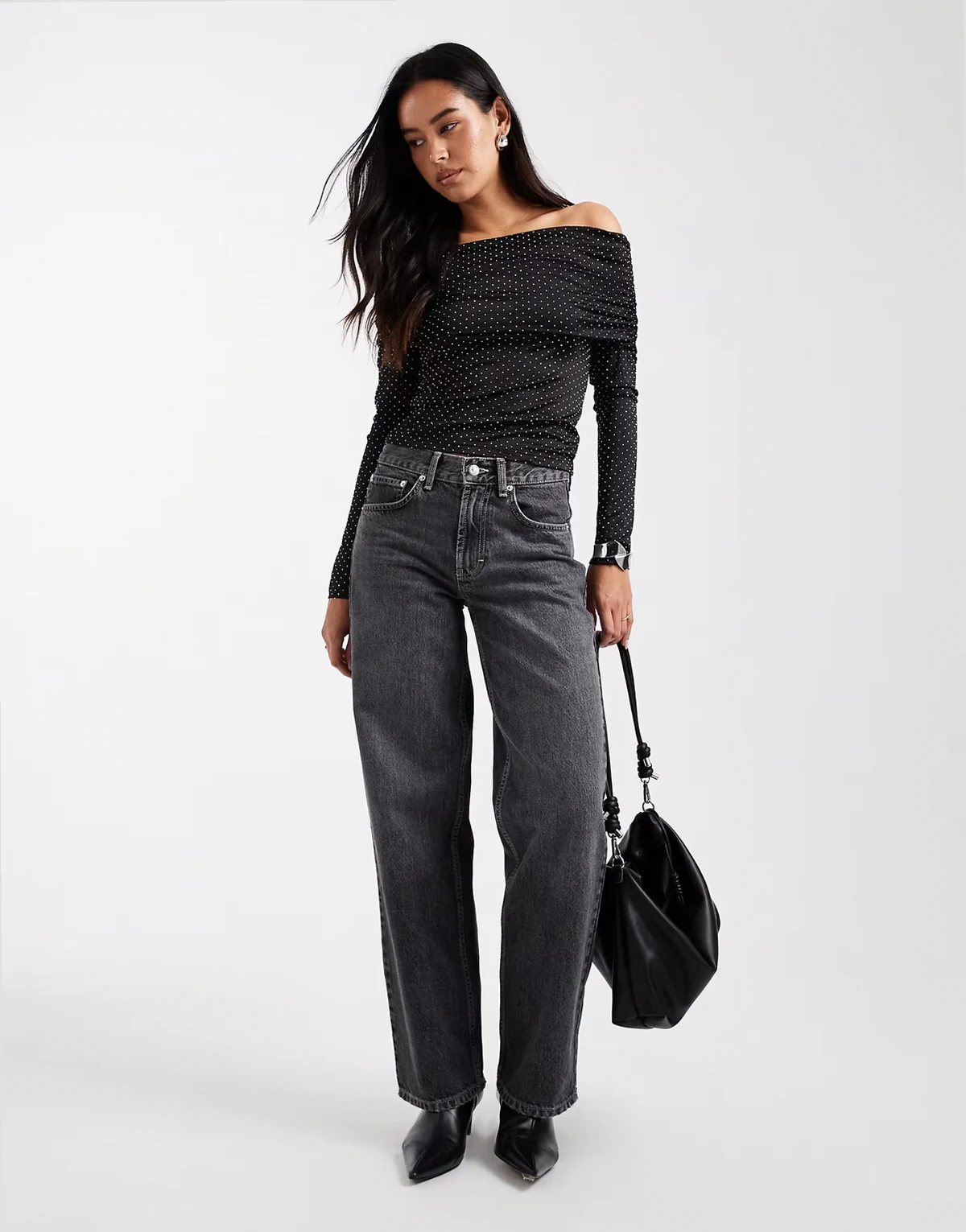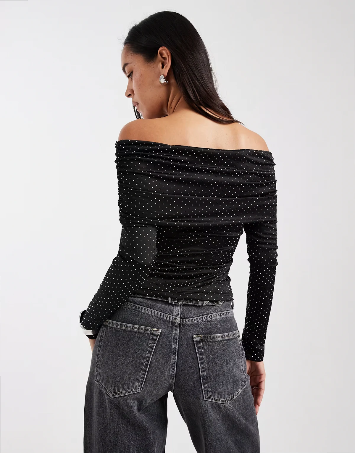 rhinestone off the shoulder top in black