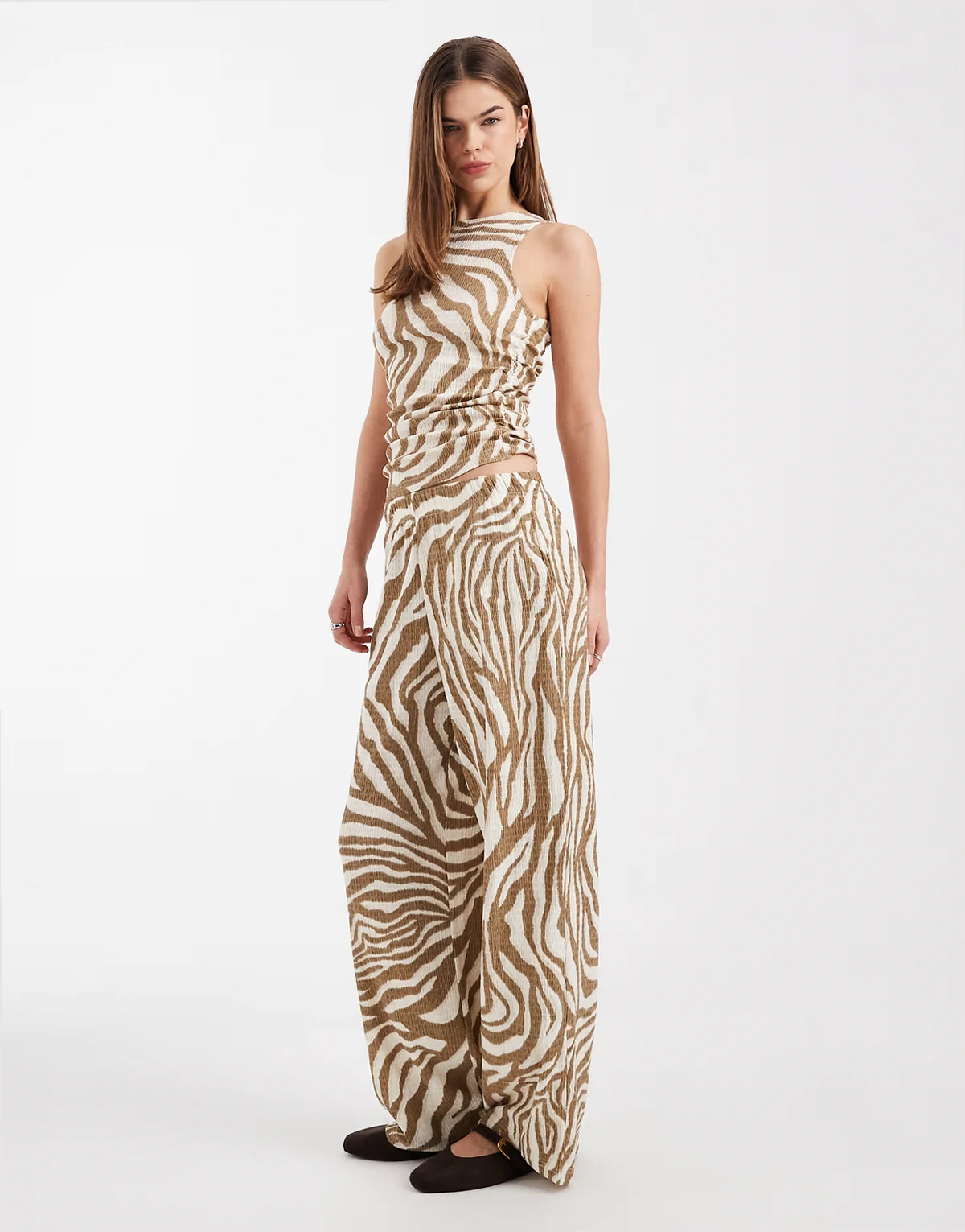 sleeveless ruched jersey top in birch abstract print - part of a set