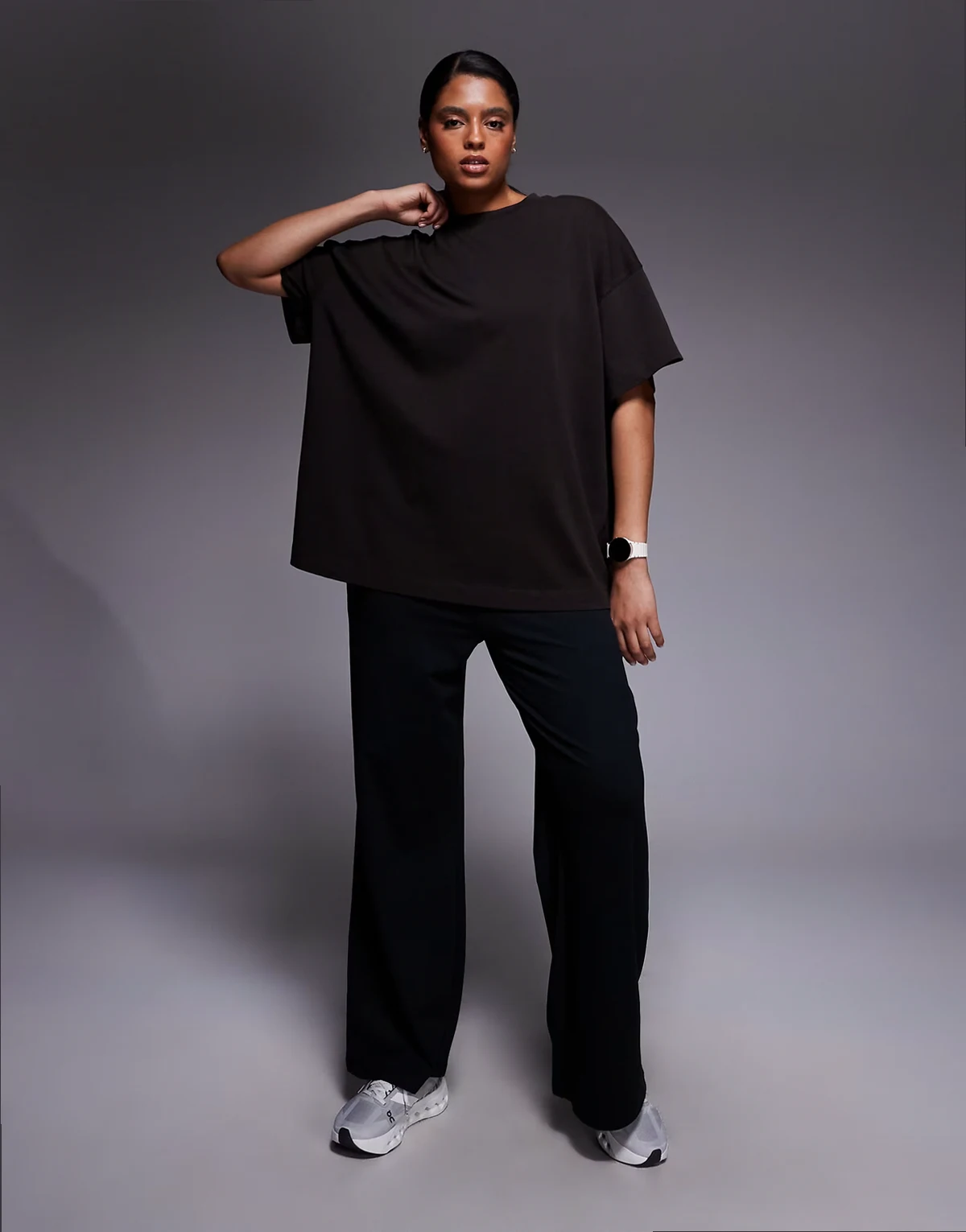 Curve Icon heavyweight cotton oversized t-shirt with quick dry finish in washed cocoa