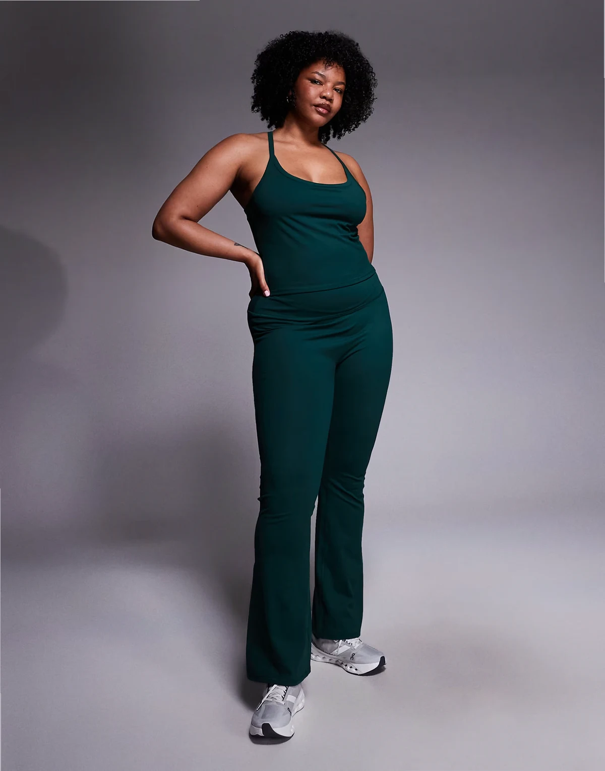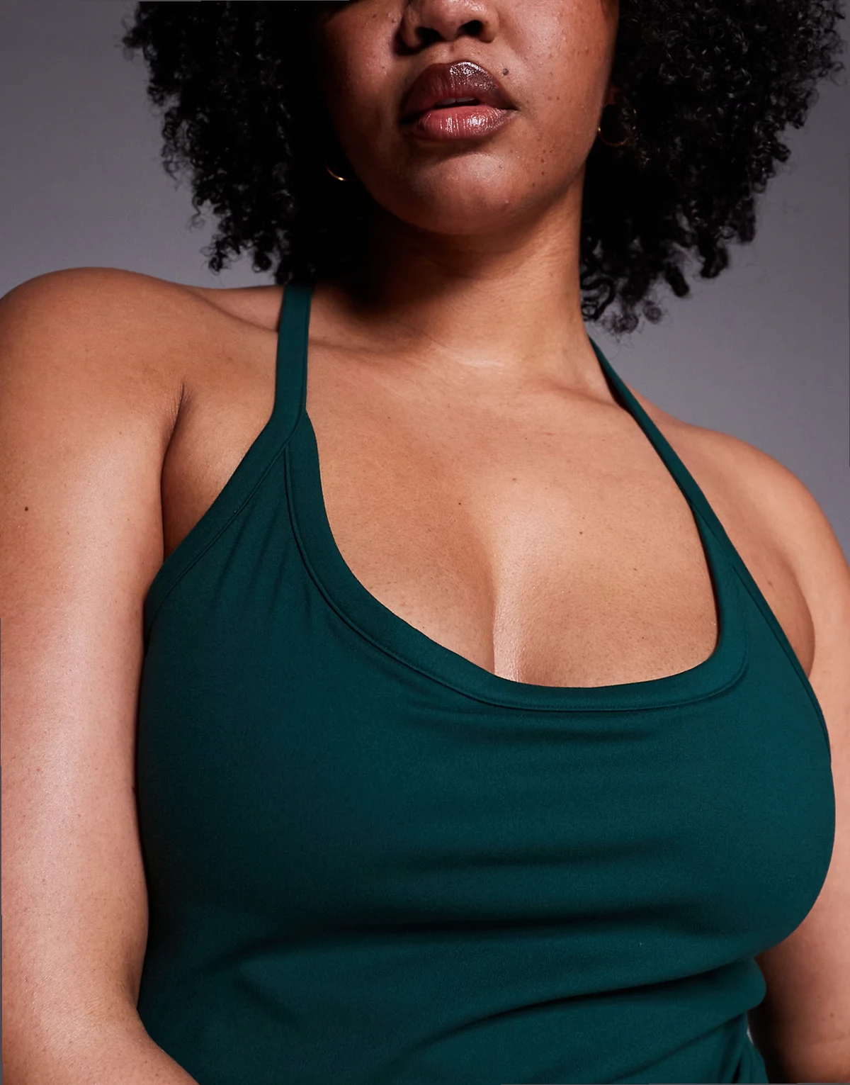 Curve Icon soft touch yoga cami with inner bra and adjustable straps in evergreen
