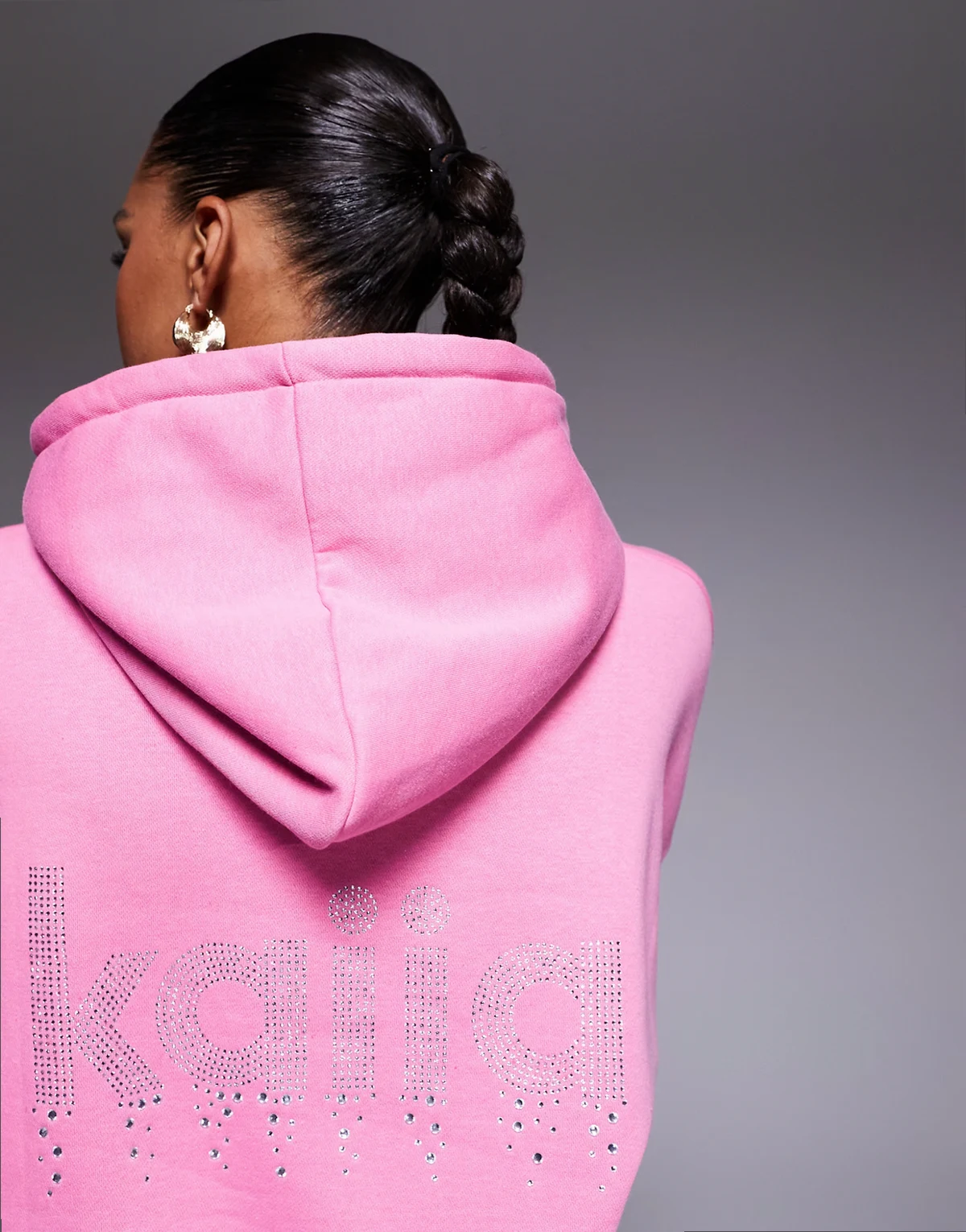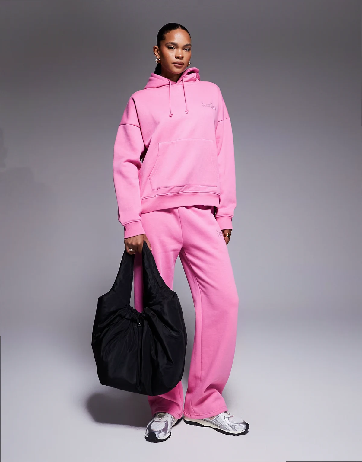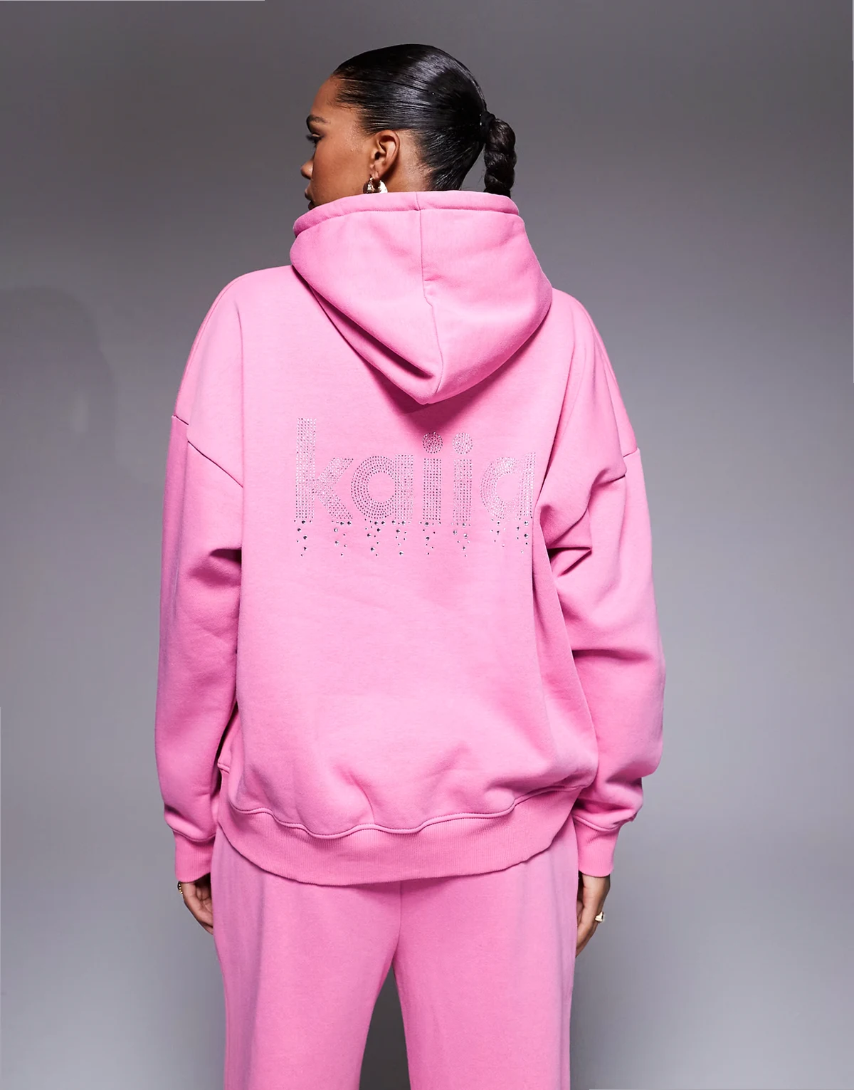 exclusive cotton rich diamante logo oversized hoodie in hot pink - part of a set