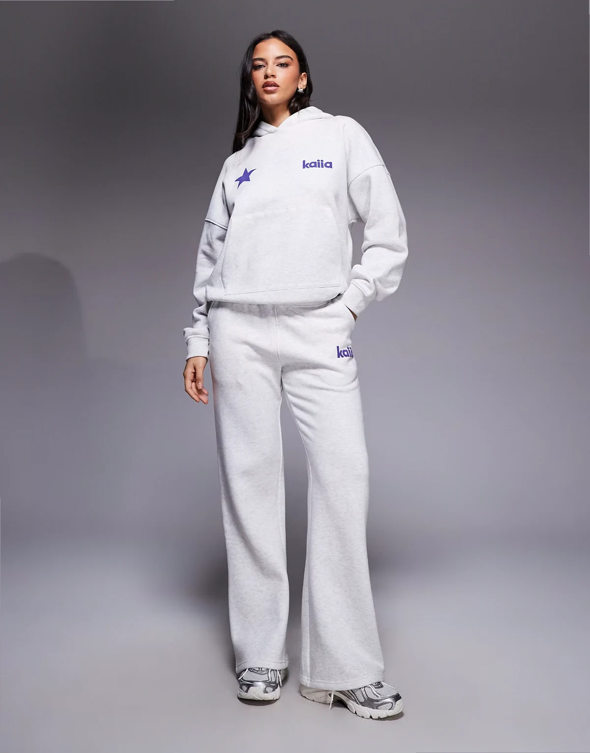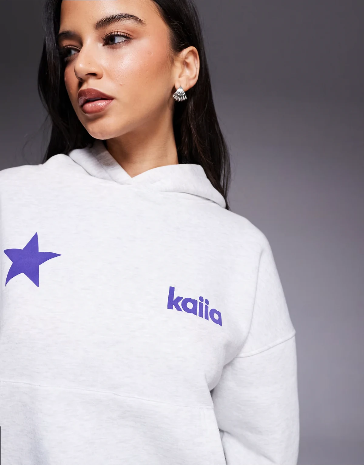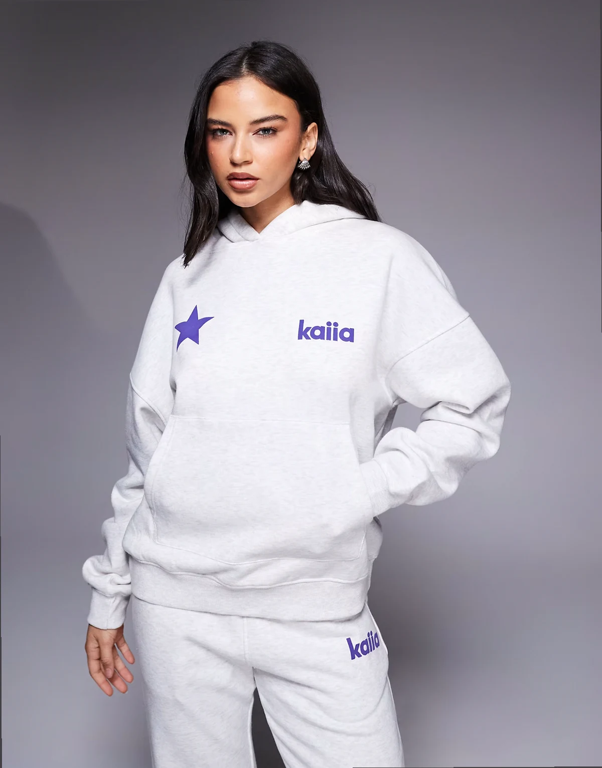 cotton rich star logo graphic oversized hoodie in light heather gray - part of a set