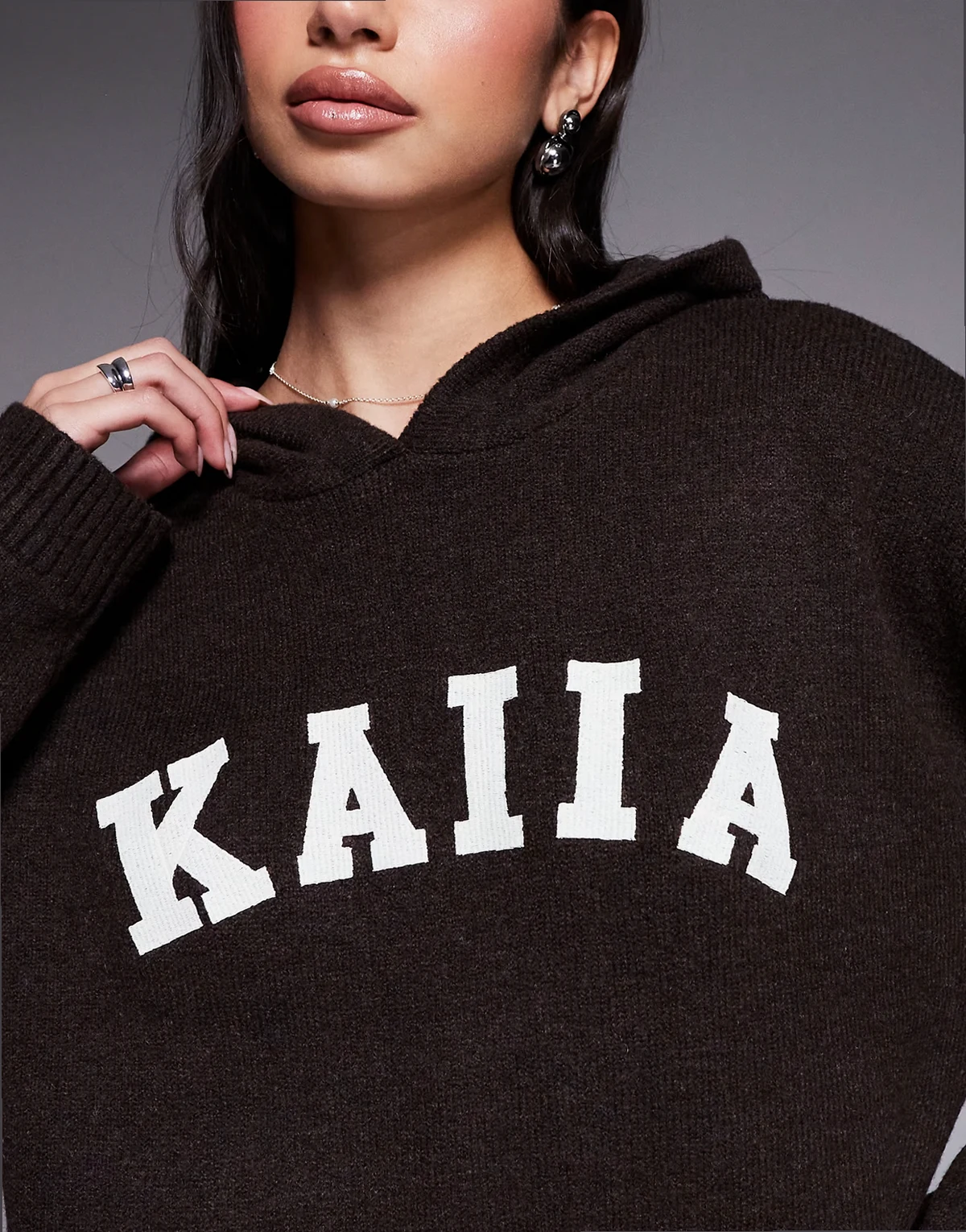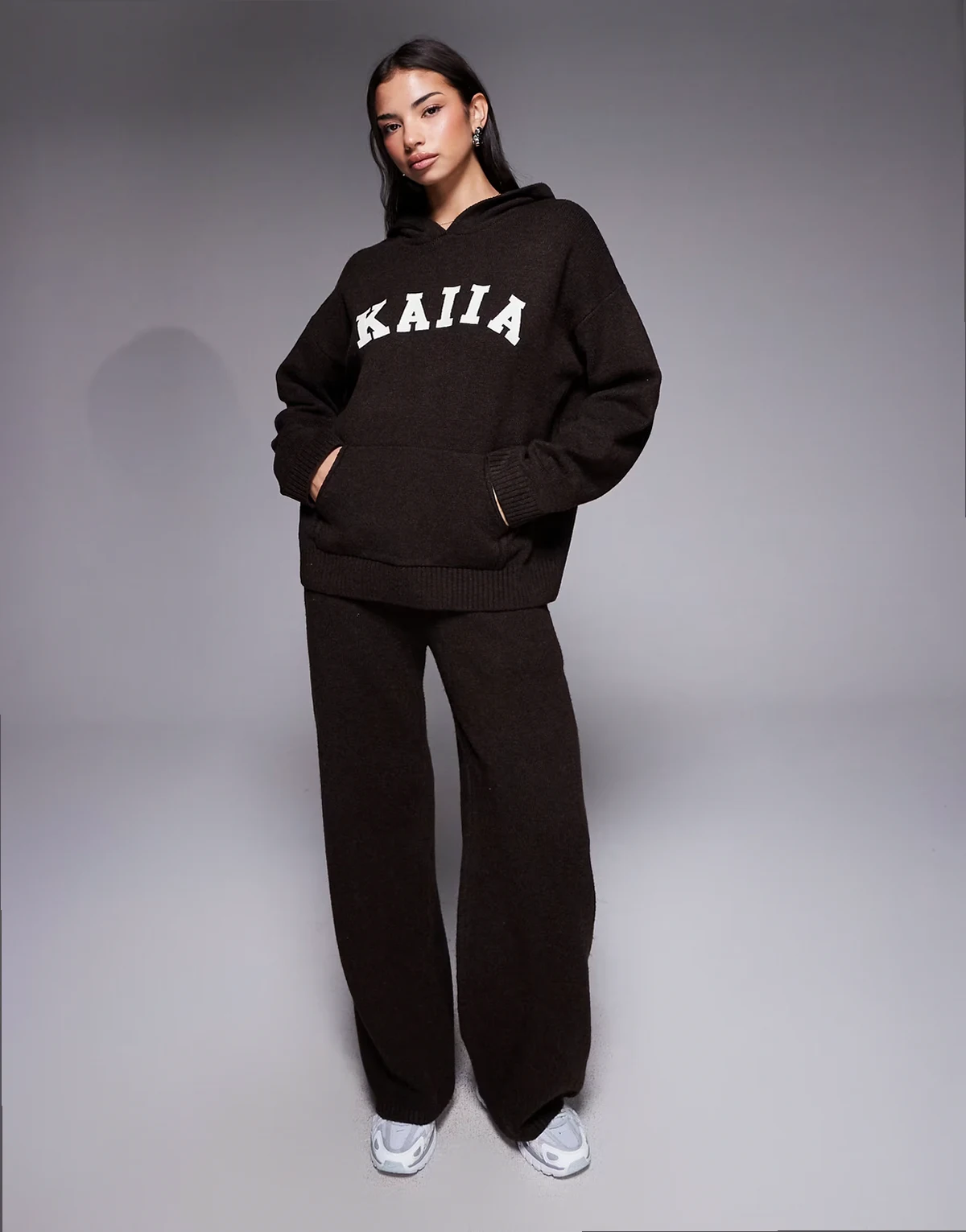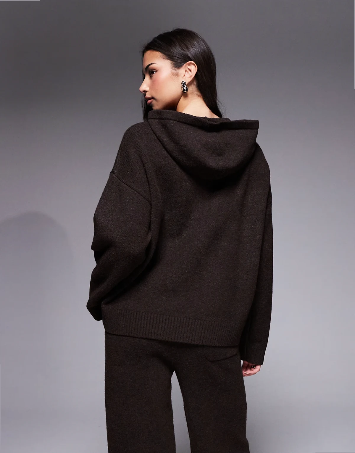 wool feel knit embroidered logo hoodie in chocolate - part of a set