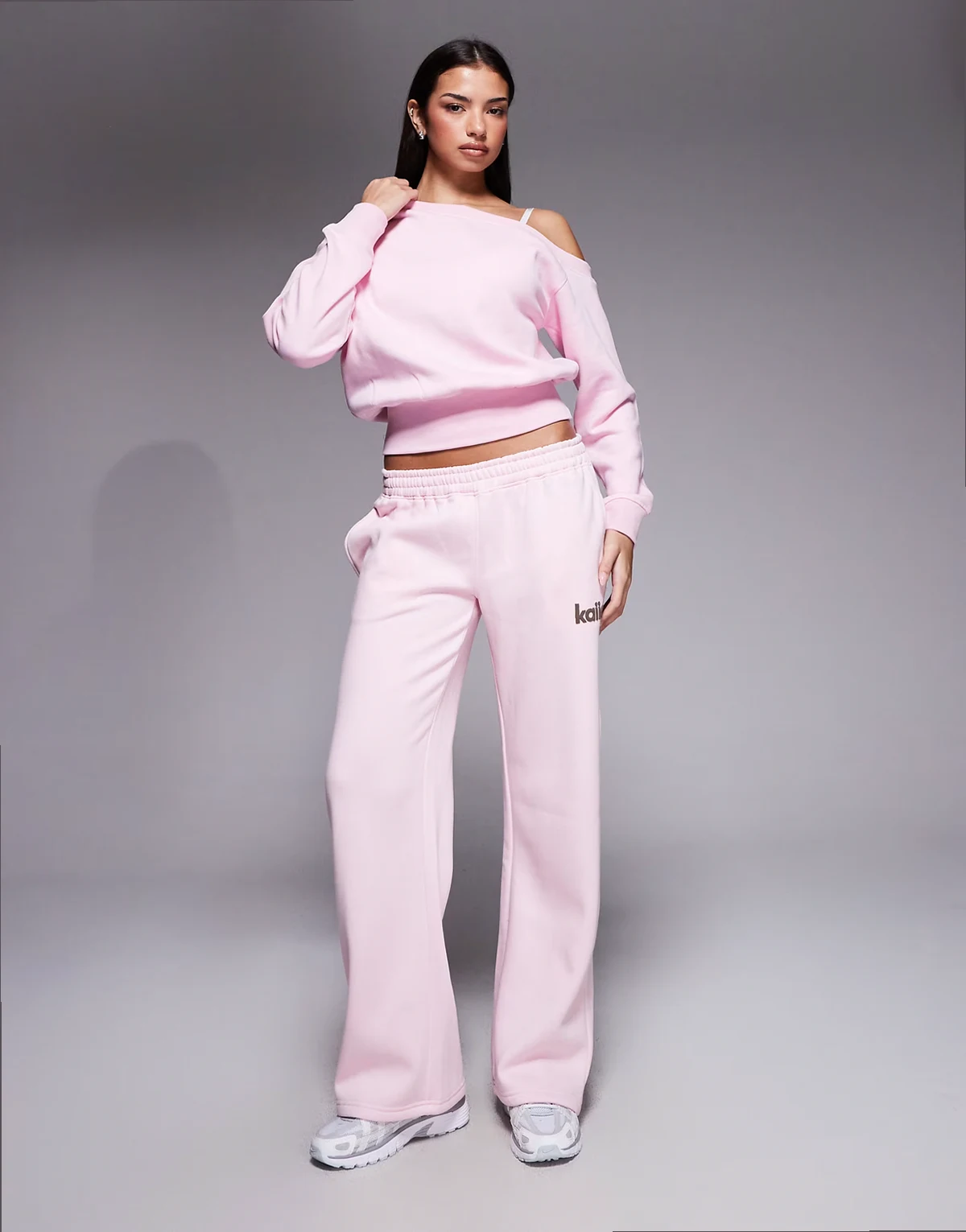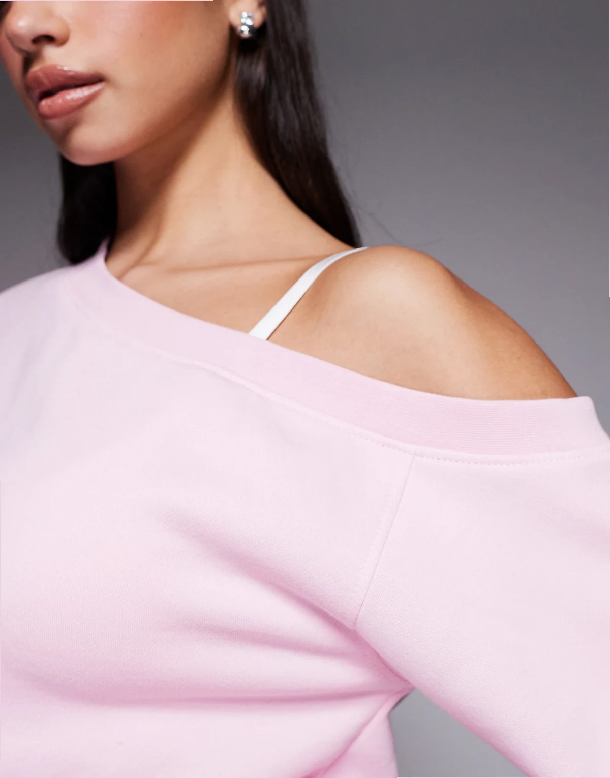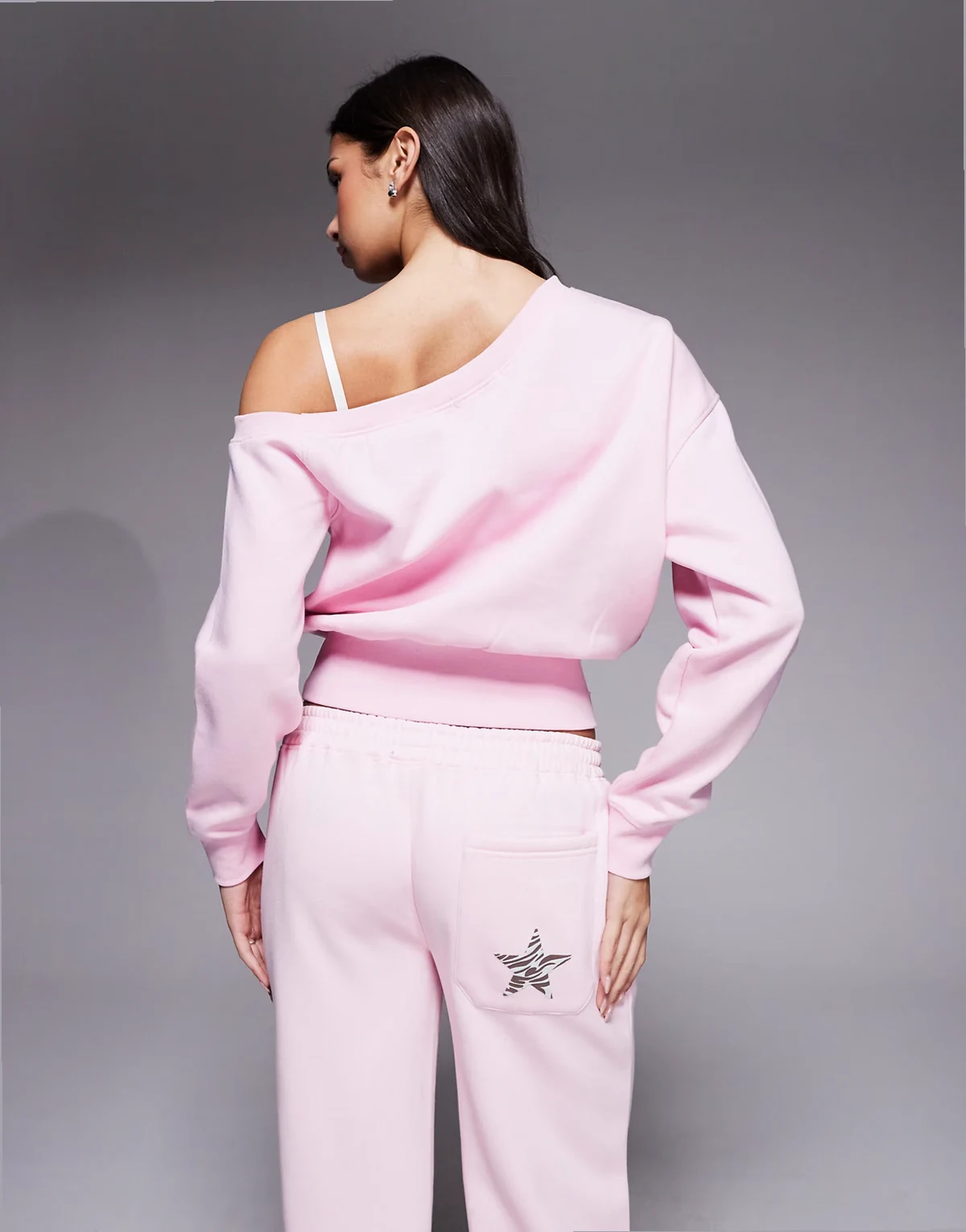 cotton rich oversized one-shoulder sweatshirt in baby pink - part of a set