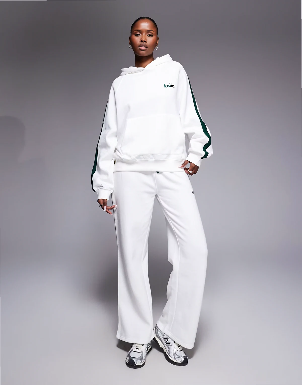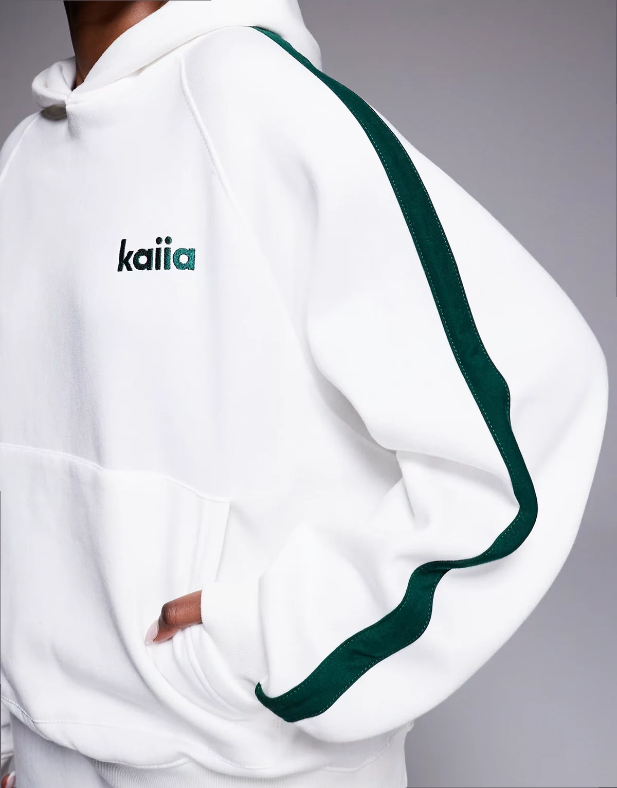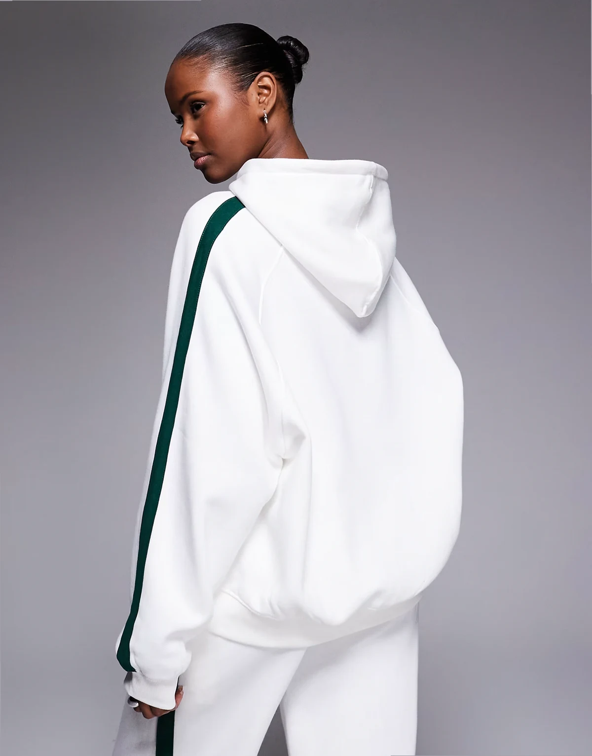 side stripe oversized hoodie in white and dark green - part of a set