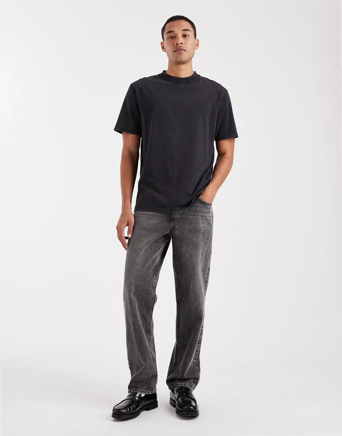 relaxed fit garment dye T-shirt in black