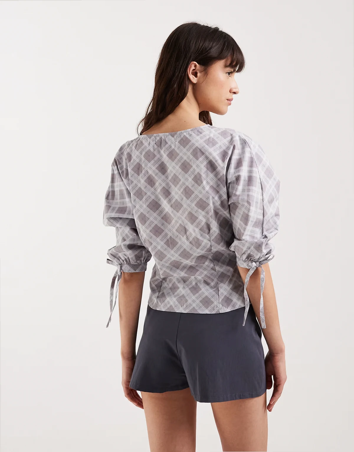 Kadeka poplin tie detailing shirt in gray plaid