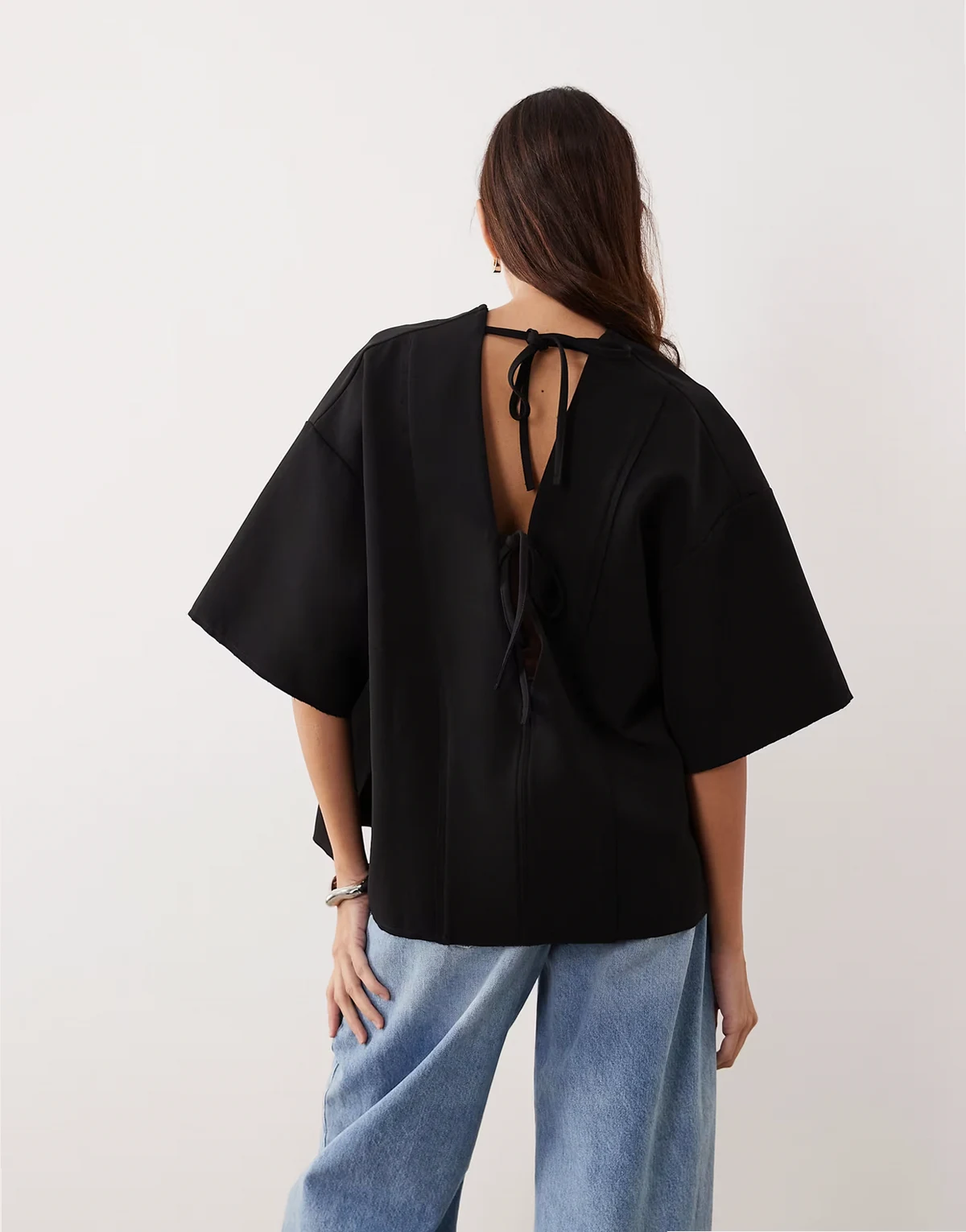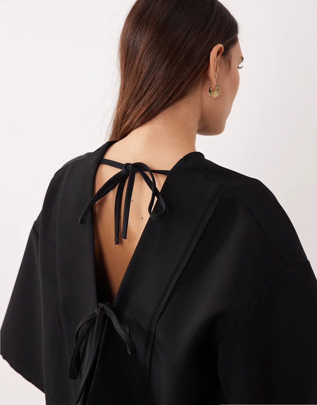 boxy seam top with tie back detail in black