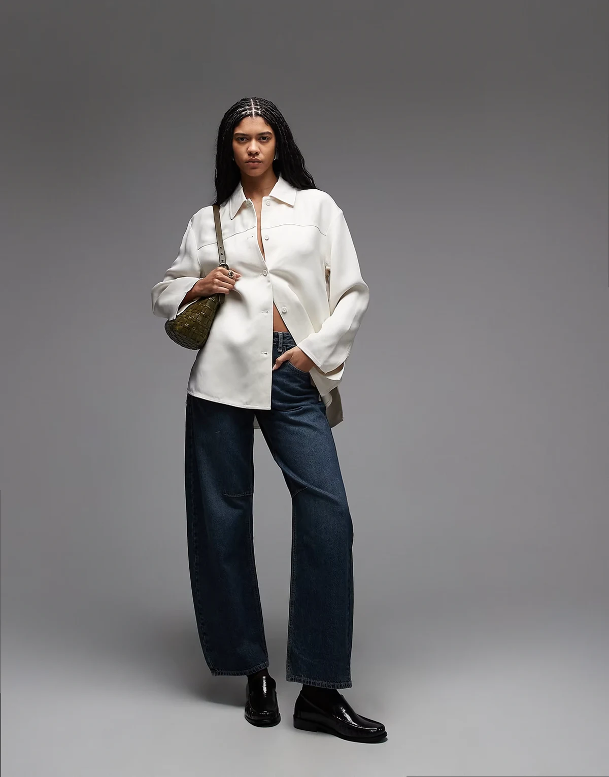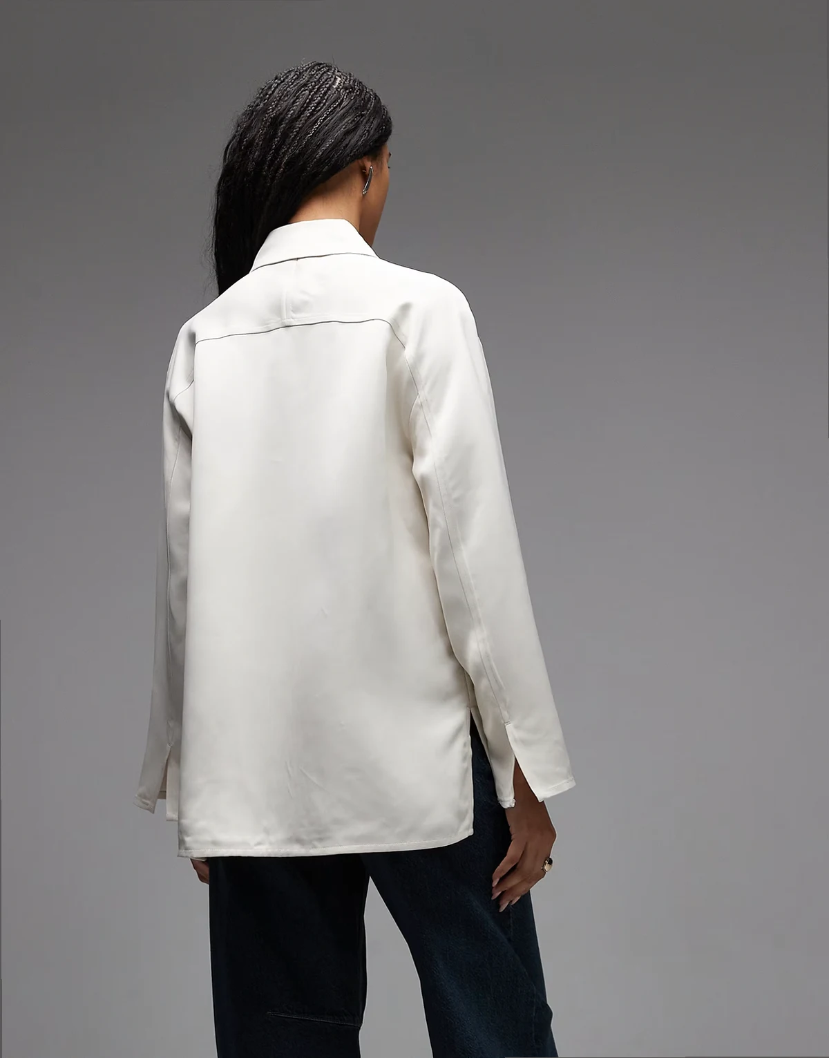 satin overshirt in off white