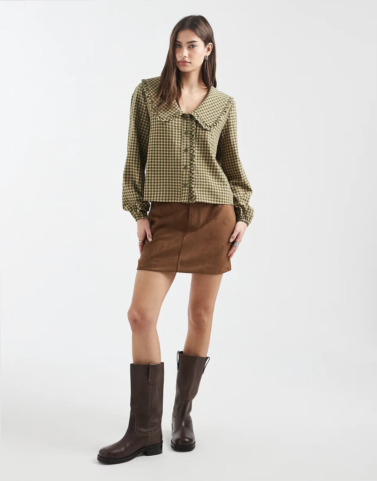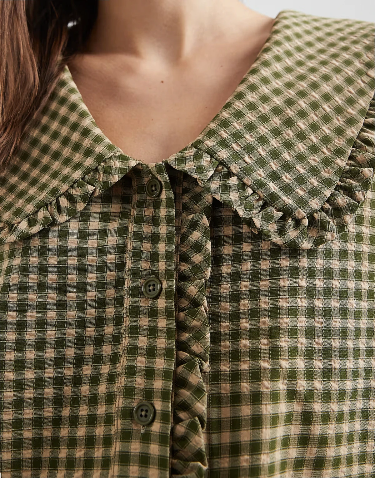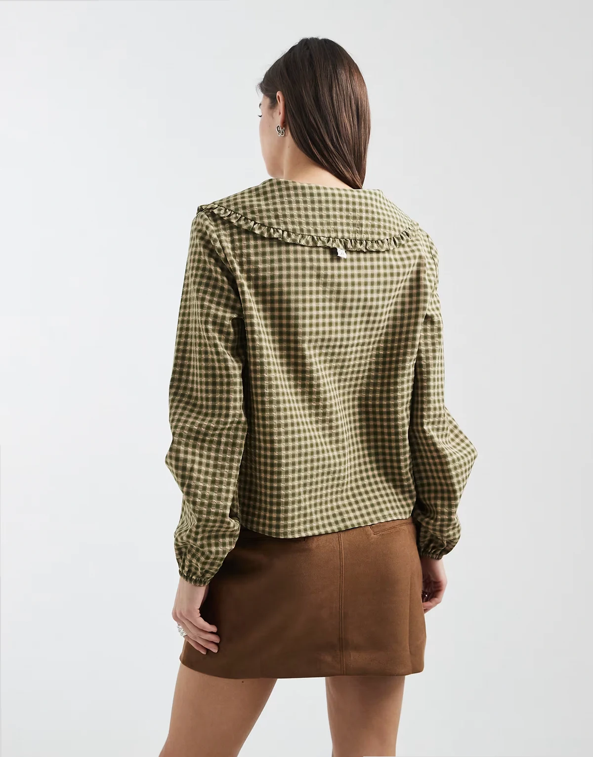 oversized collar shirt in khaki green and brown plaid